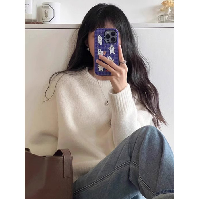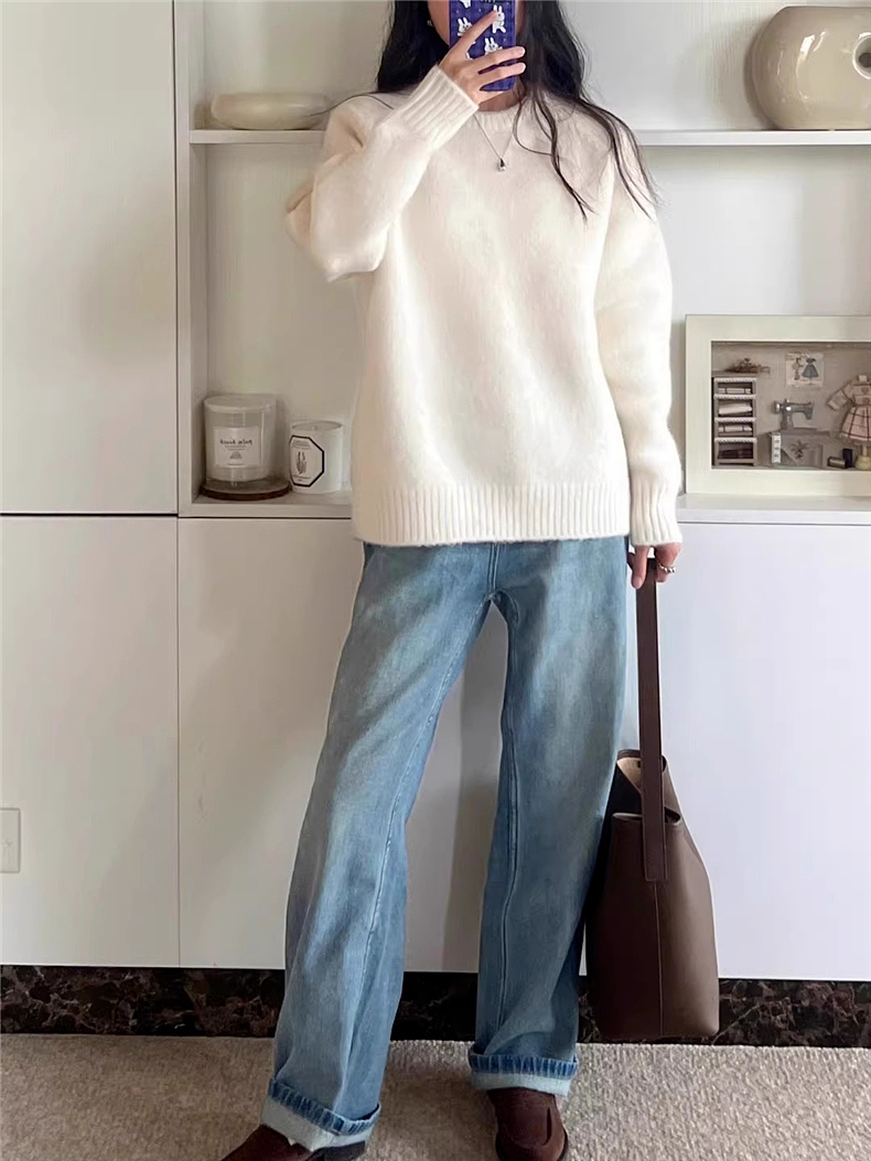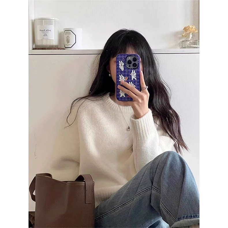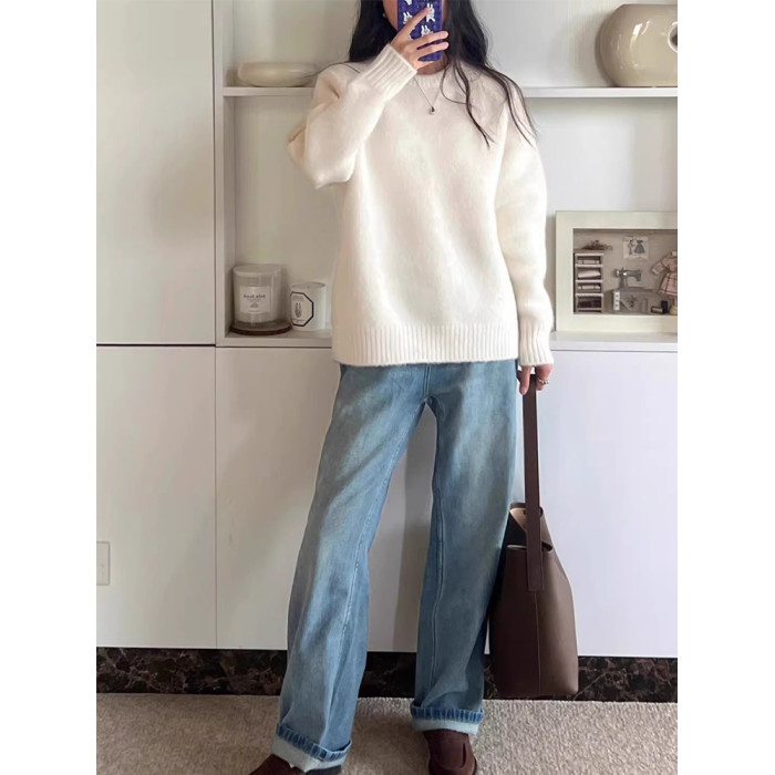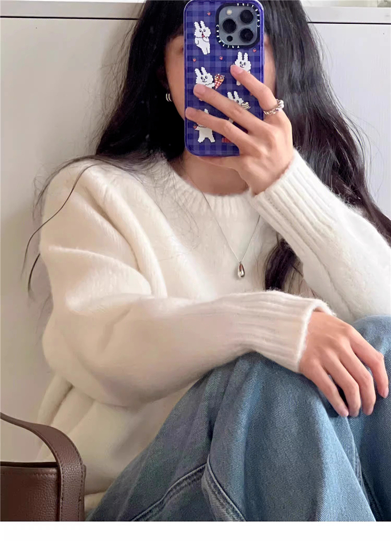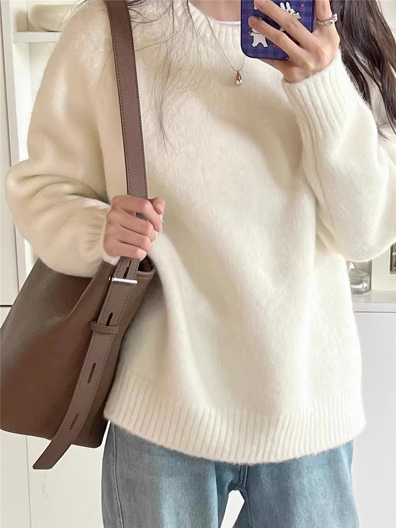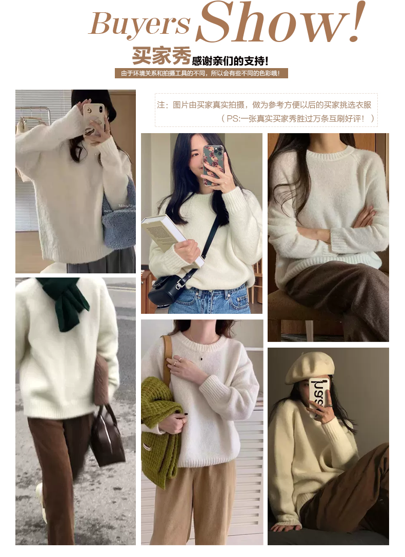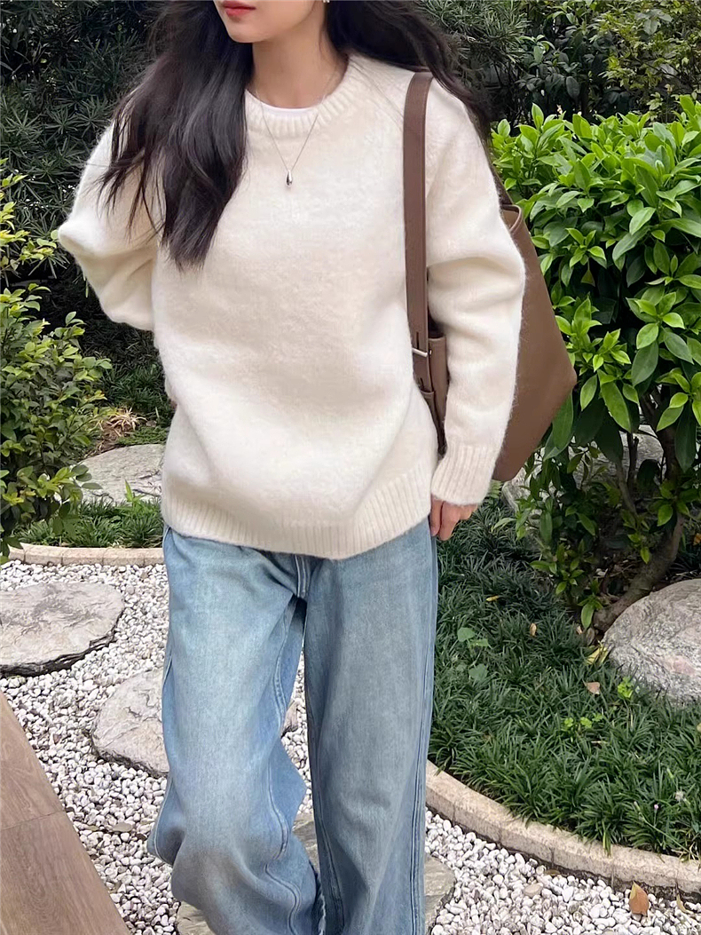 白色套頭圓領毛衣女秋冬季2025新款慵懶高級感內搭打底針織衫上衣