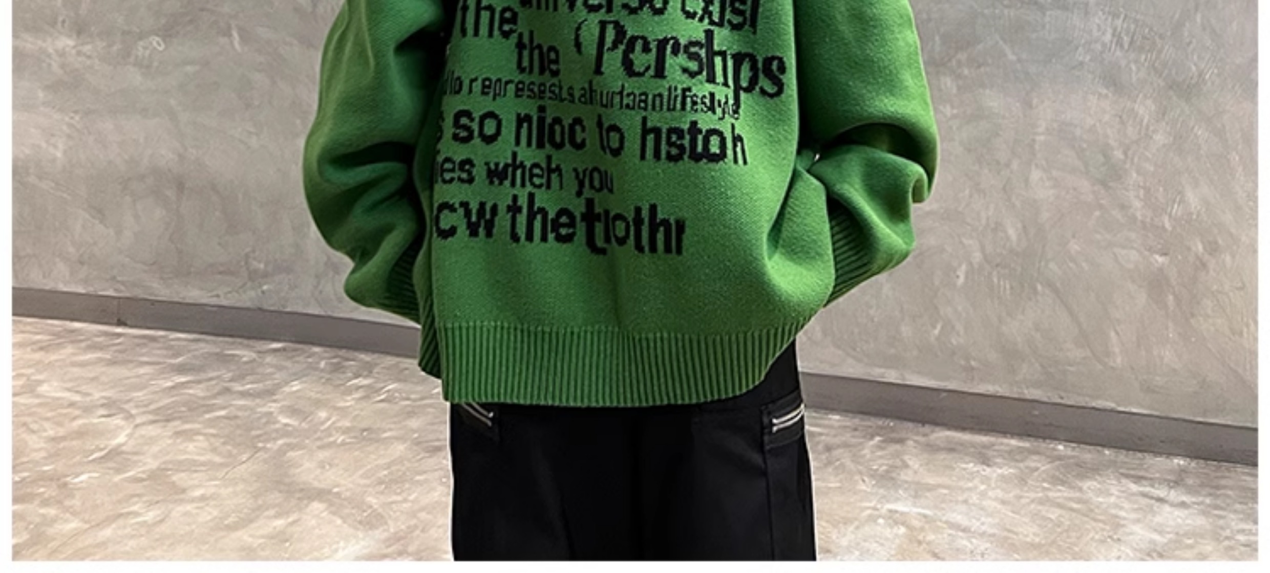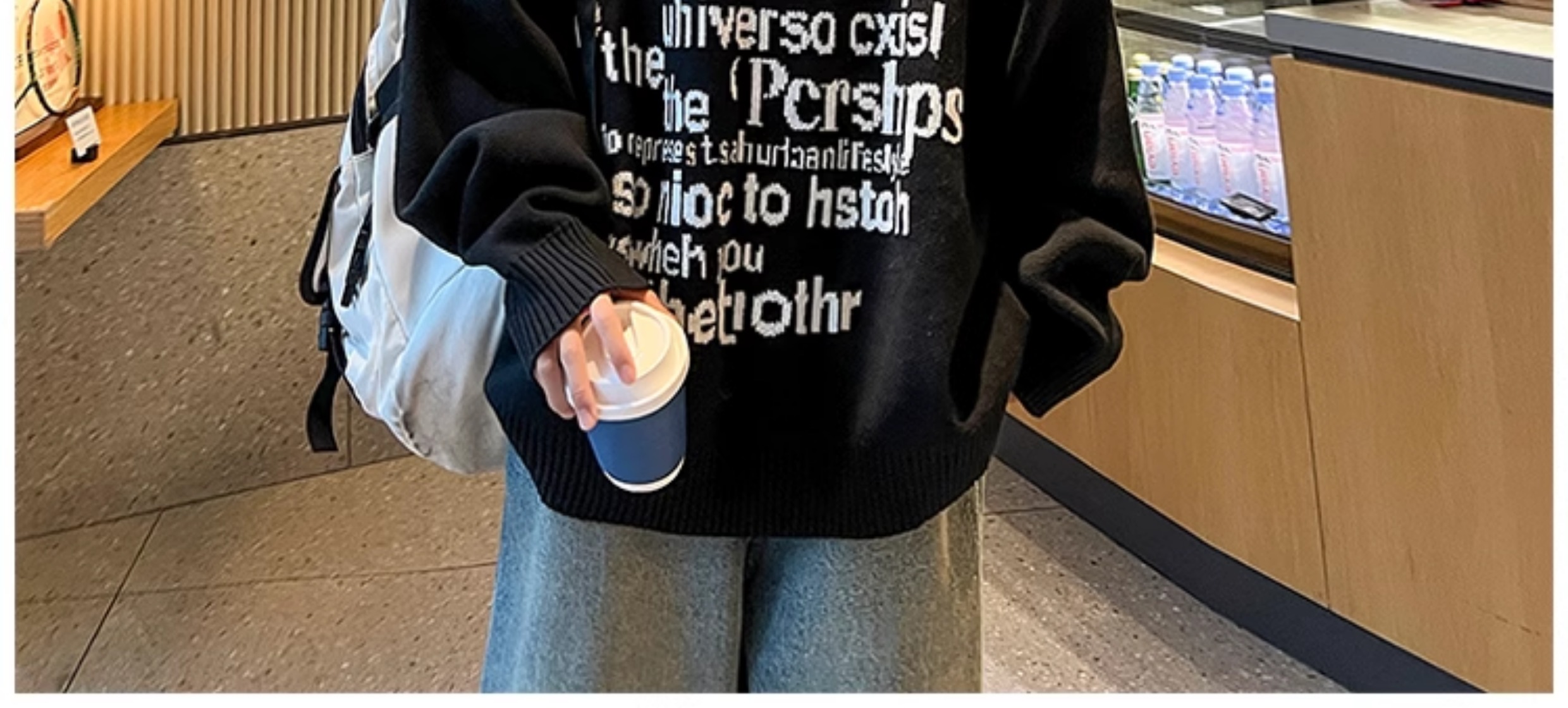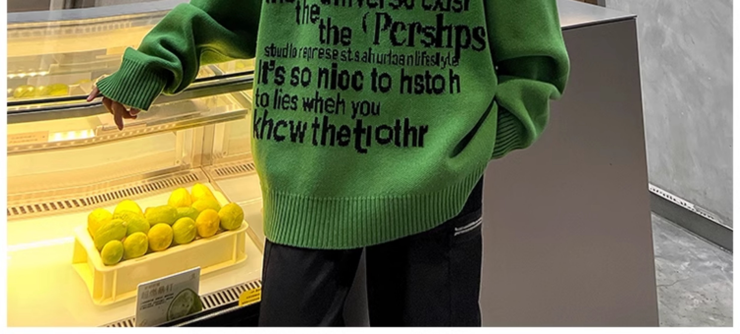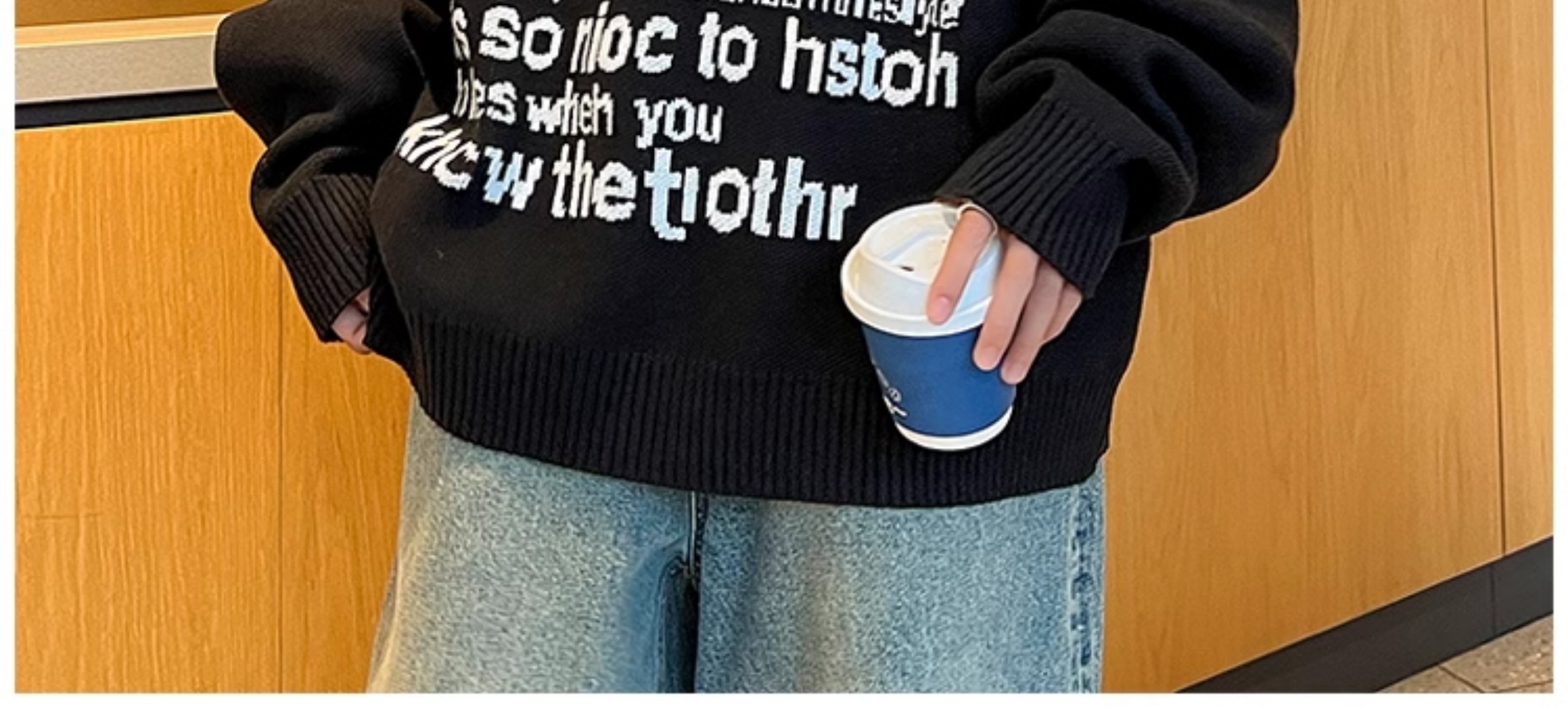 字母提花毛衣男秋冬季日系復古vintage寬松青少年保暖外穿針織衫