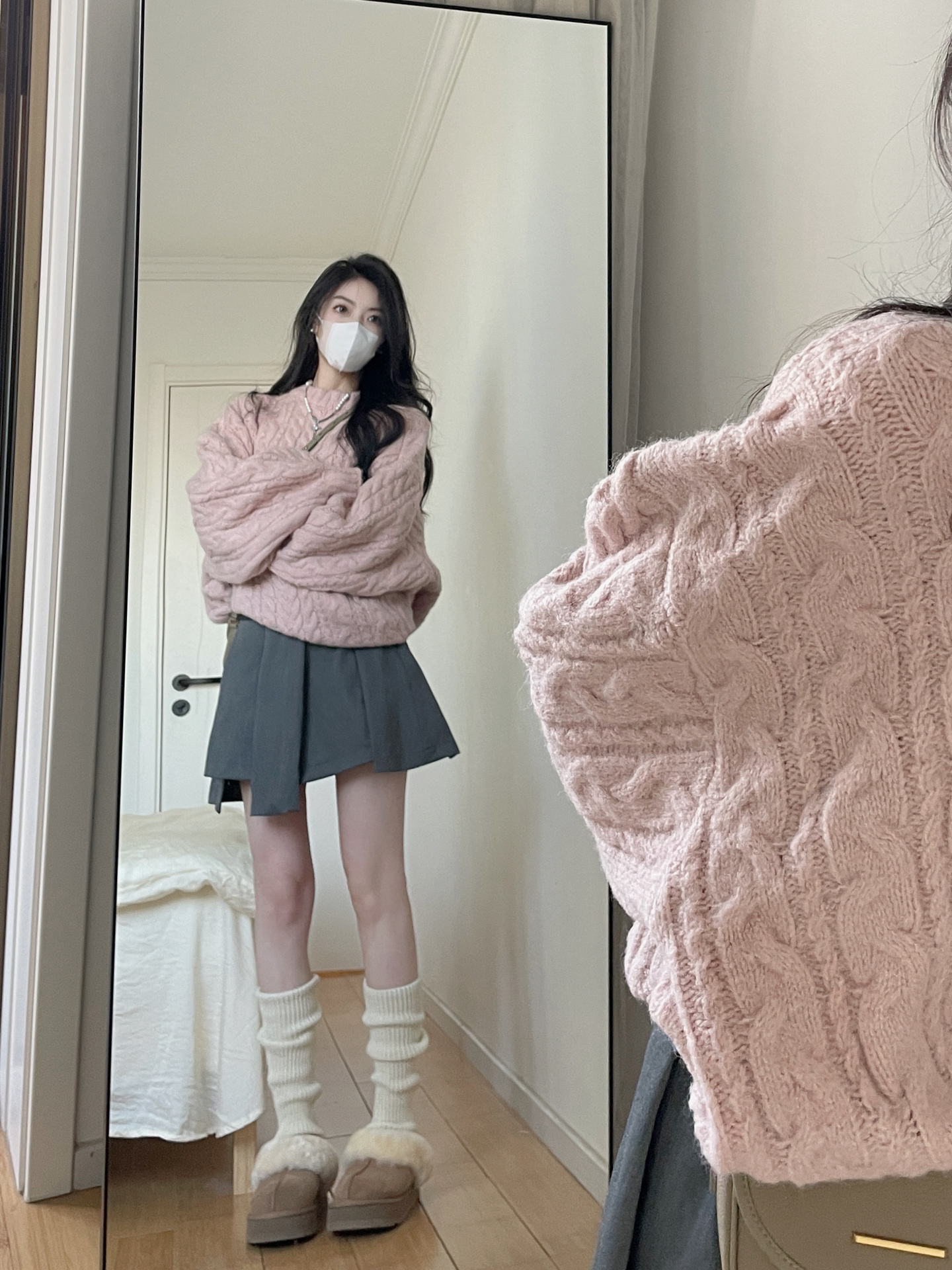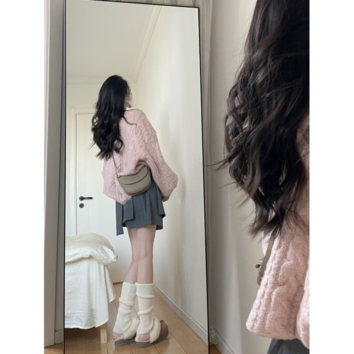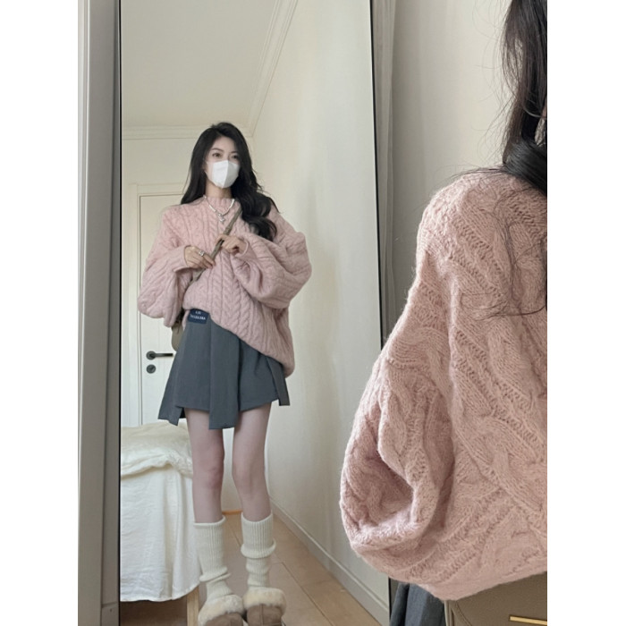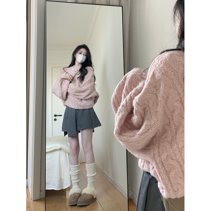 秋裝2025年新款高級感爆款粉色針織圓領小衆慵懶風法式毛衣女秋冬