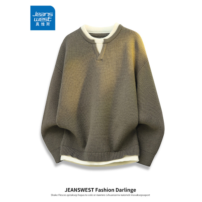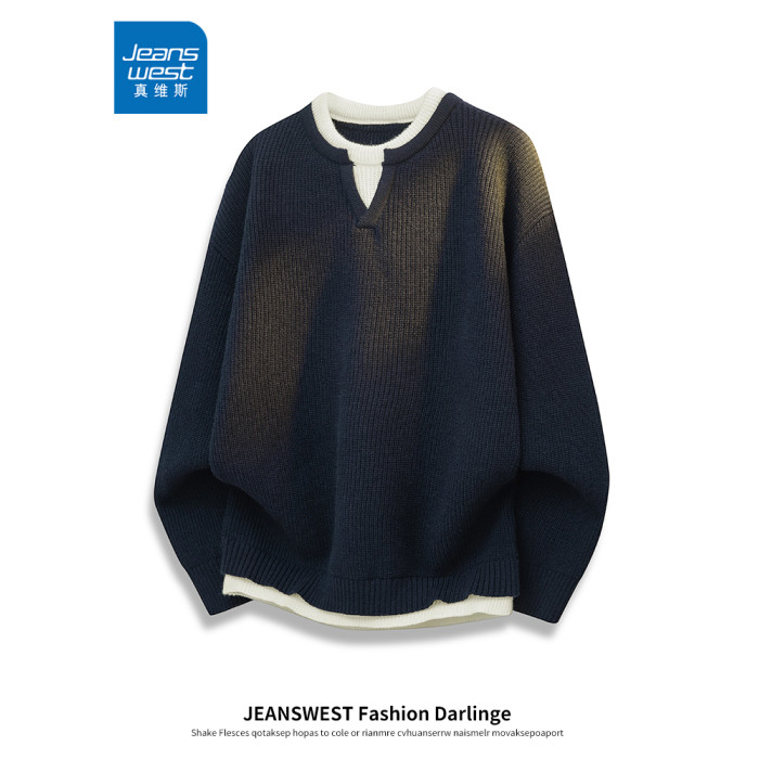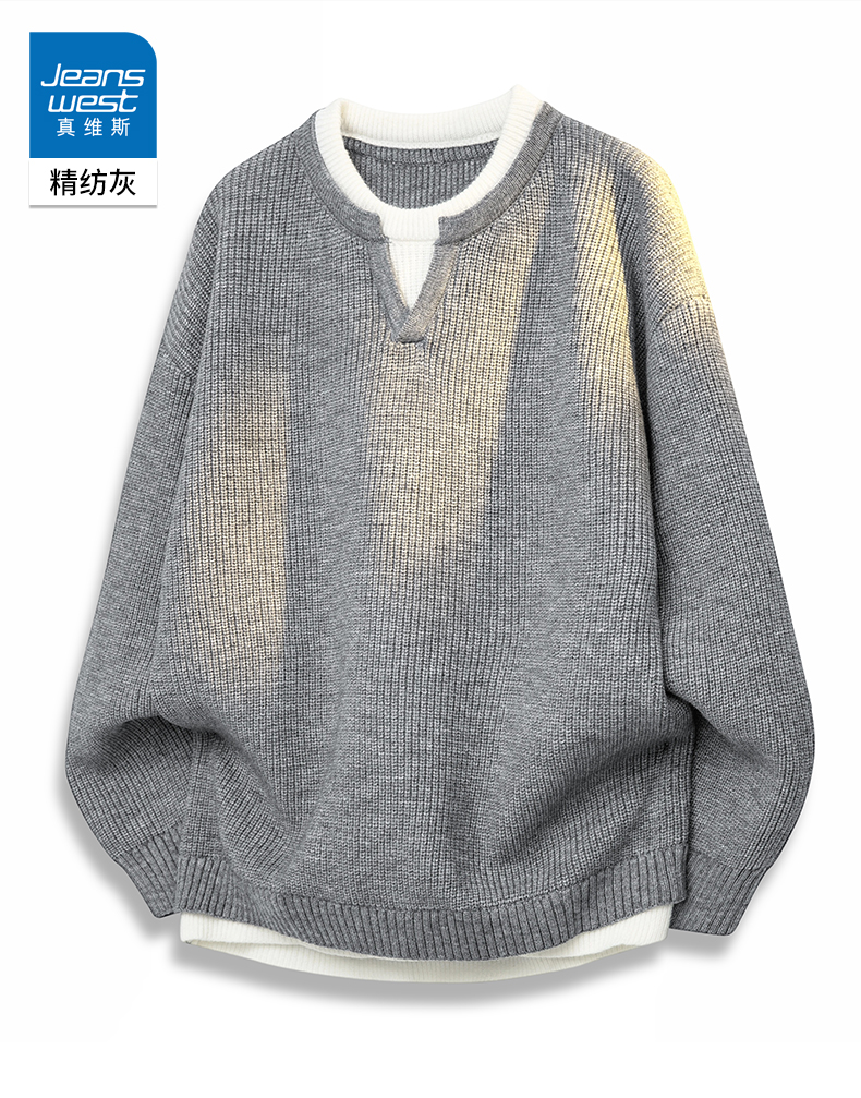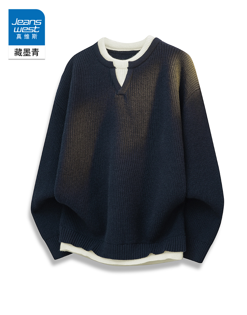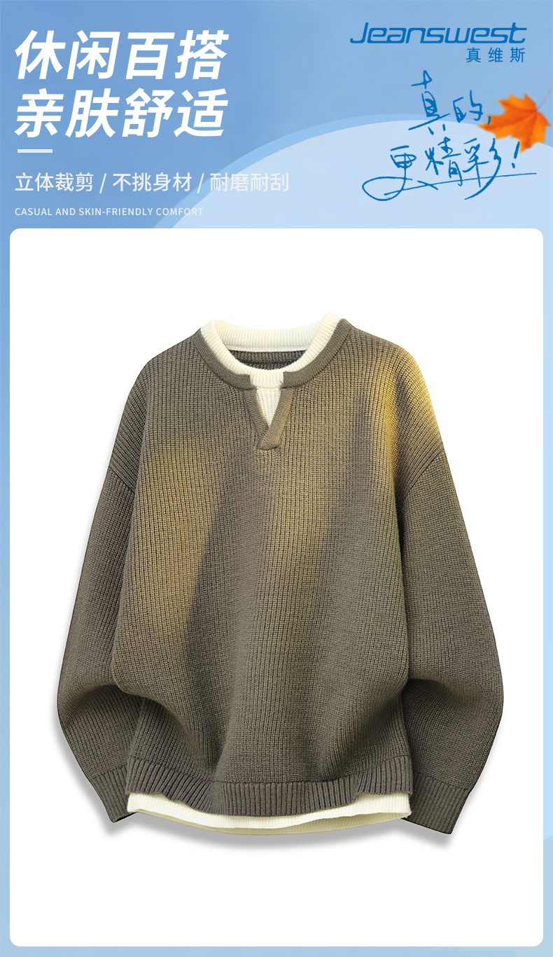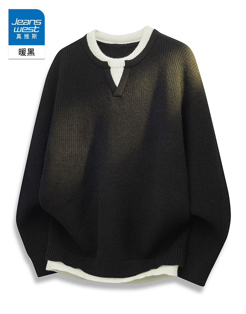 真維斯假兩件毛衣男士2025新款秋冬季保暖針織衫內搭加厚男款上衣