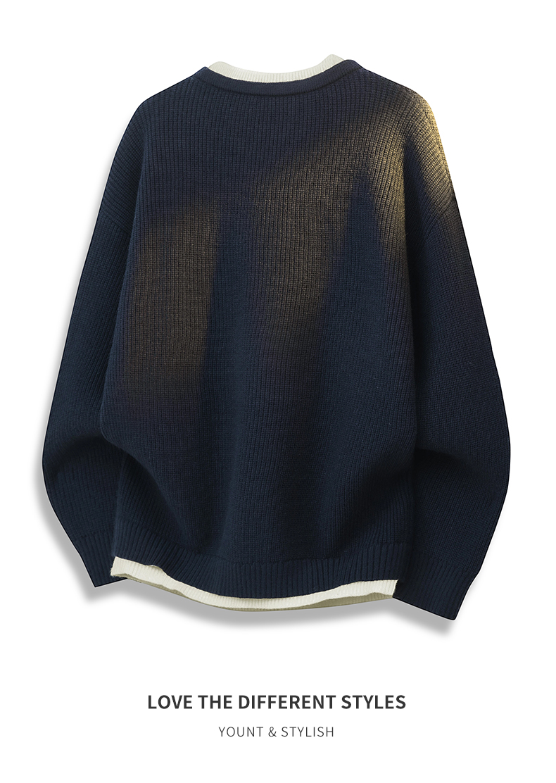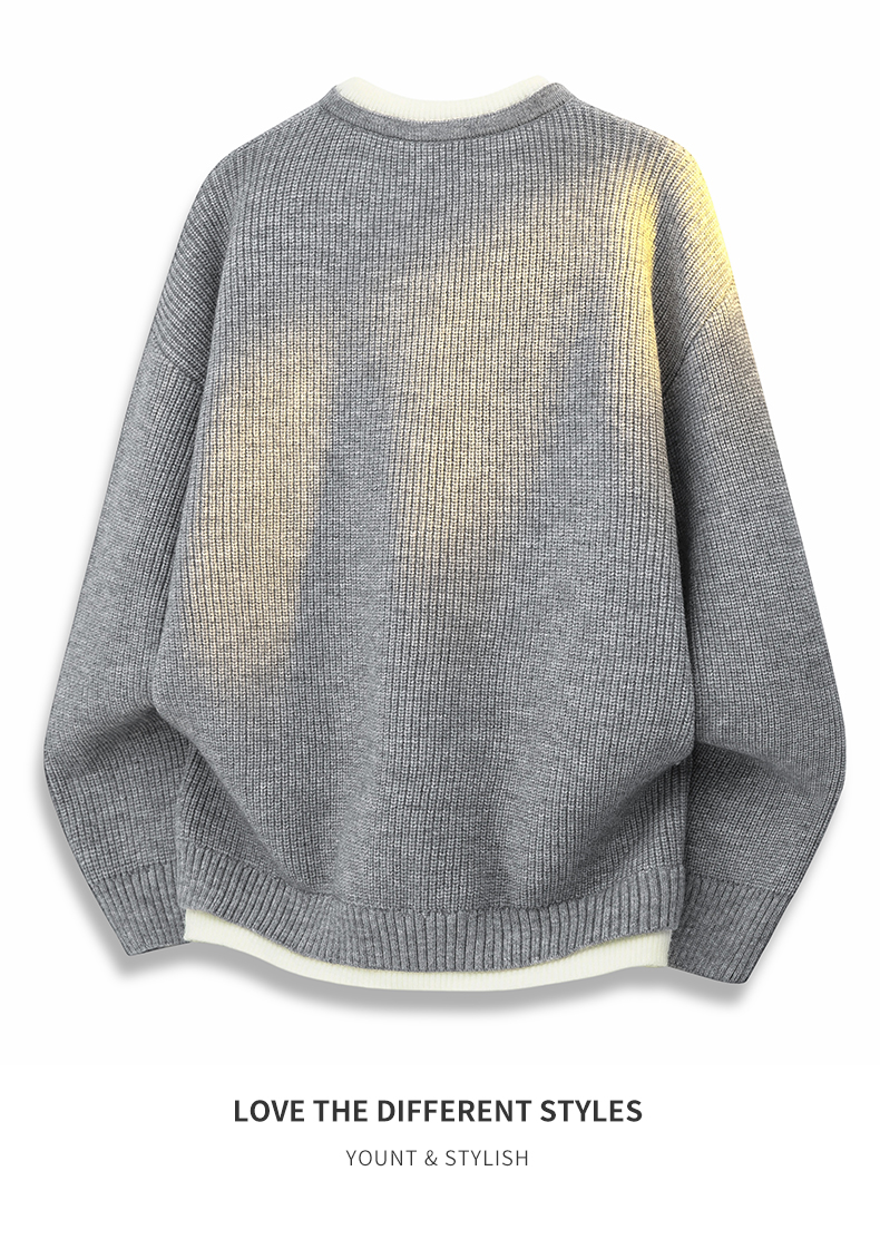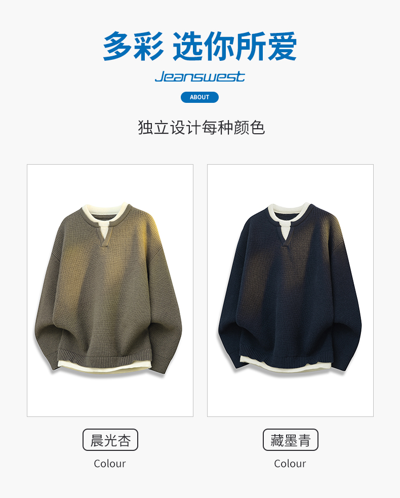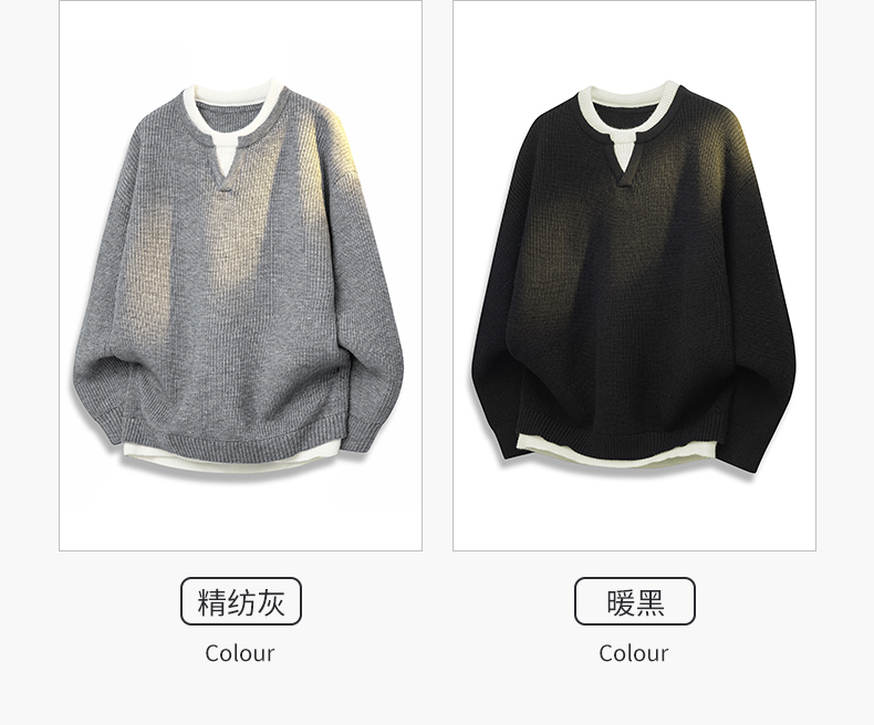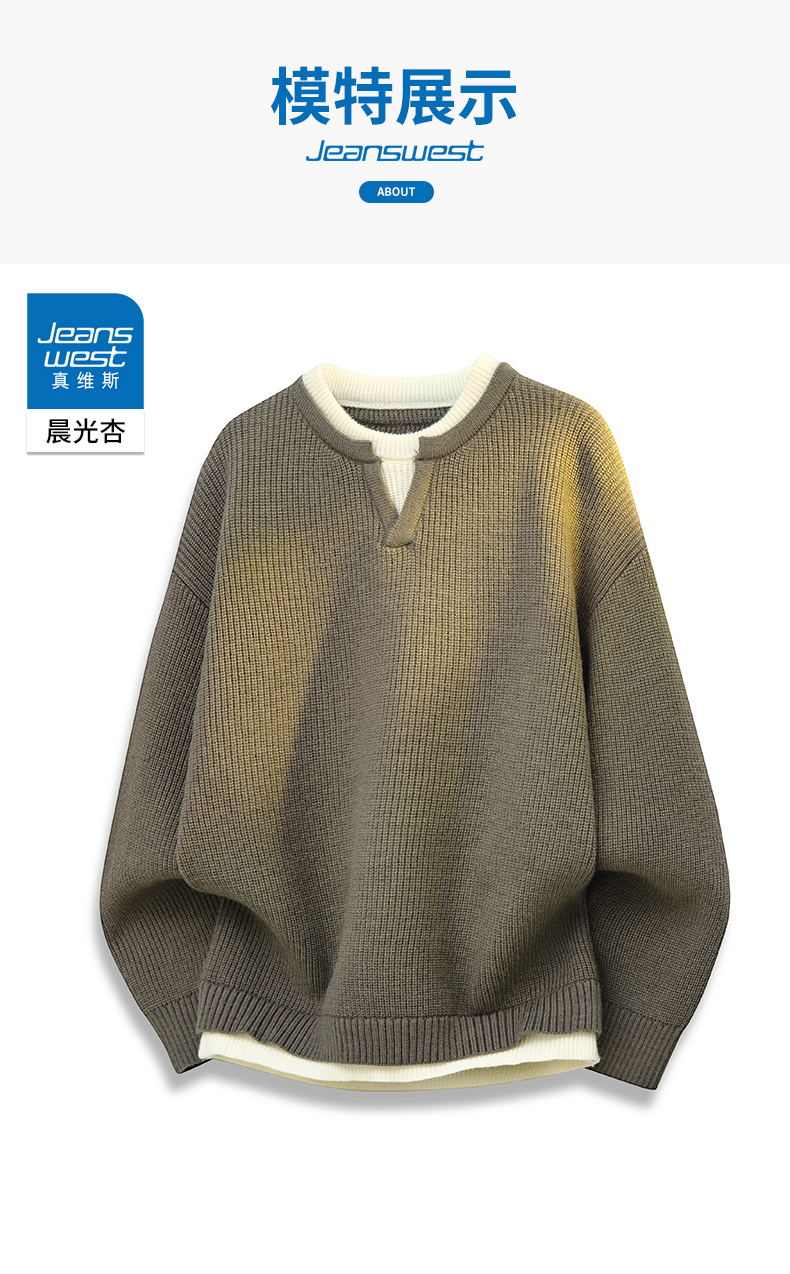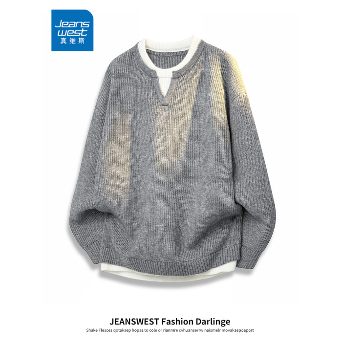 真維斯假兩件毛衣男士2025新款秋冬季保暖針織衫內搭加厚男款上衣
