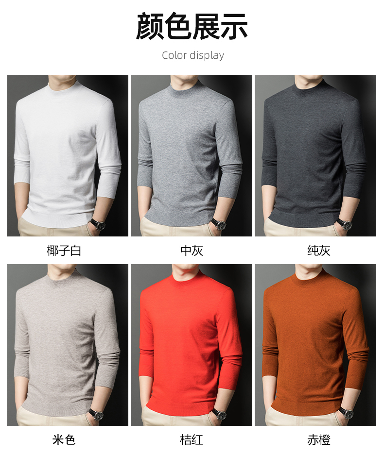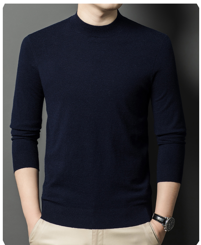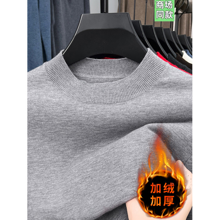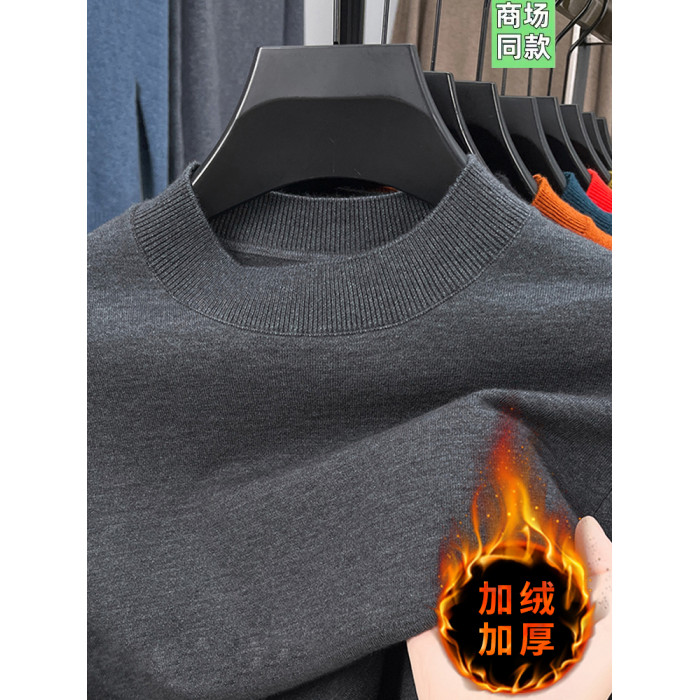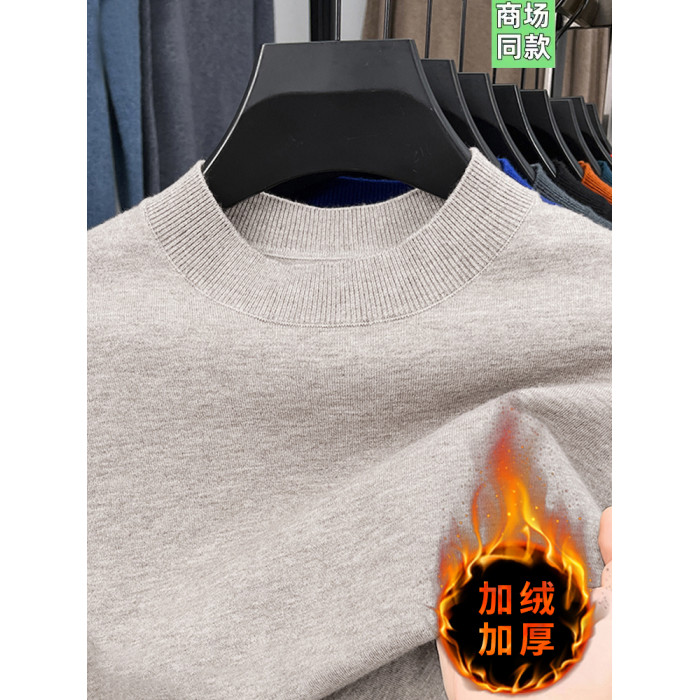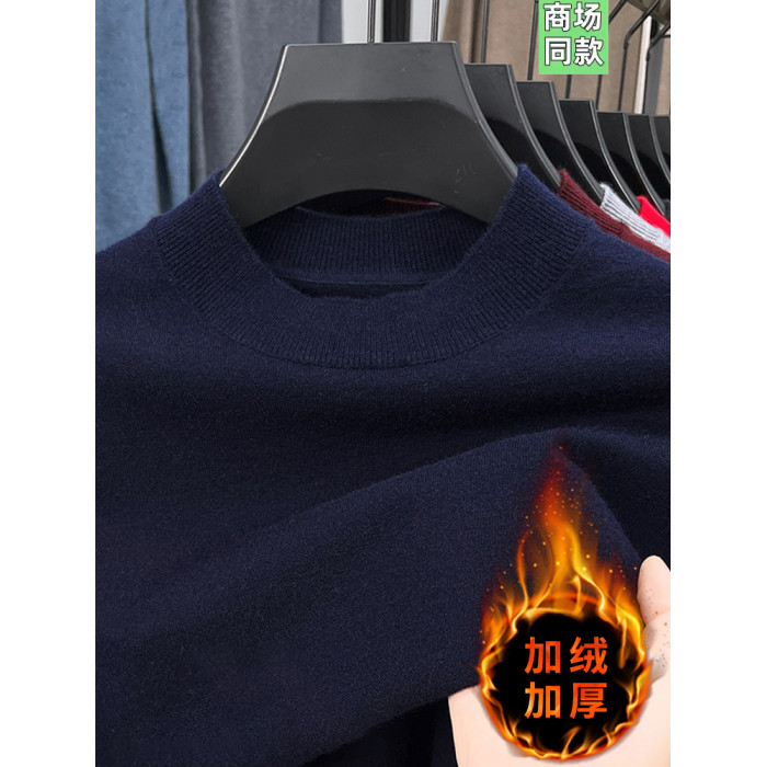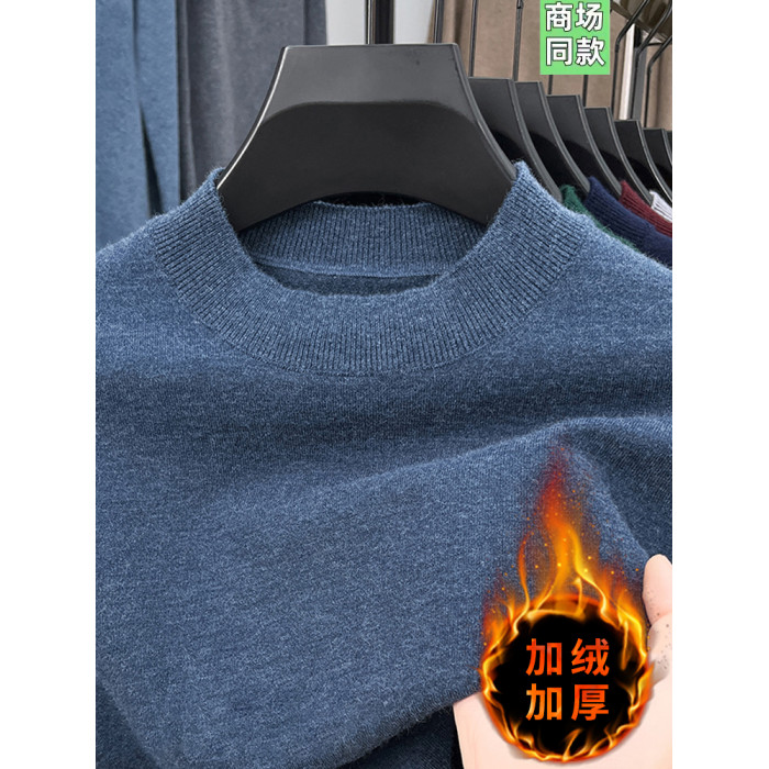 秋冬季新款套頭毛衫半高領加絨加厚針織衫中青年打底休閒保暖毛衣