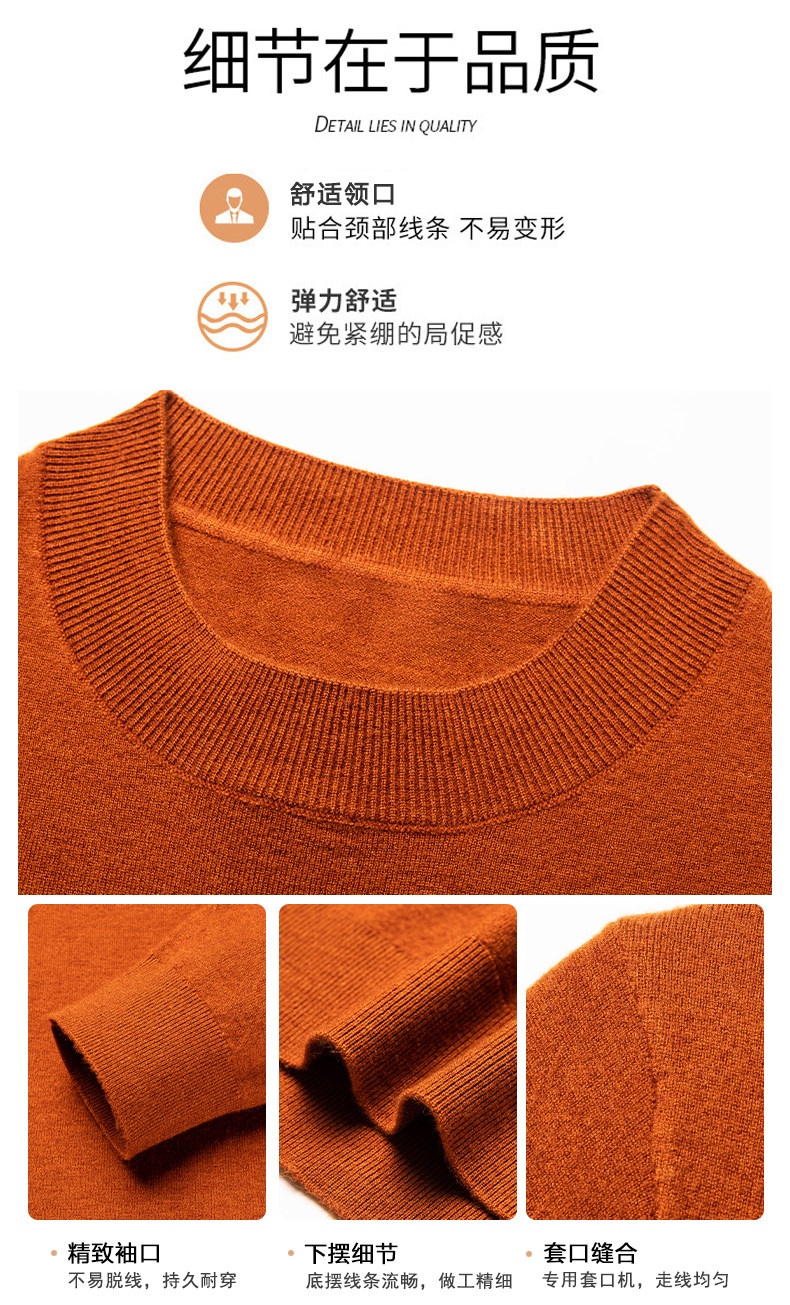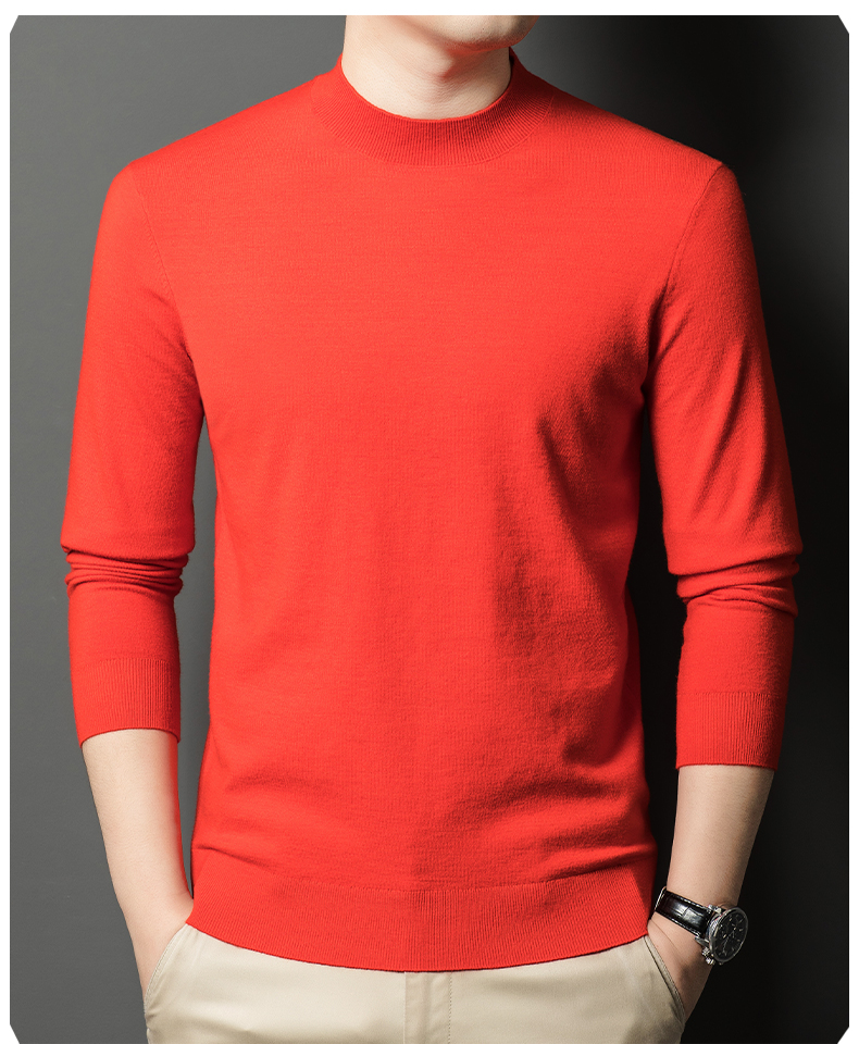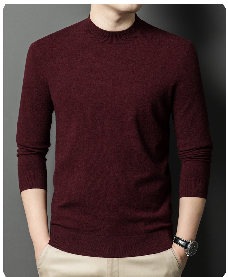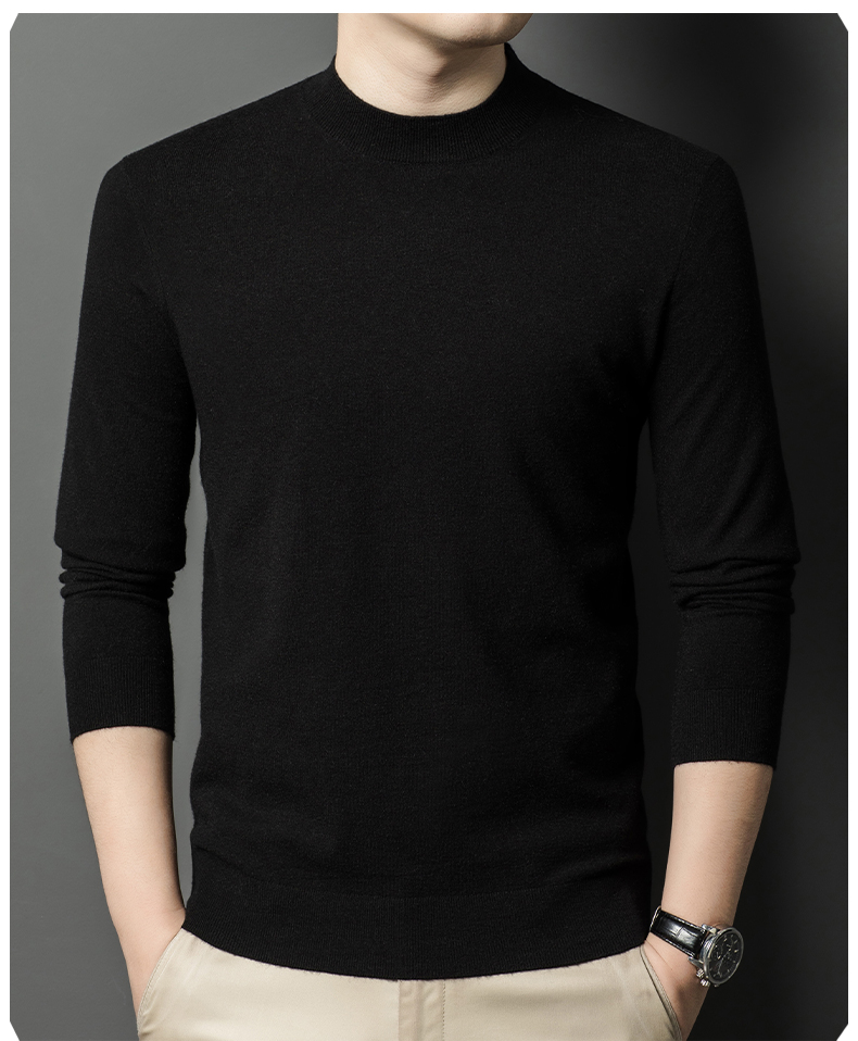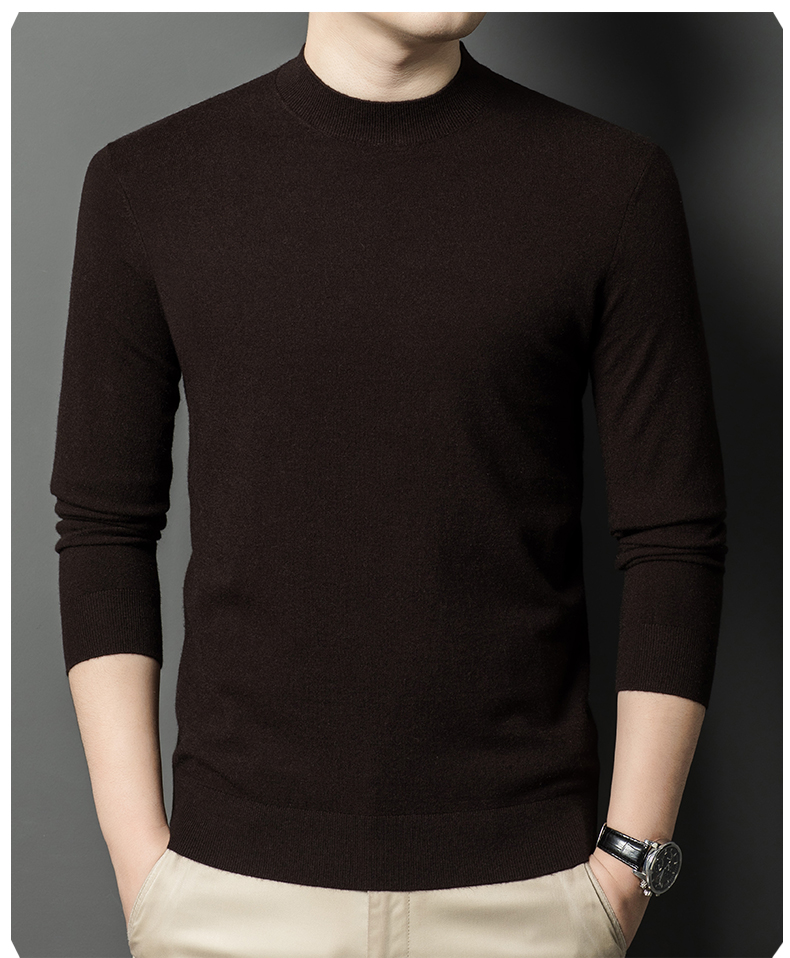 秋冬季新款套頭毛衫半高領加絨加厚針織衫中青年打底休閒保暖毛衣