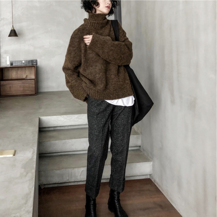 貉子毛高領外穿毛衣女慵懶寬松氣質冬季百搭羊毛加厚套頭針織上衣