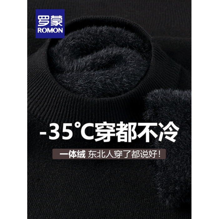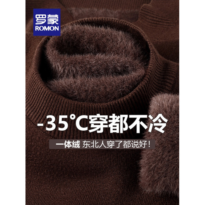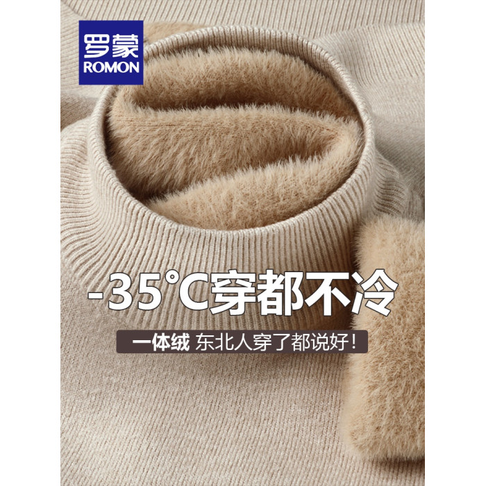 一體絨羅矇加絨加厚毛衣男士2025新款冬季半高領針織保暖打底衫潮