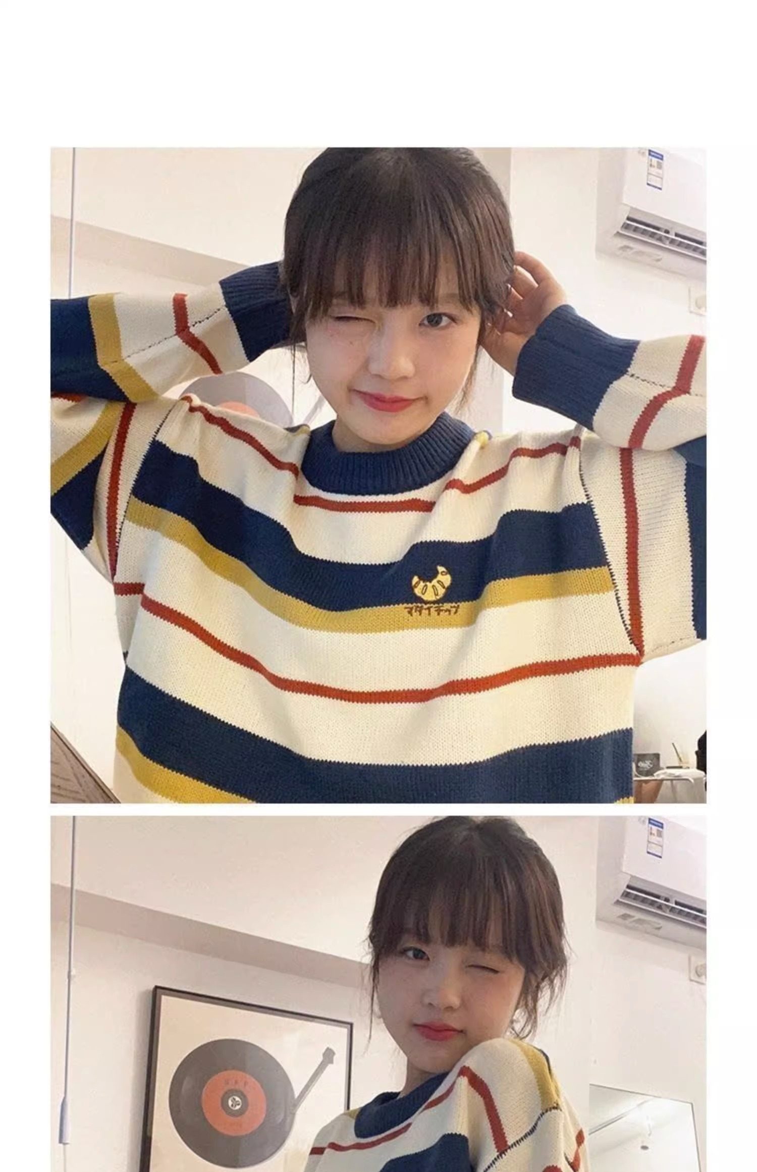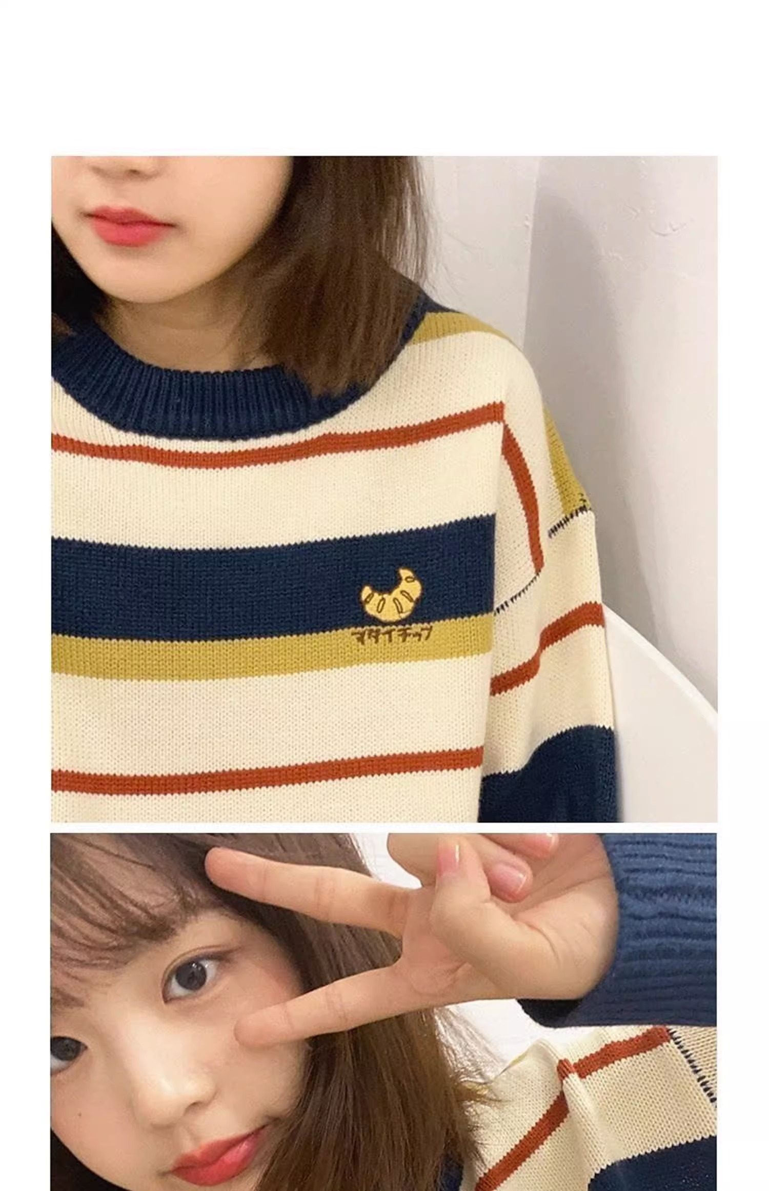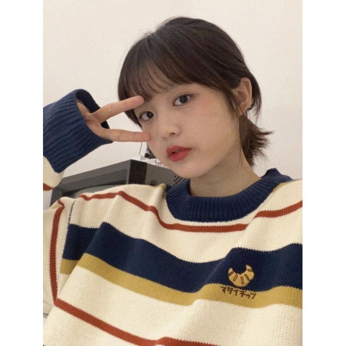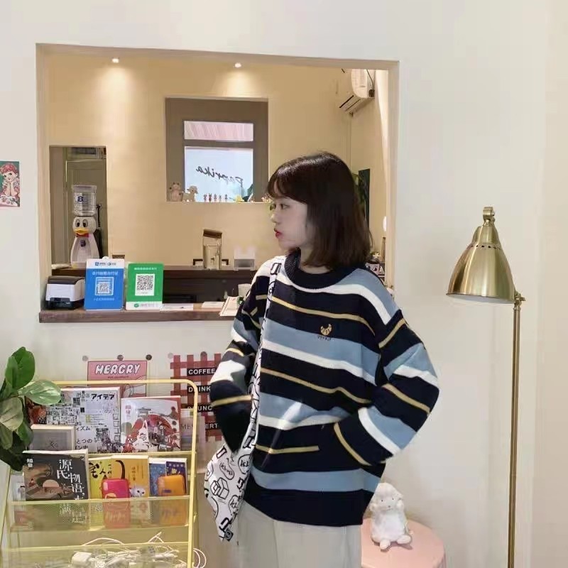 毛衣少女外穿秋冬裝2025新款初中高中學生寬松打底條紋可愛針織衫