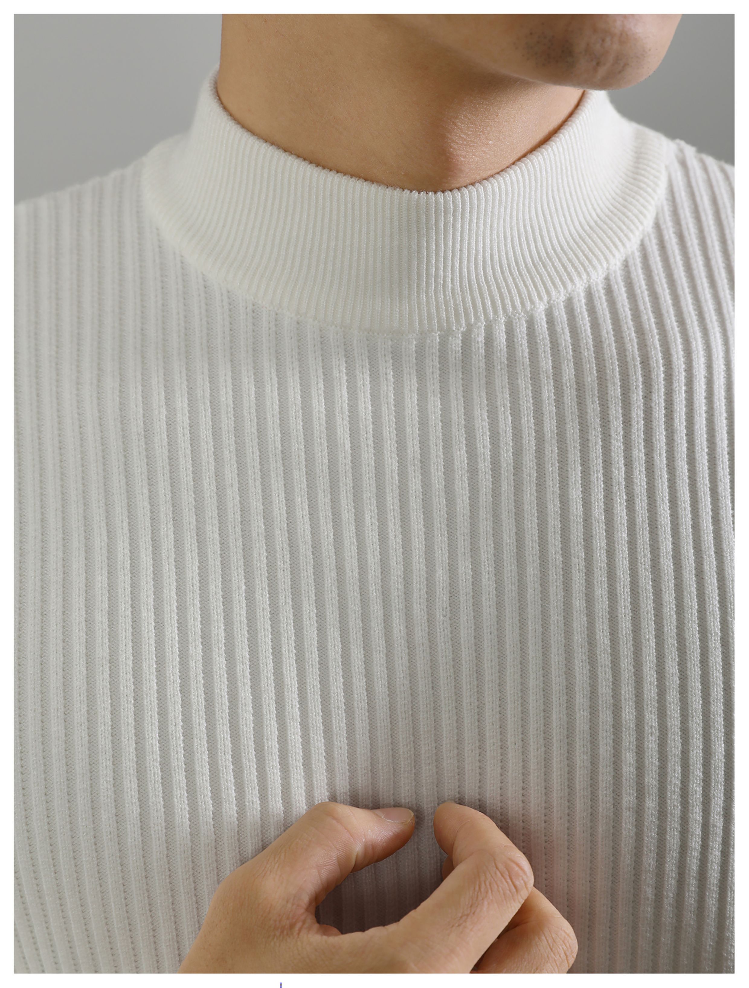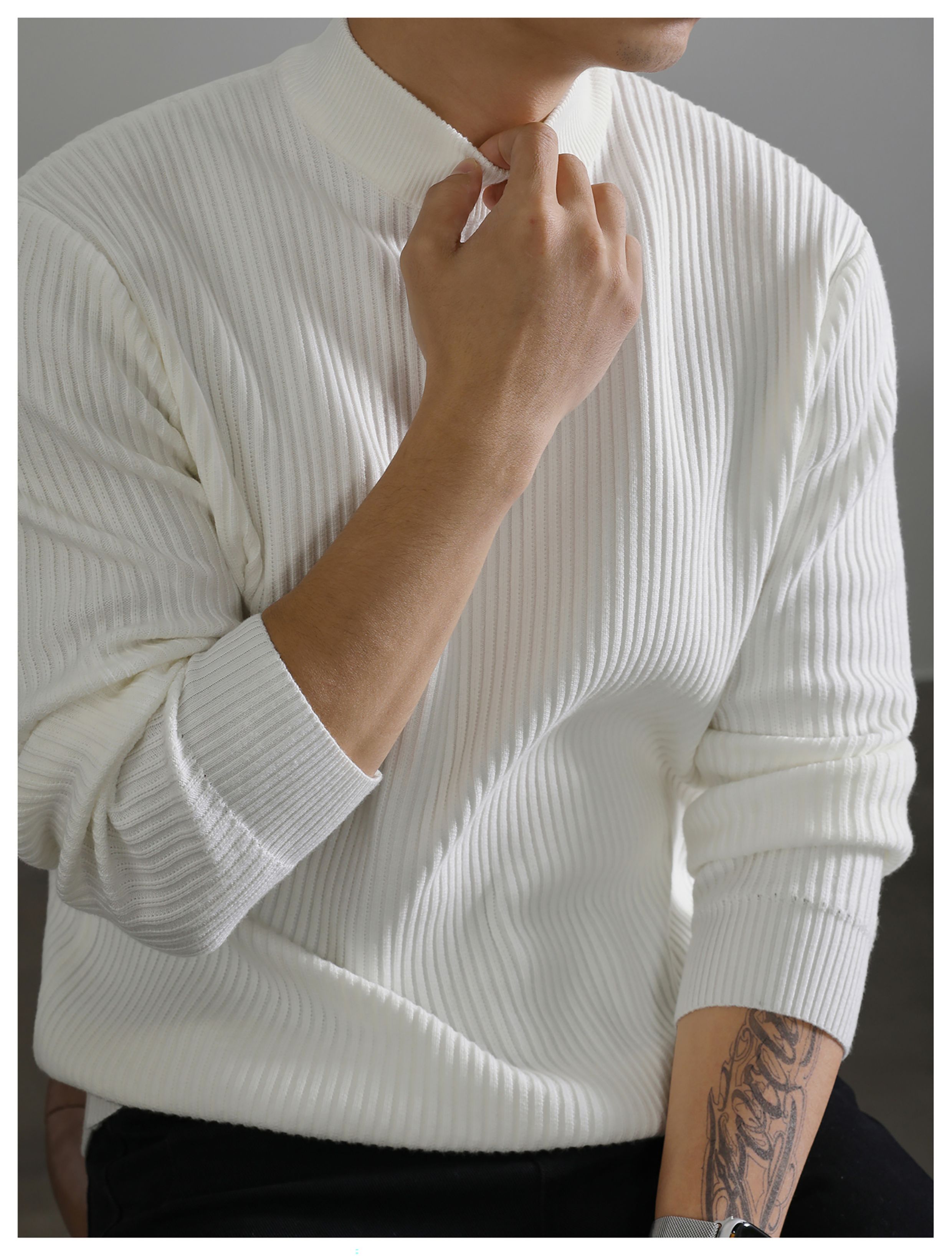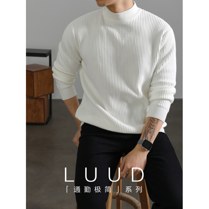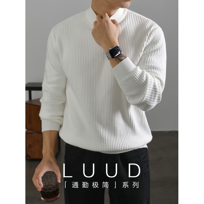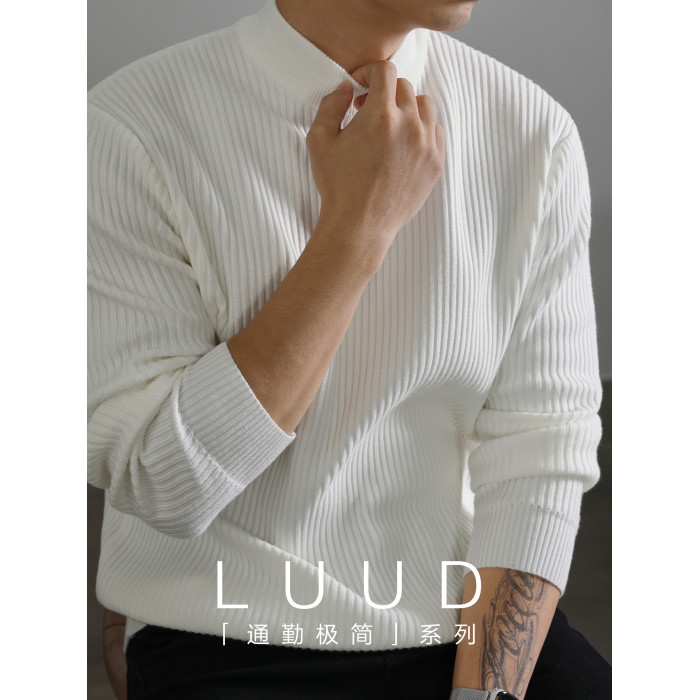 LUUD 白色簡奢坑條紋理感半高領毛衣男士冬季保暖打底針織衫上衣