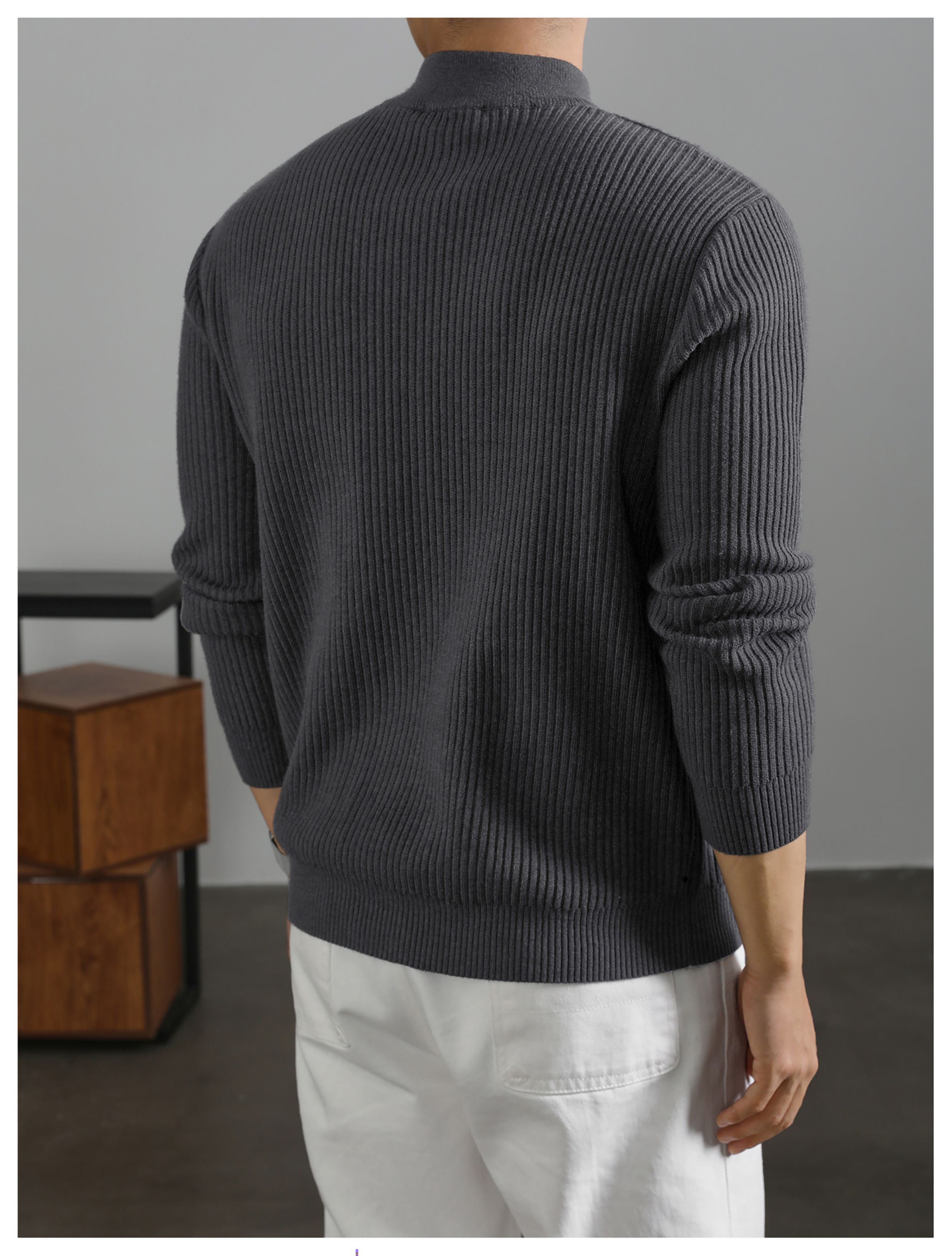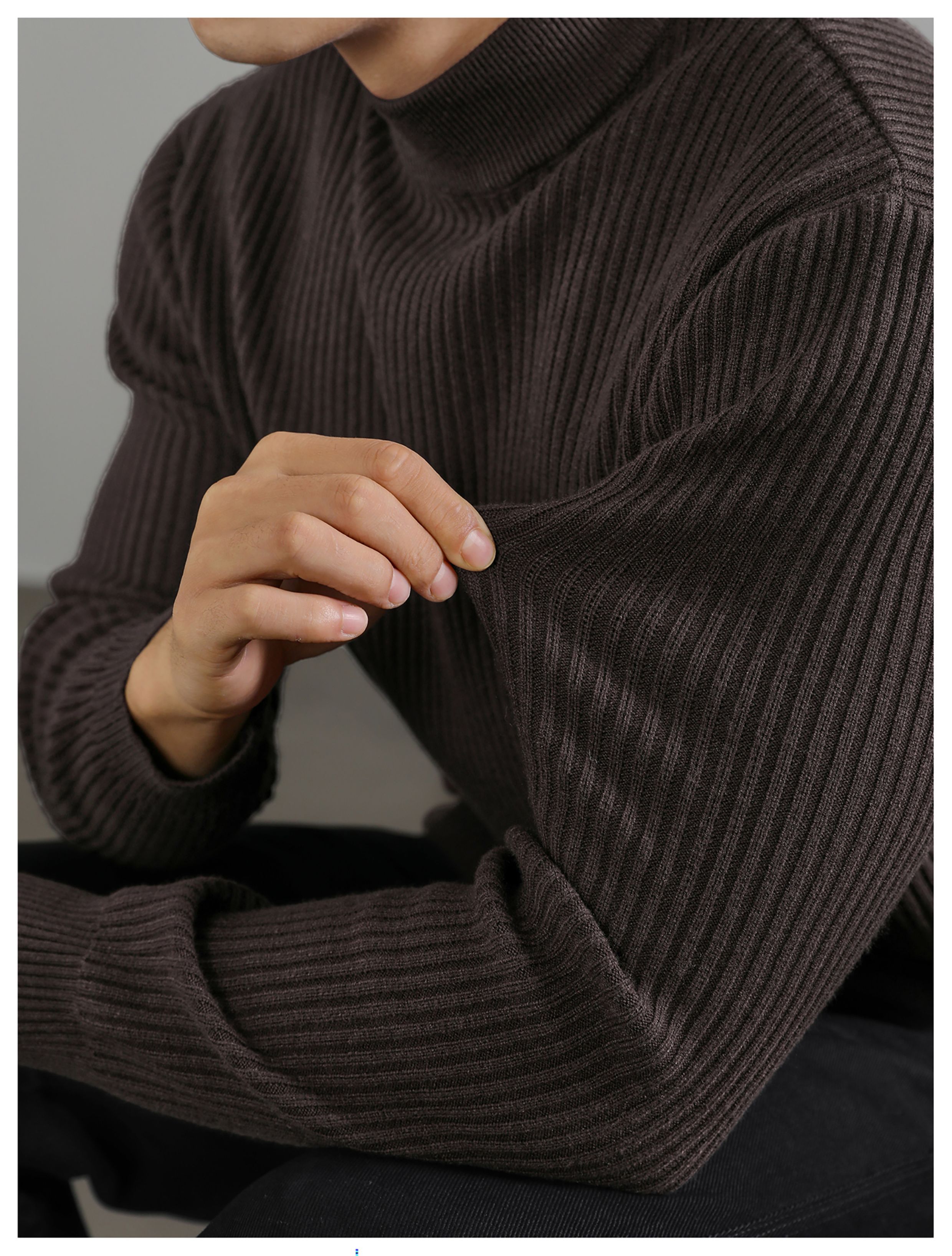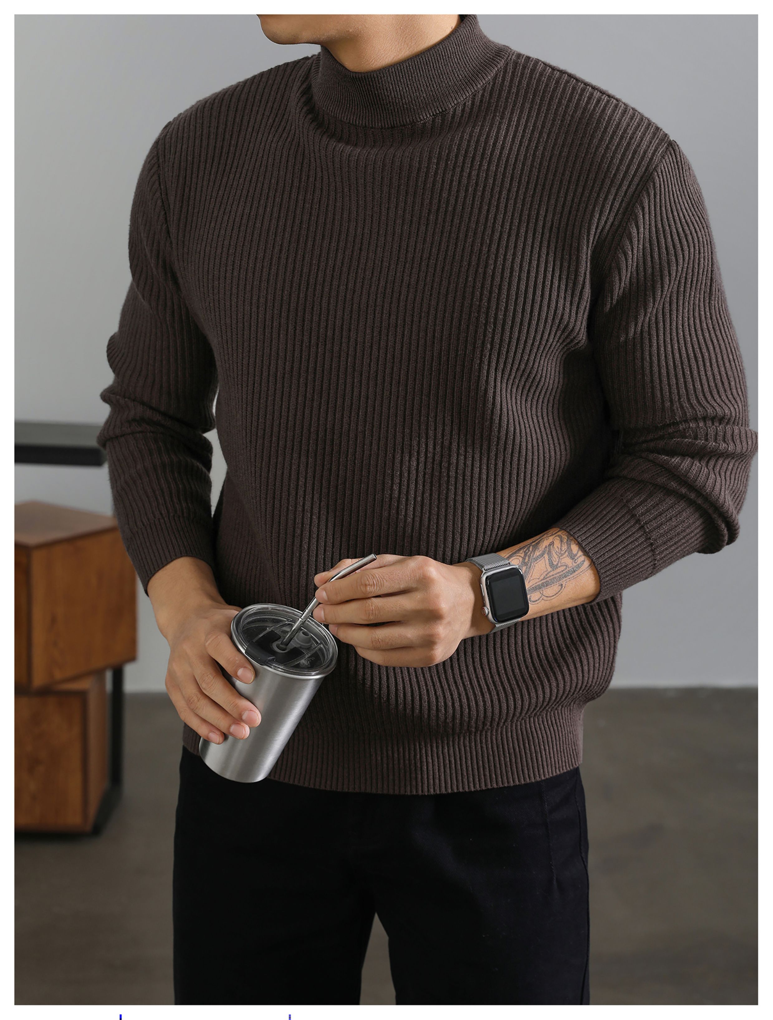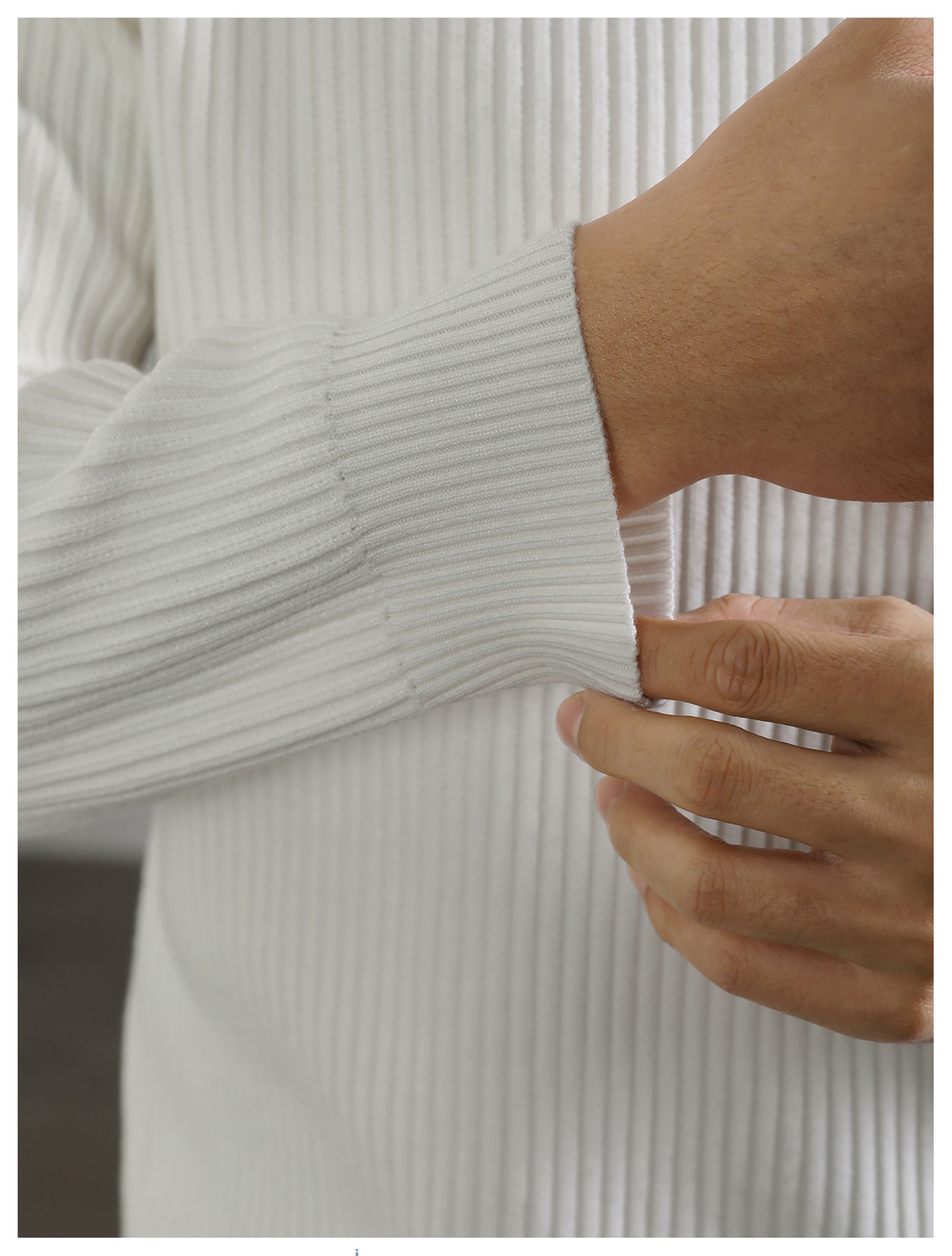 LUUD 白色簡奢坑條紋理感半高領毛衣男士冬季保暖打底針織衫上衣