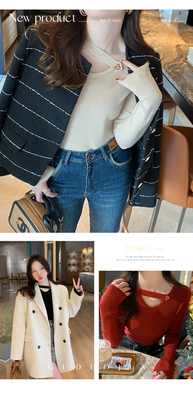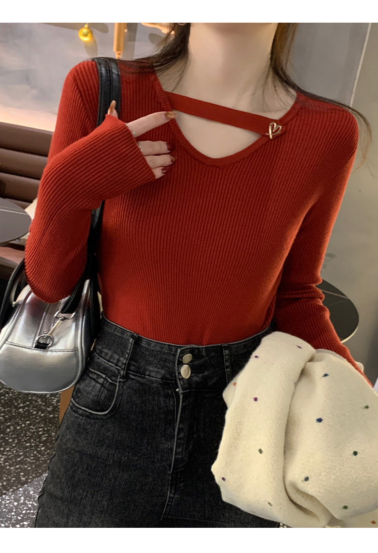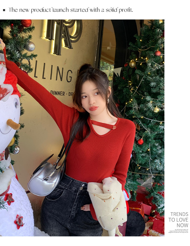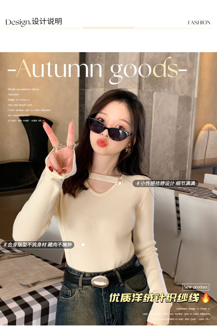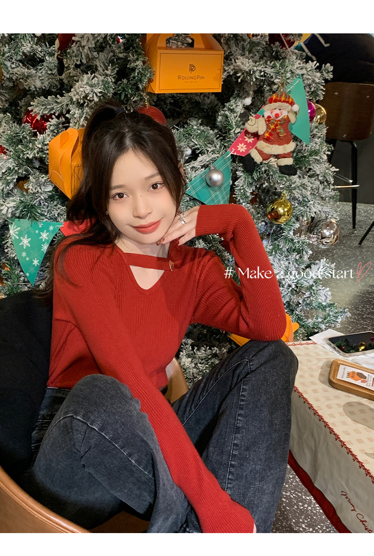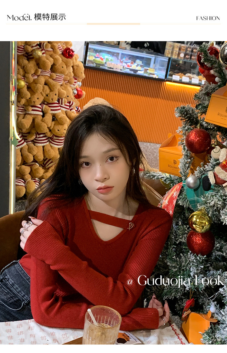 2025新款紅色毛衣女秋冬內搭打底衫設計感羊絨針織衫掛脖別致上衣