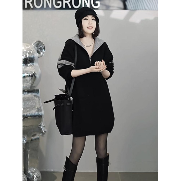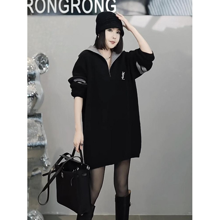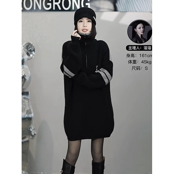 時尚中長款毛衣遮屁股洋氣2025冬季新款女大碼寬松加厚套頭上衣