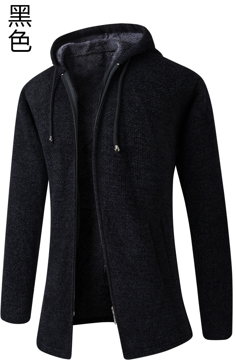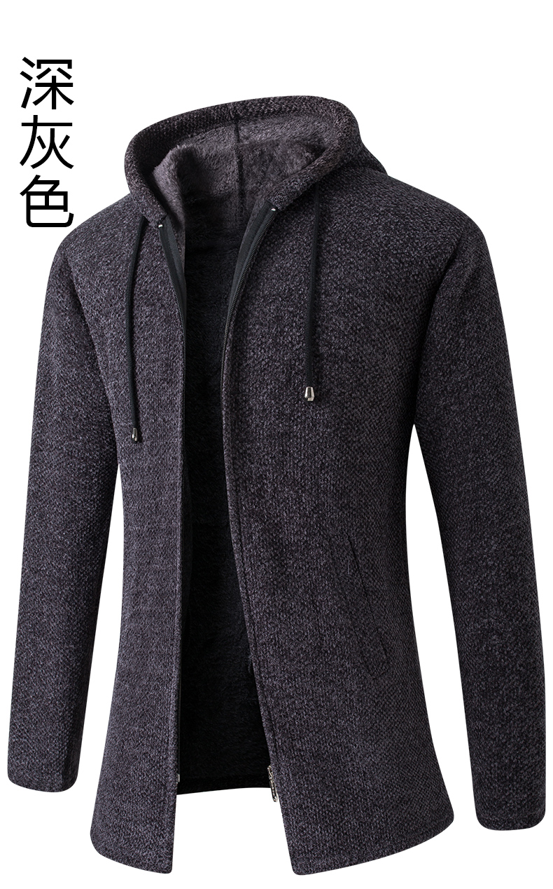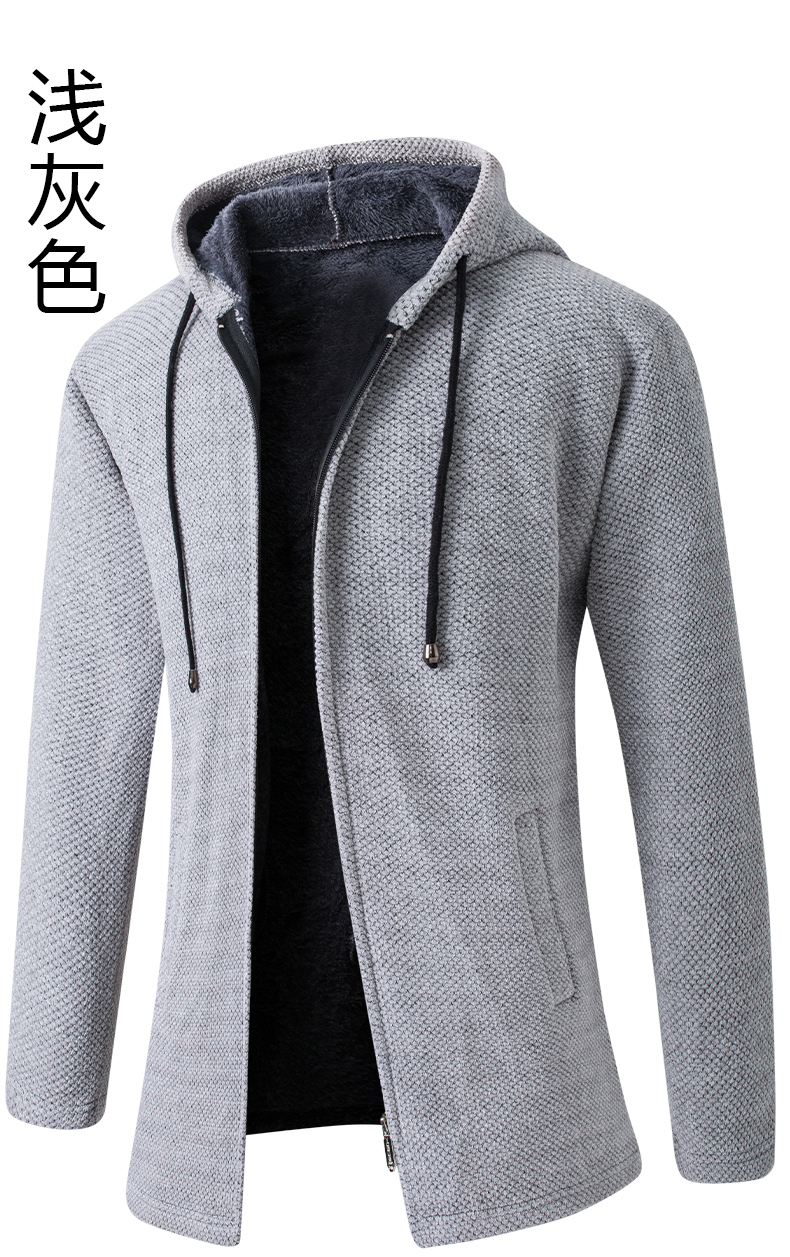 秋冬開衫毛衣男士加絨加厚休閒男裝針織衫拉鍊連帽外套寬松保暖潮