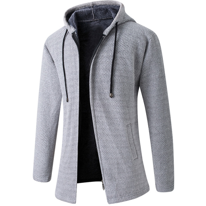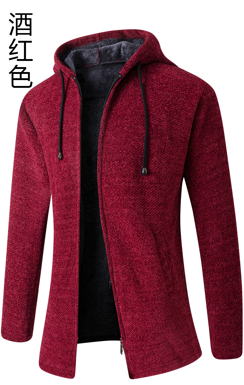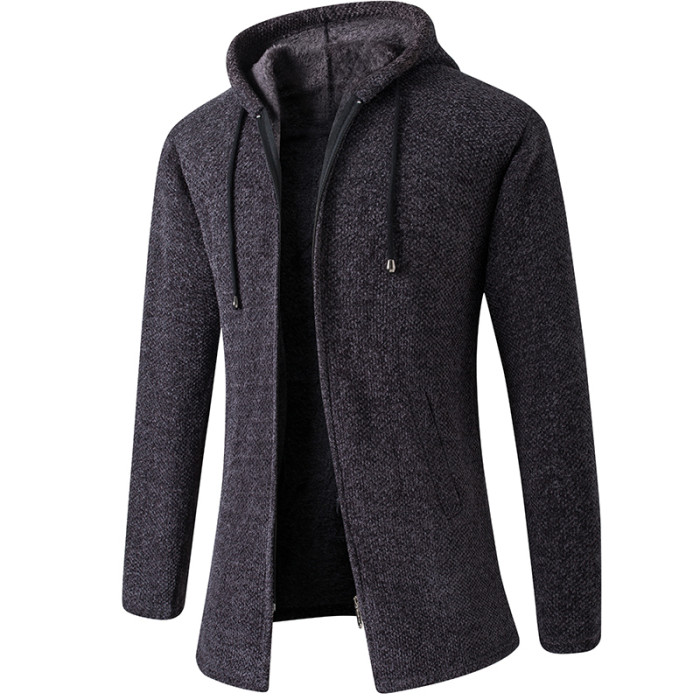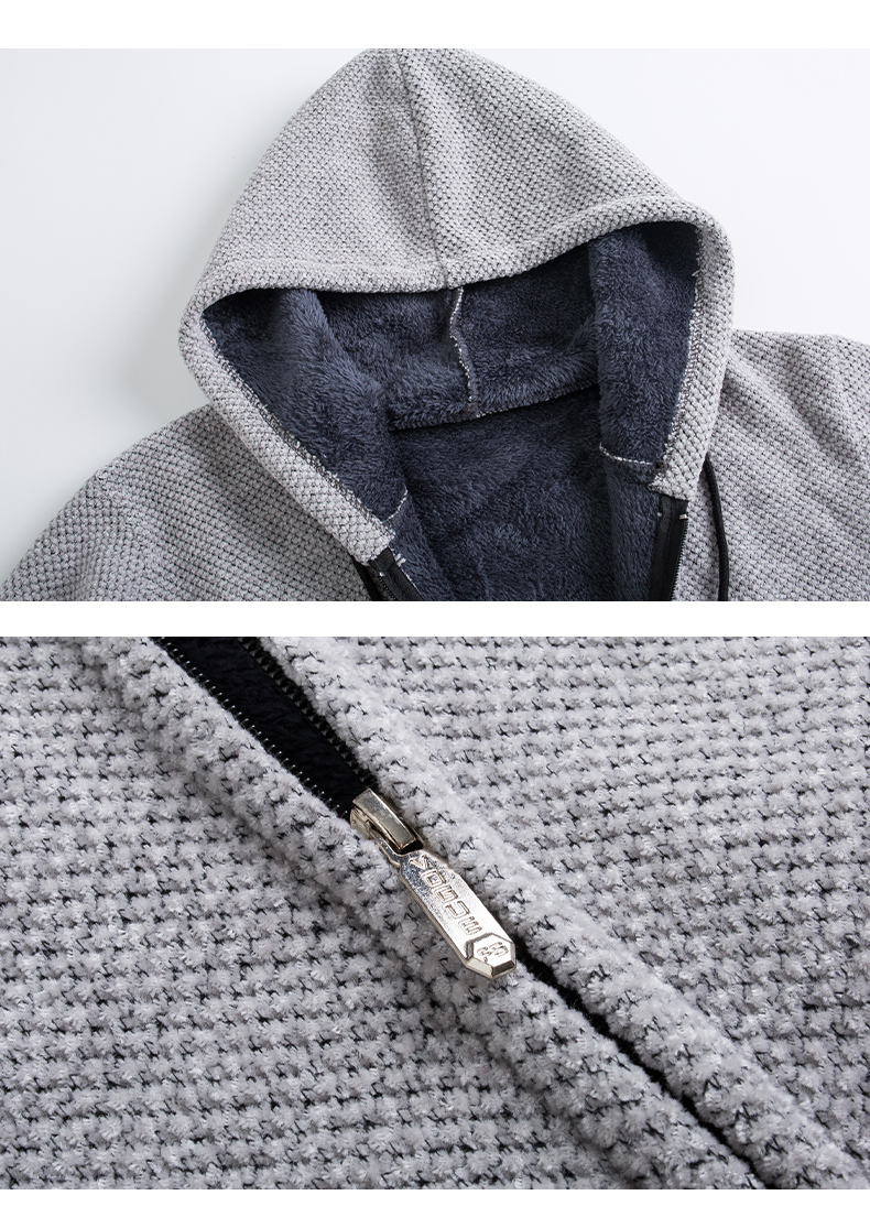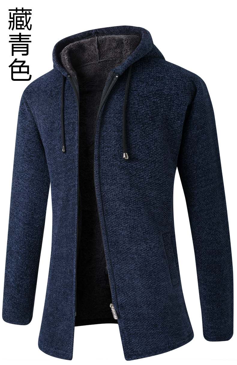 秋冬開衫毛衣男士加絨加厚休閒男裝針織衫拉鍊連帽外套寬松保暖潮