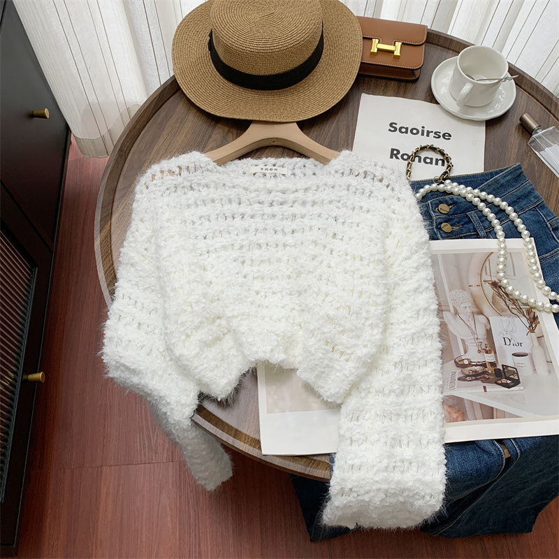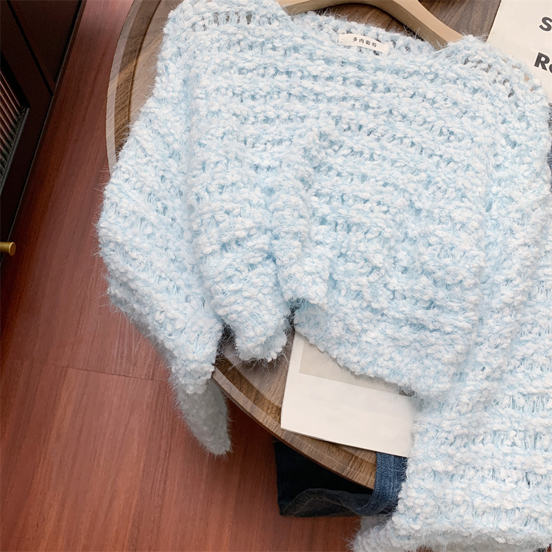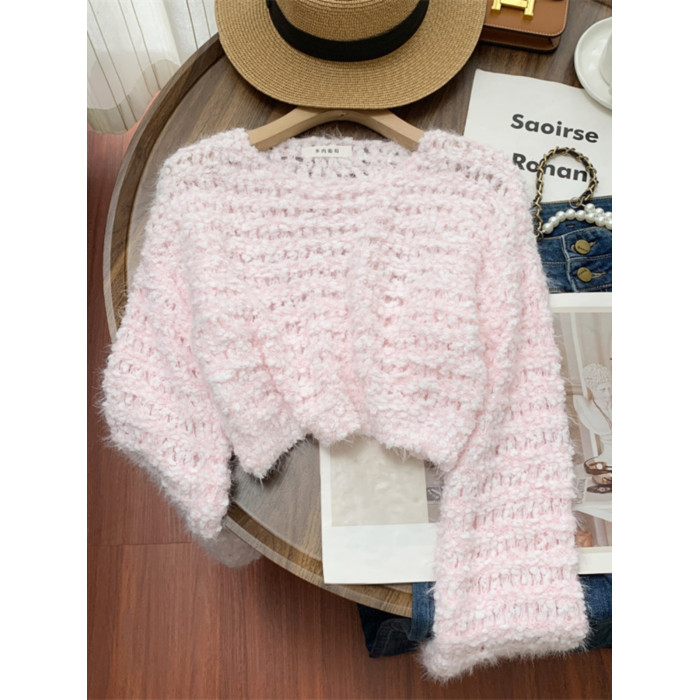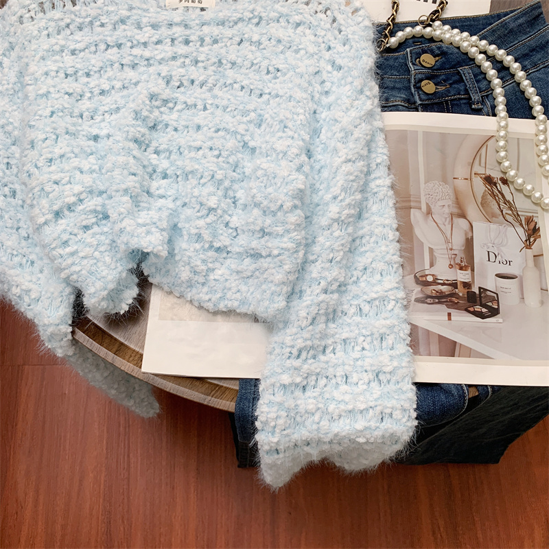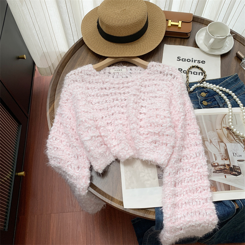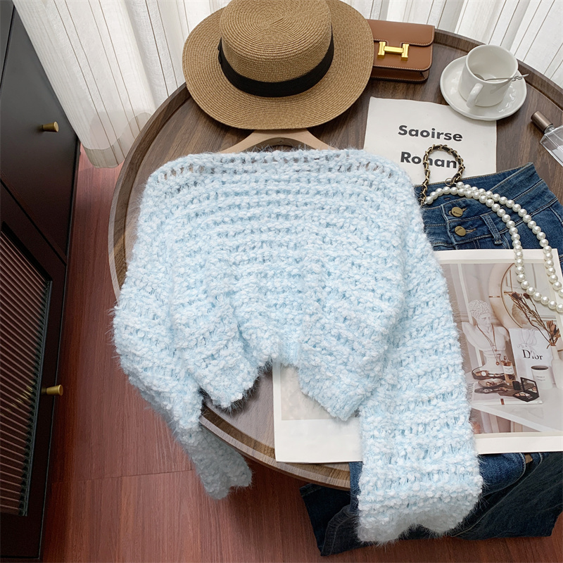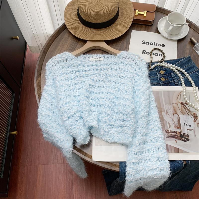專櫃撤迴大牌剪標女裝韓系ins馬海毛毛衣女秋季百搭顯瘦短款上衣