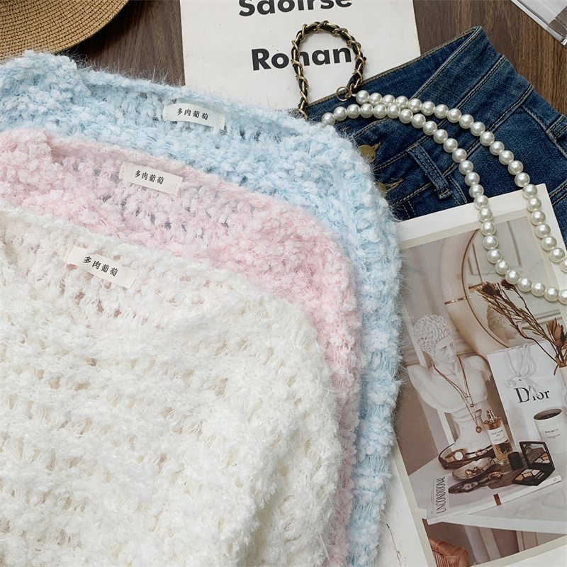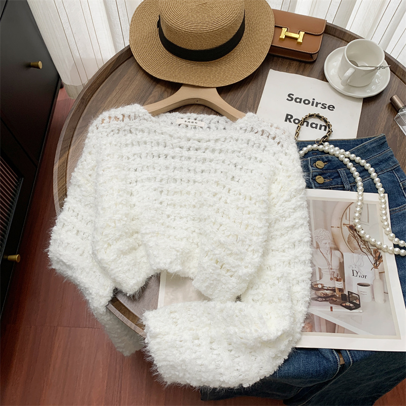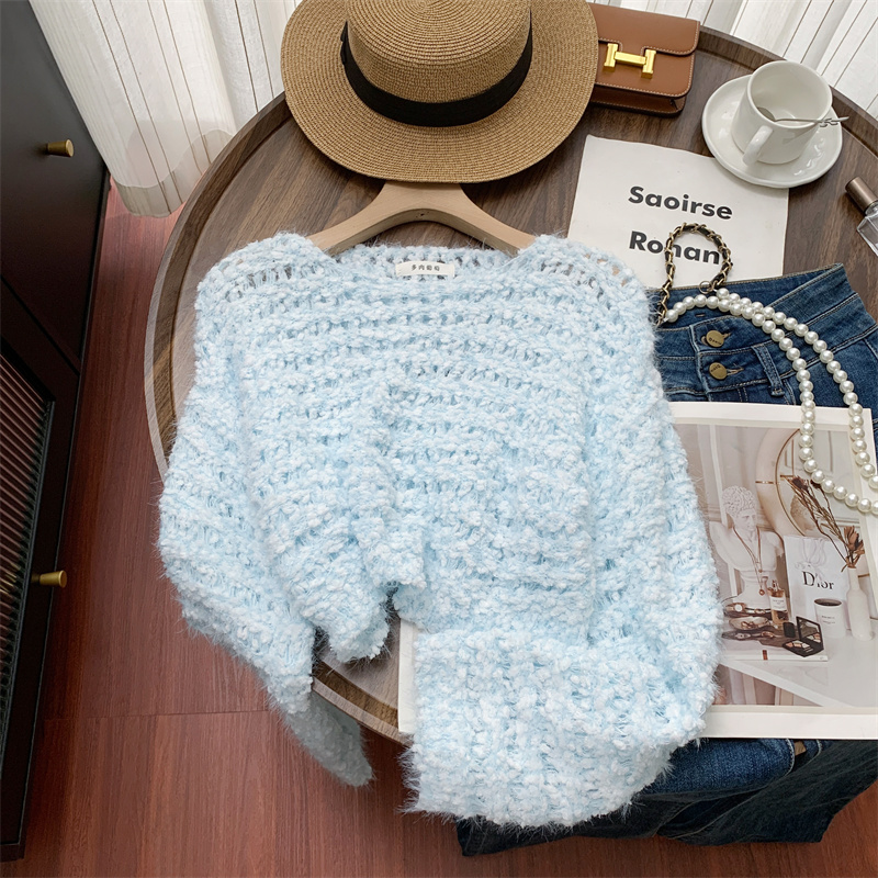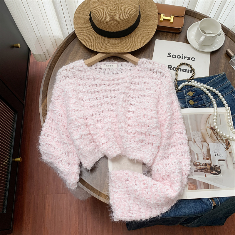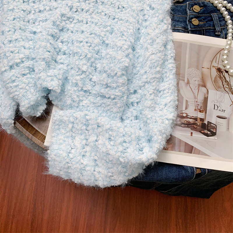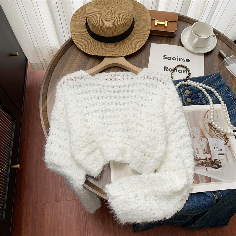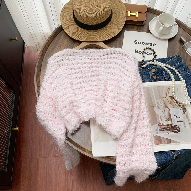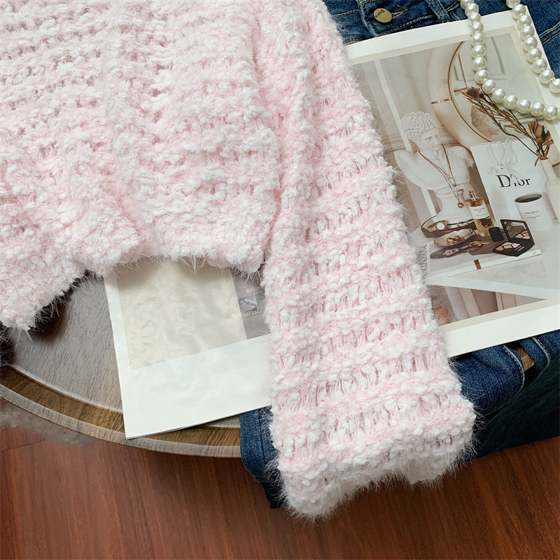 專櫃撤迴大牌剪標女裝韓系ins馬海毛毛衣女秋季百搭顯瘦短款上衣