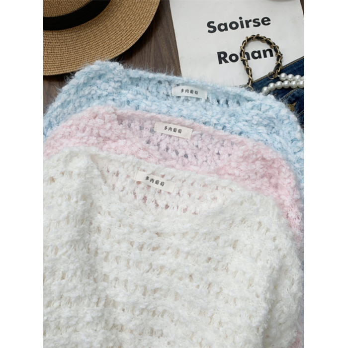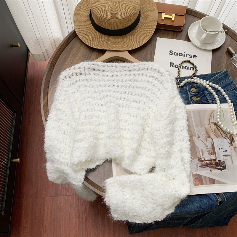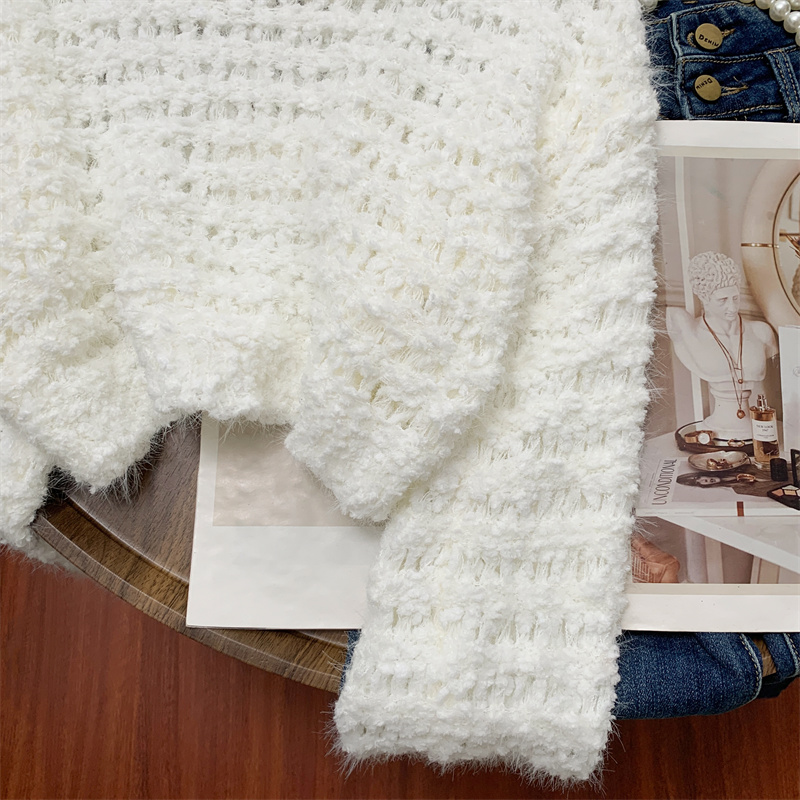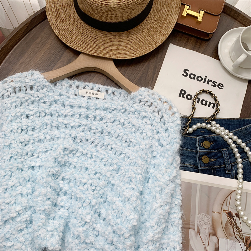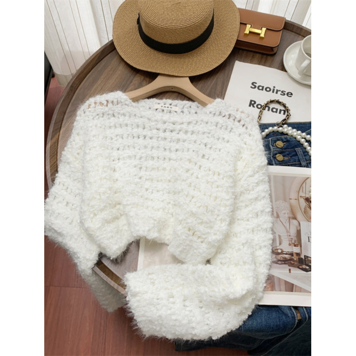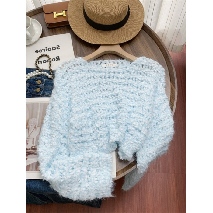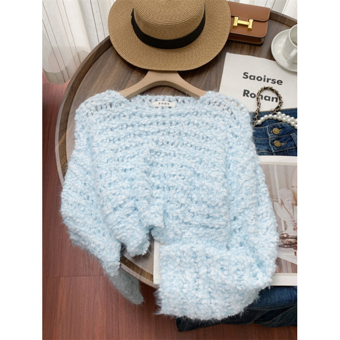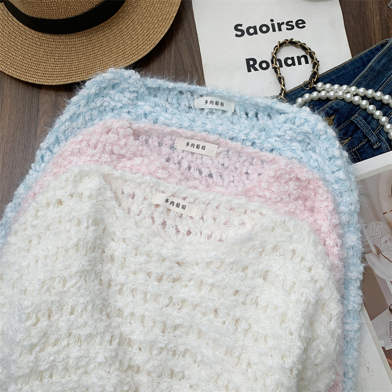 專櫃撤迴大牌剪標女裝韓系ins馬海毛毛衣女秋季百搭顯瘦短款上衣