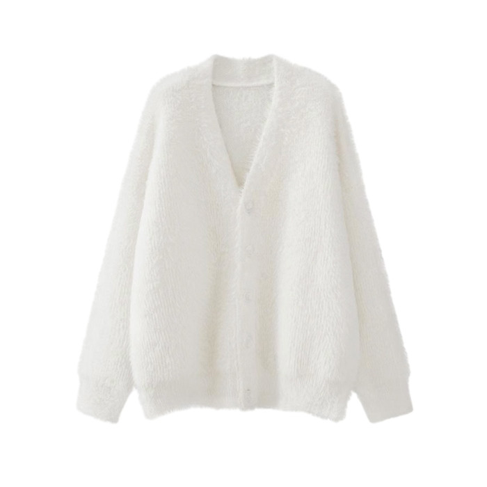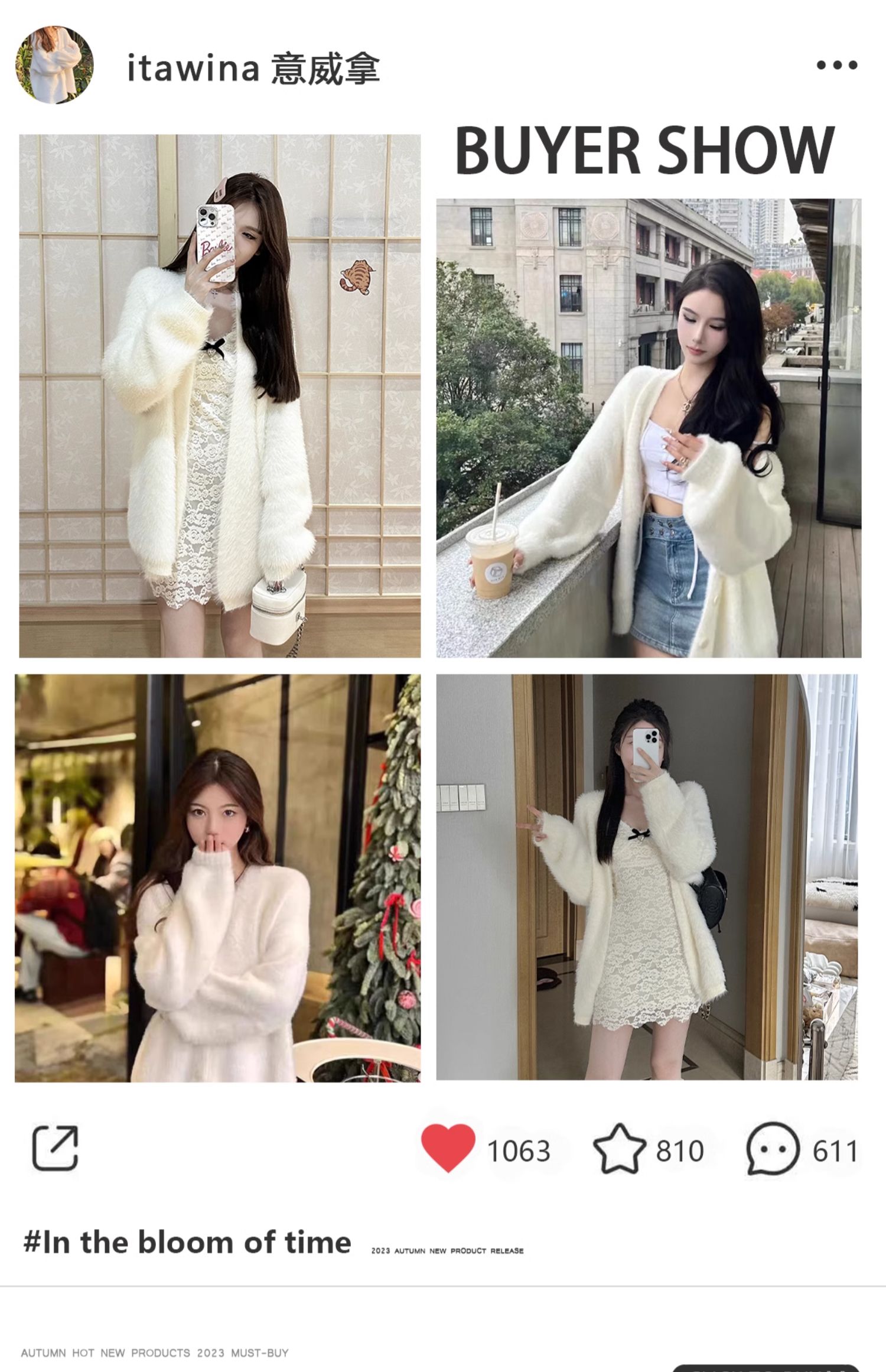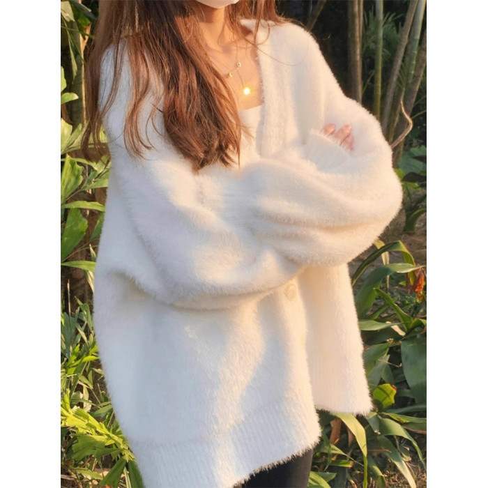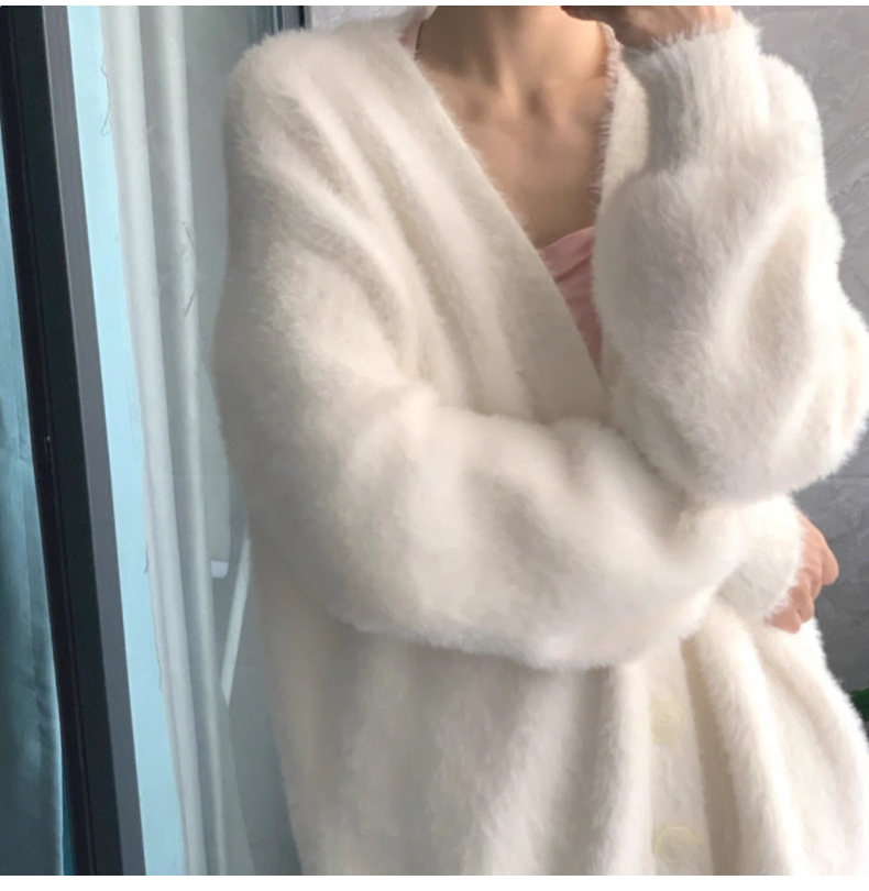早秋季穿搭水貂絨白色毛衣女秋冬外穿慵懶高級松弛感針織開衫外套