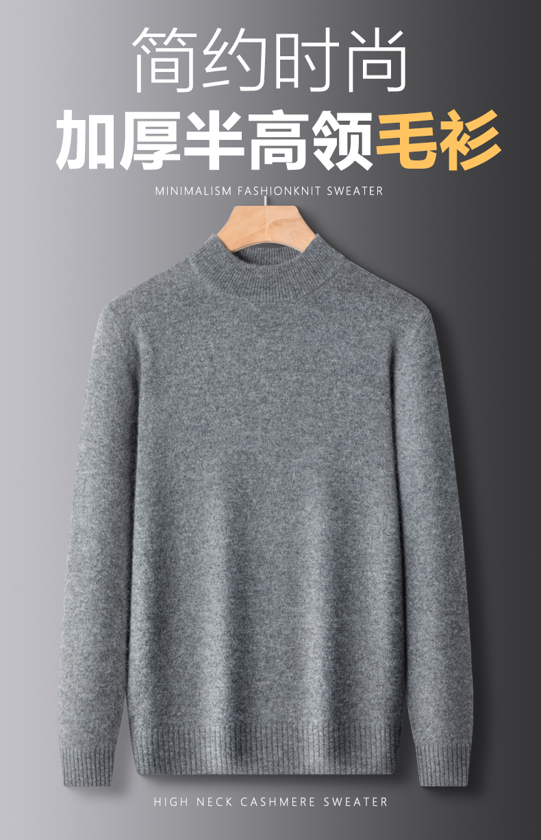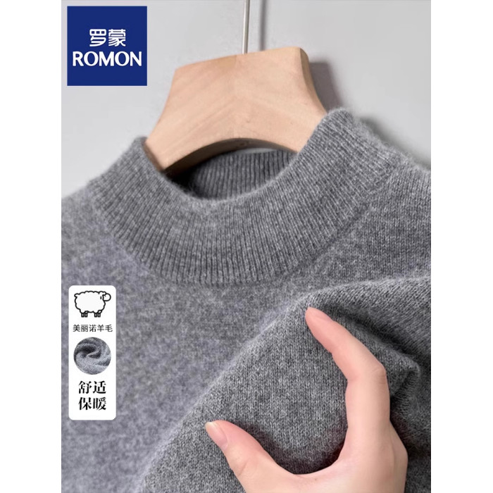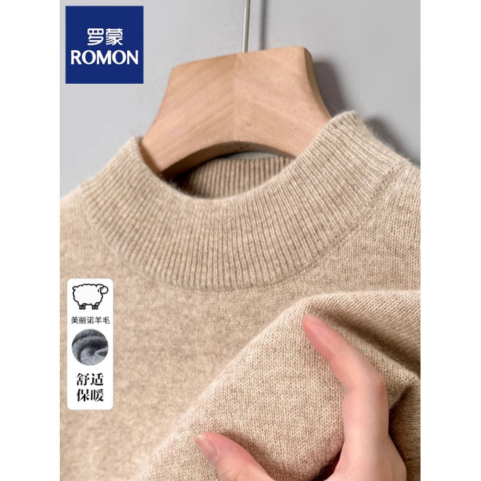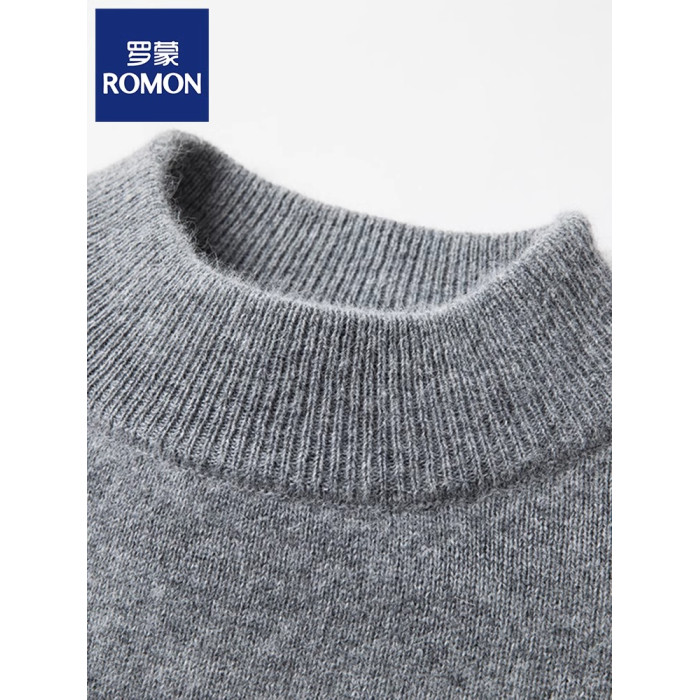 羅矇秋冬款加厚羊毛衫男士半高領針織純色內搭打底保暖中青年毛衣
