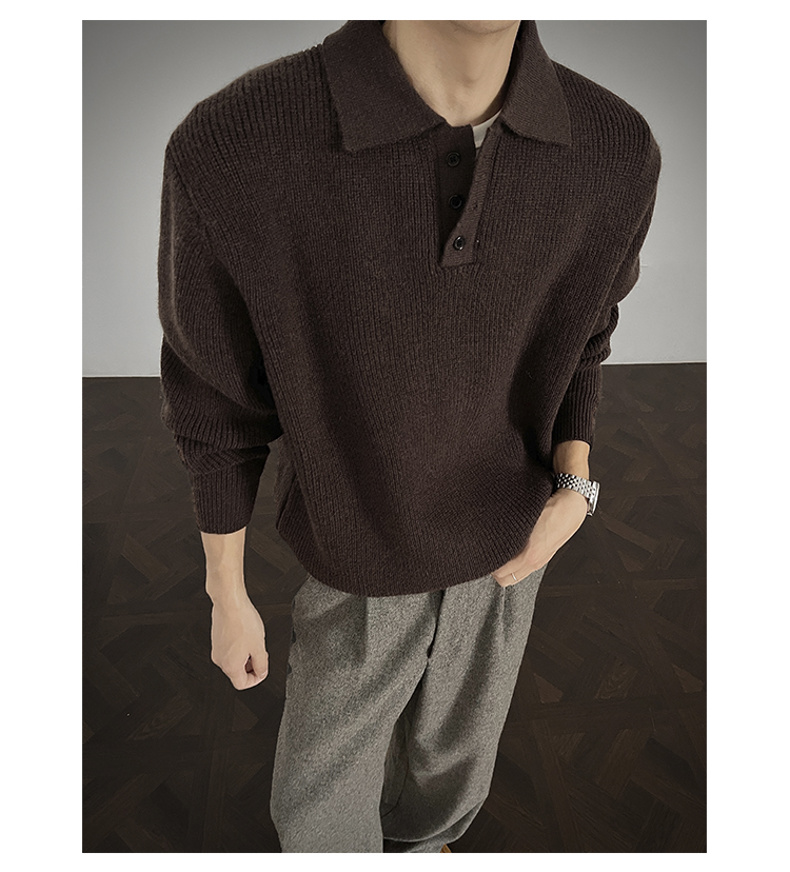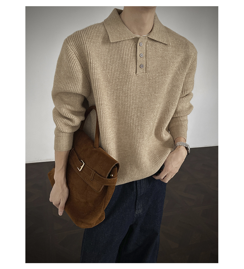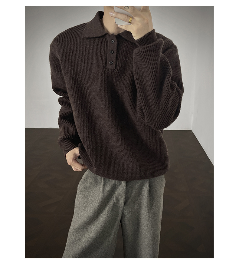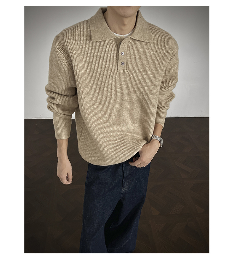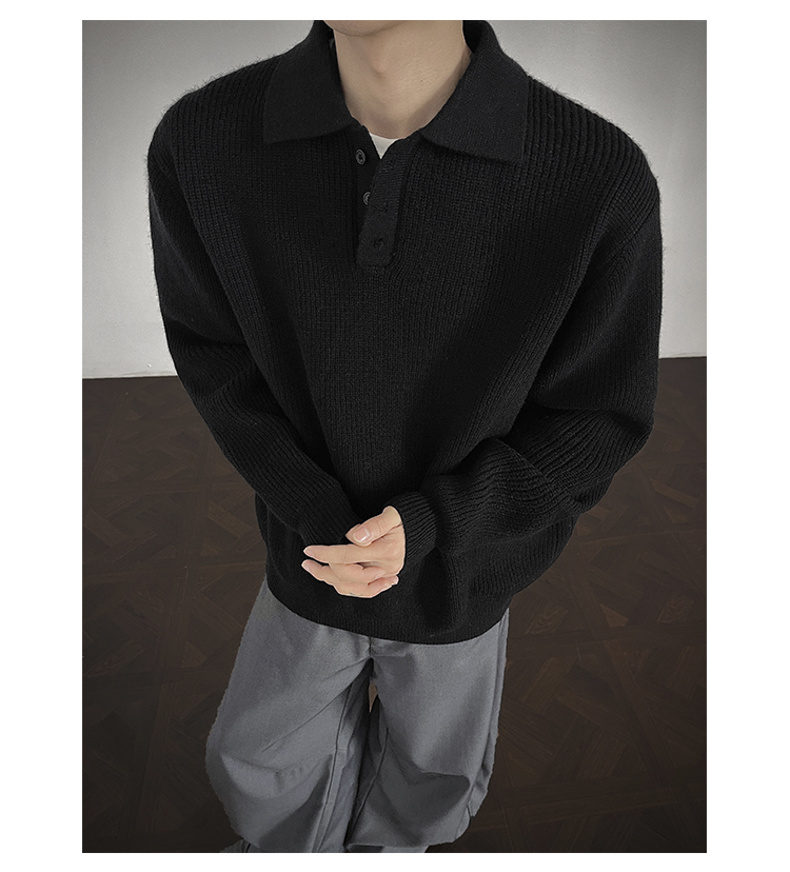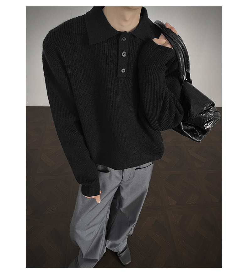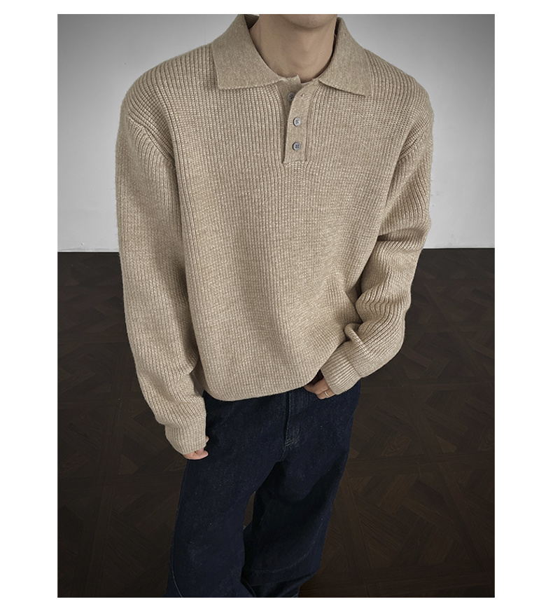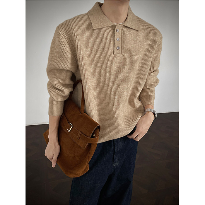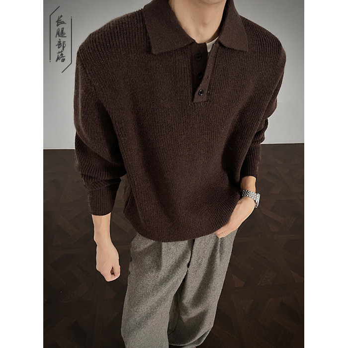 重磅老錢風高個子時尚冬季韓版男士針織衫復古休閒翻領毛衣打底衫