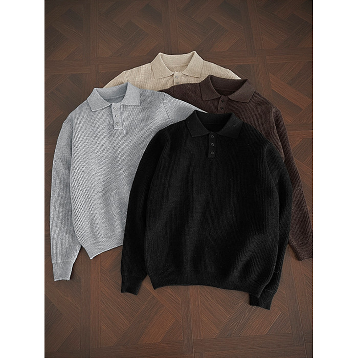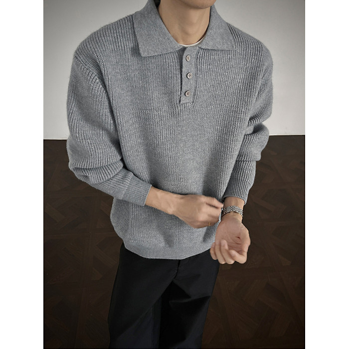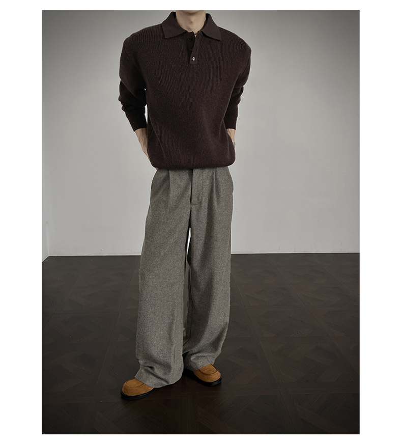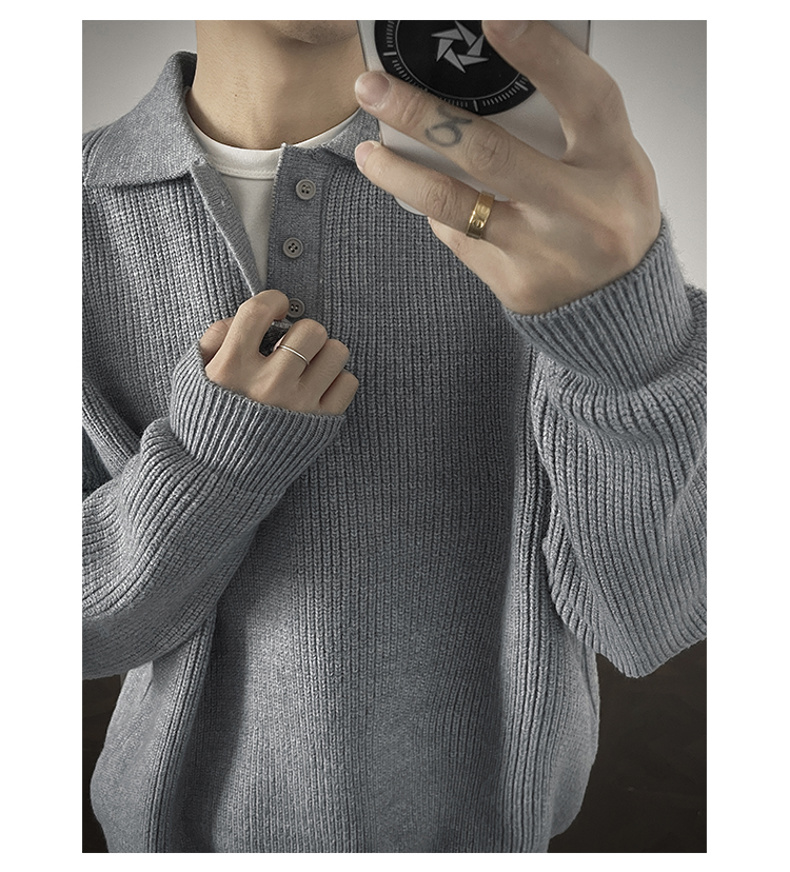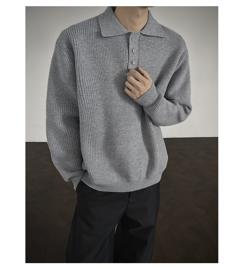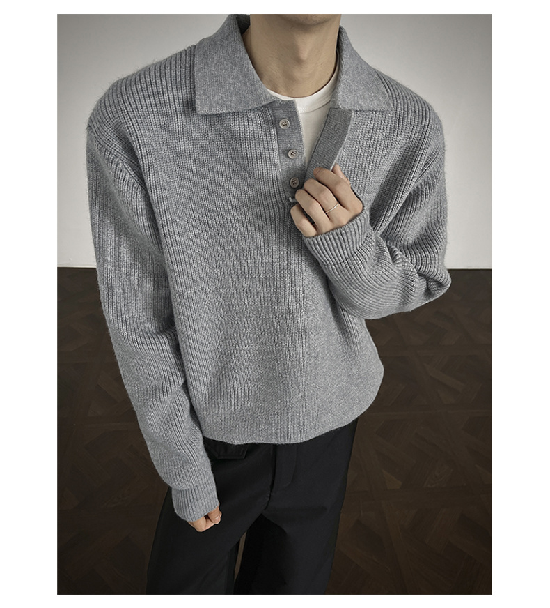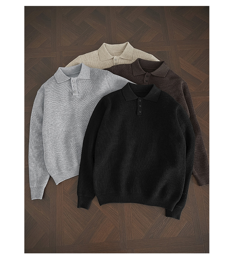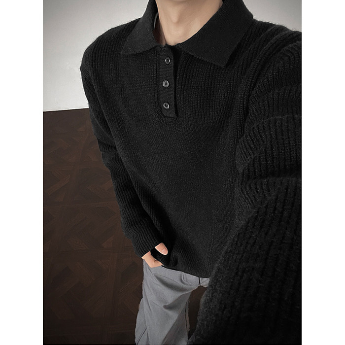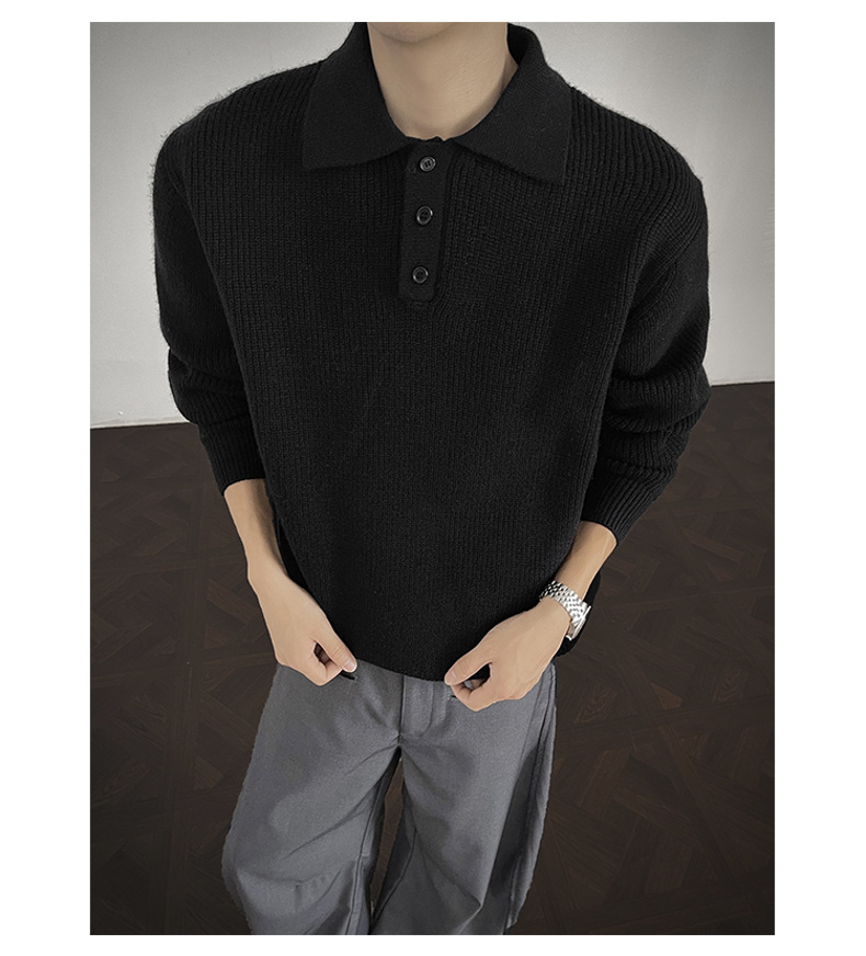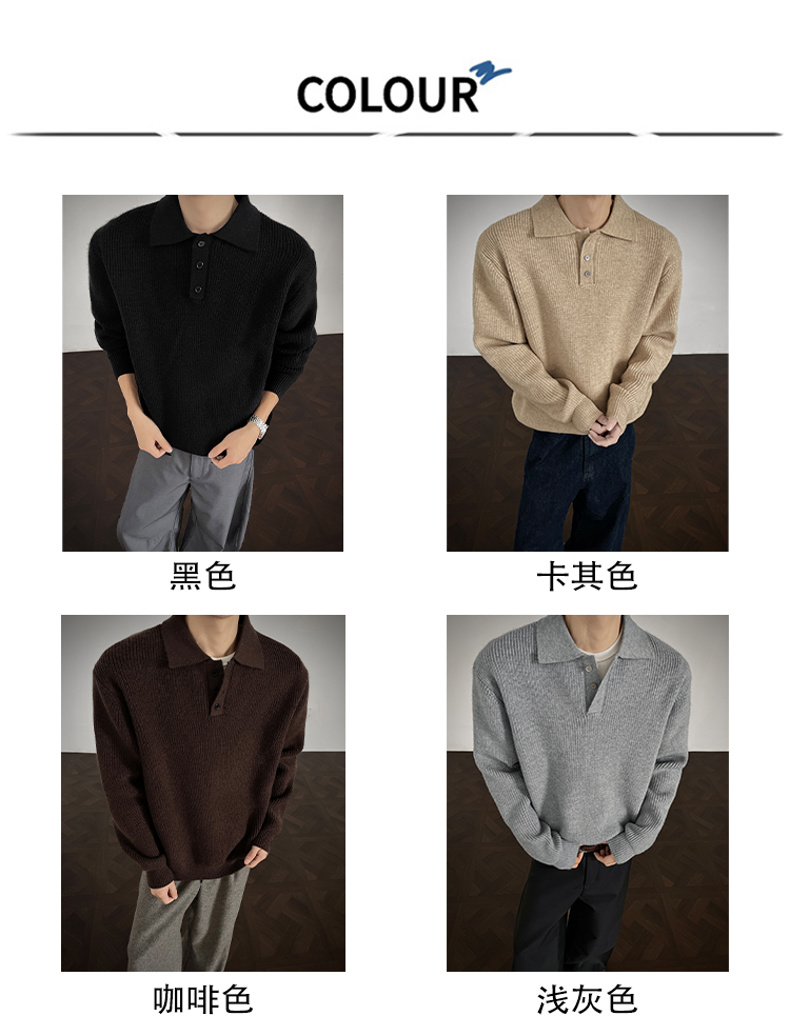 重磅老錢風高個子時尚冬季韓版男士針織衫復古休閒翻領毛衣打底衫
