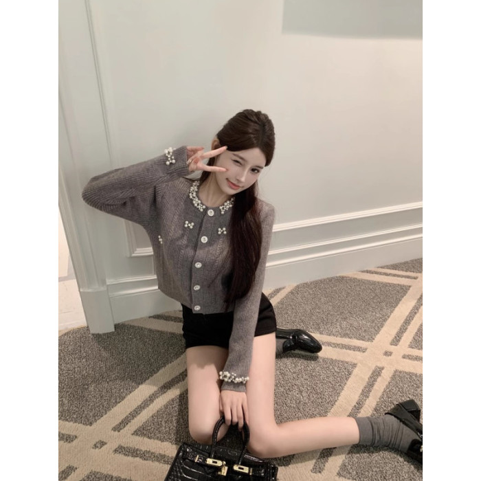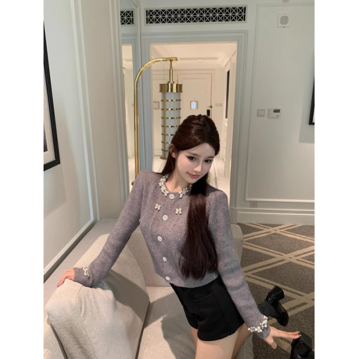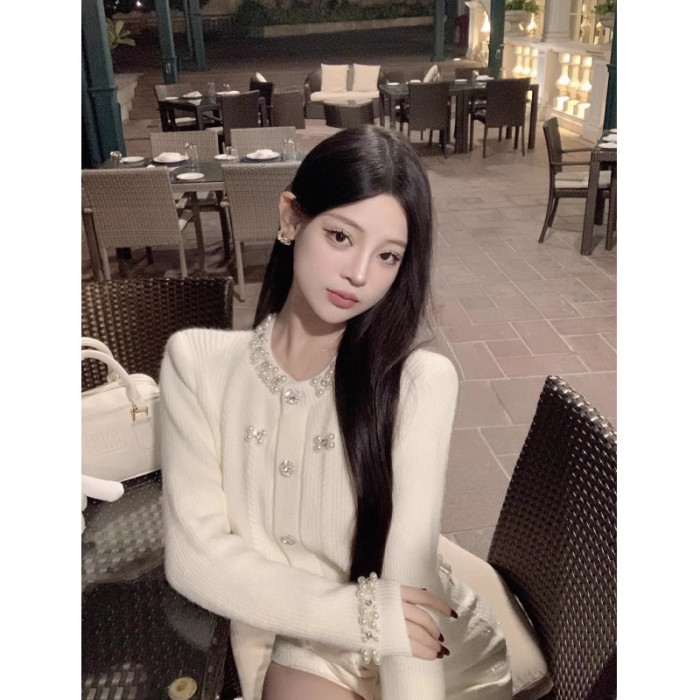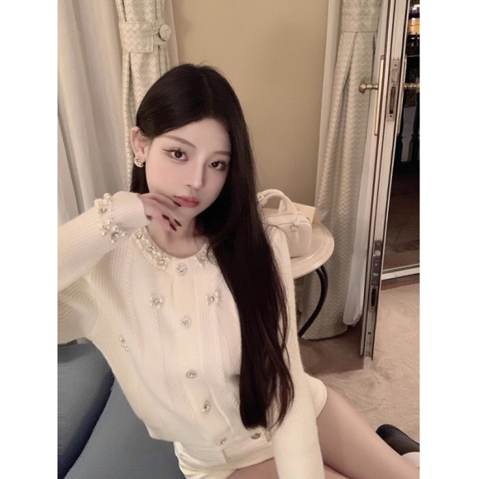 氣質小香風重工釘珠毛衣開衫女2025早秋新款修身顯瘦短款針織上衣