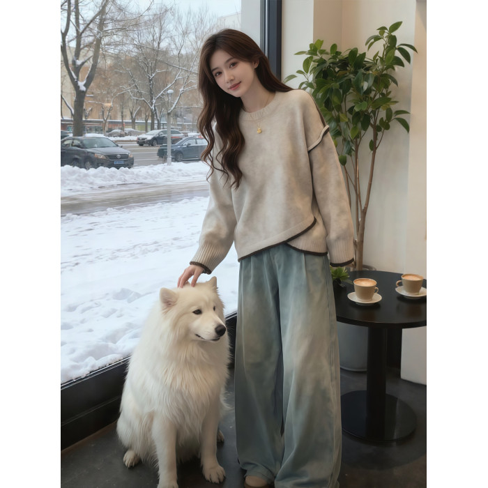 不規則設計感燕麥色針織毛衣女款2025年秋冬季新款獨特超好看上衣