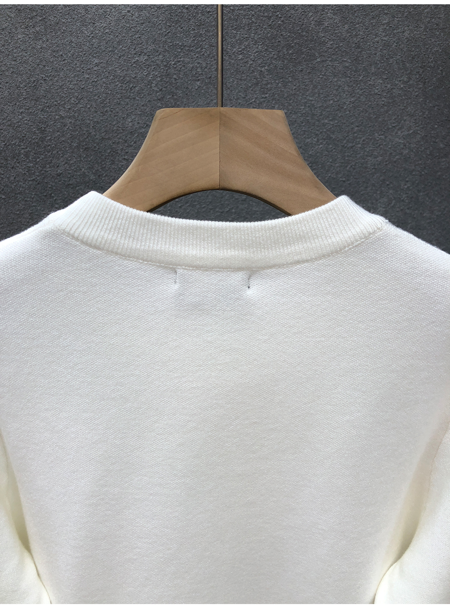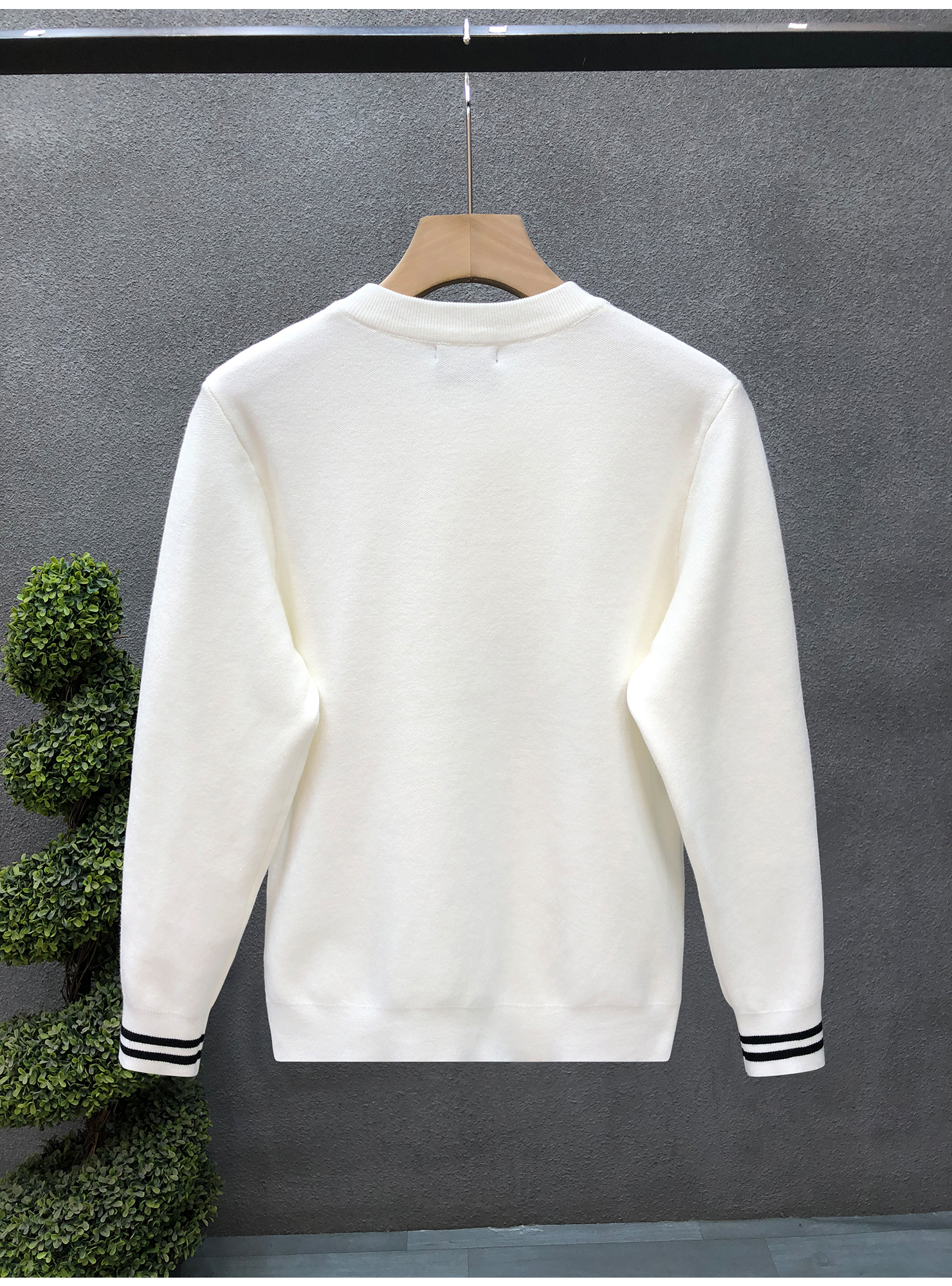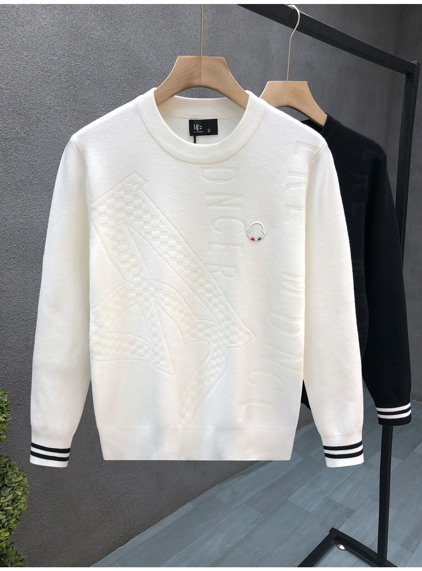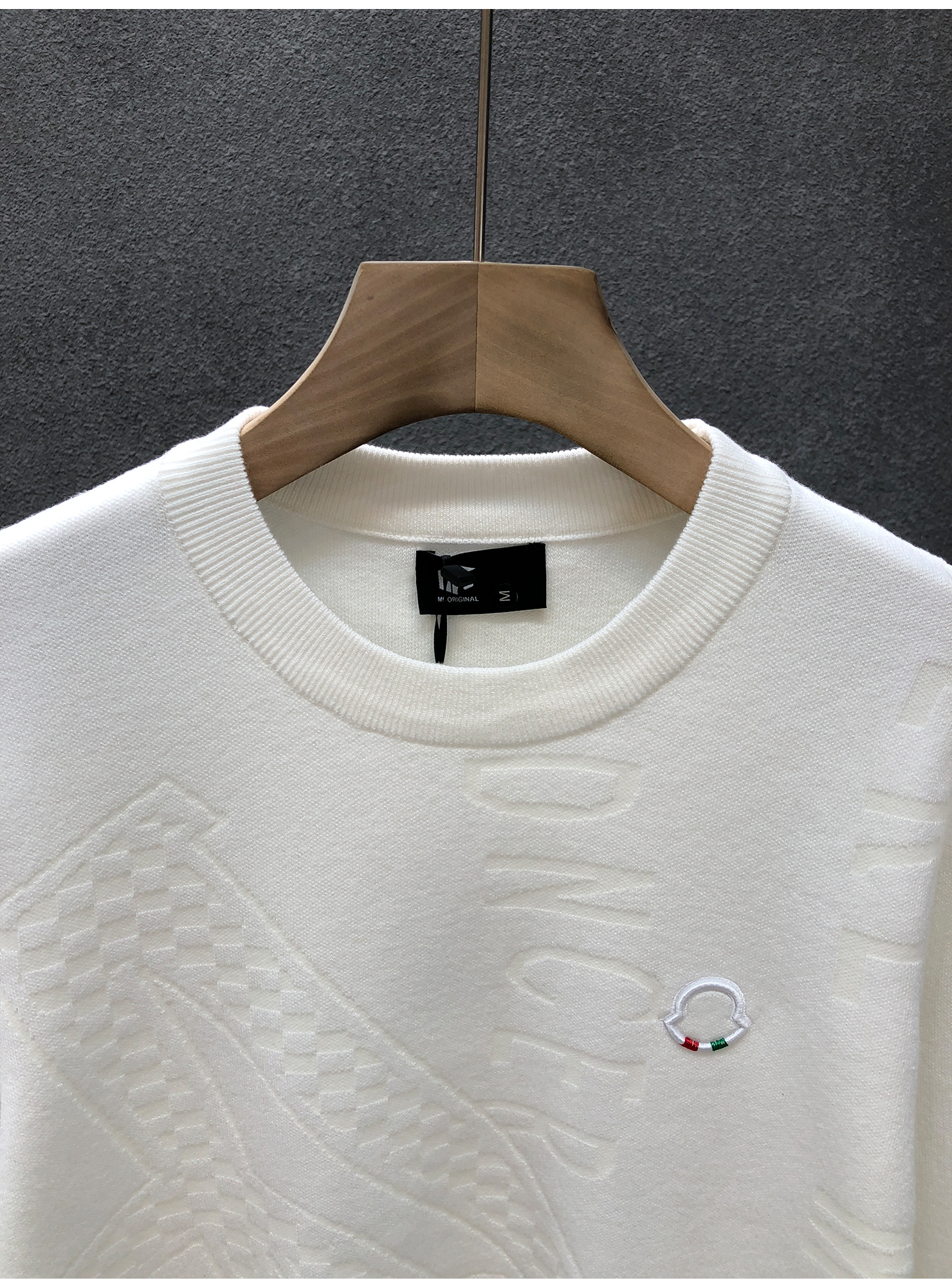 輕奢高定暗花紋白色毛衣男潮流圓領針織衫男士秋冬季內搭高級線衣