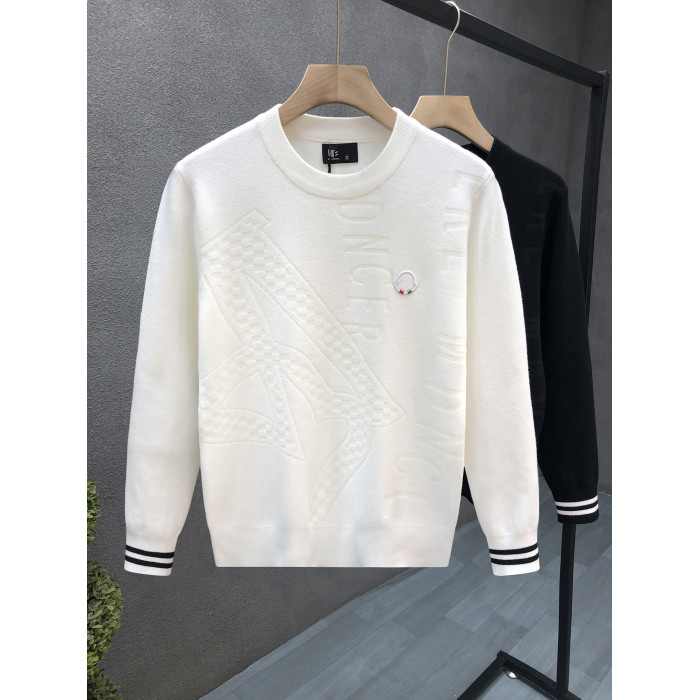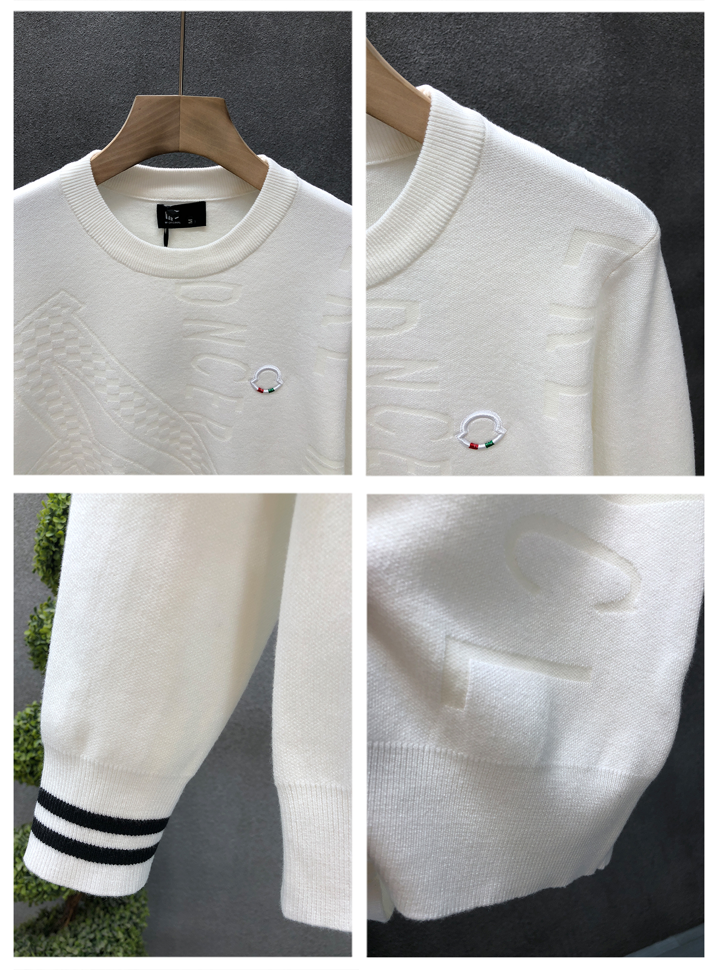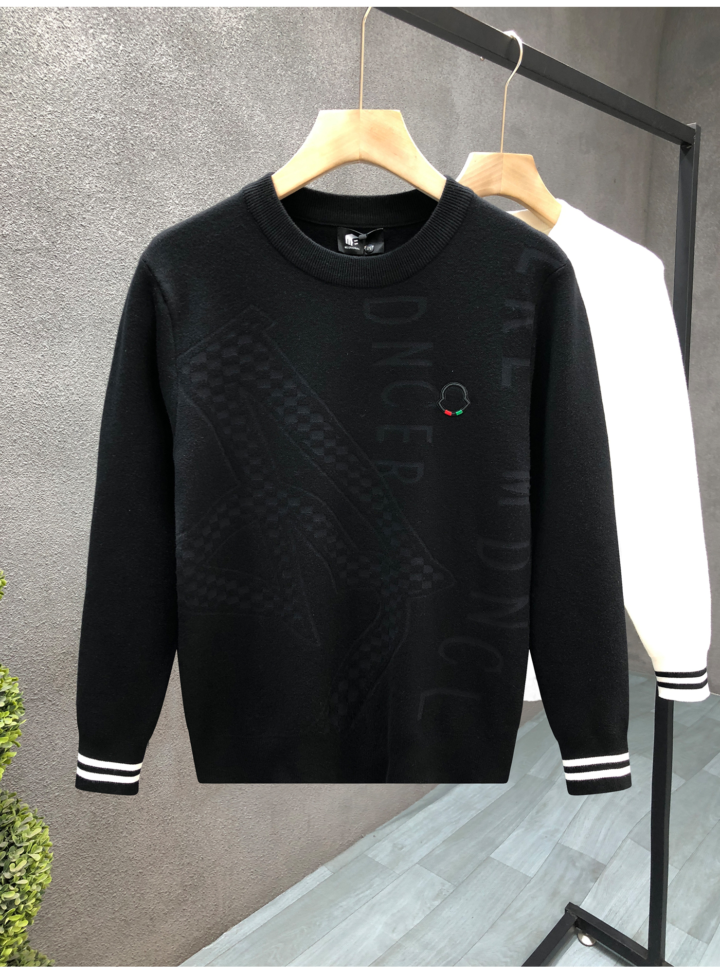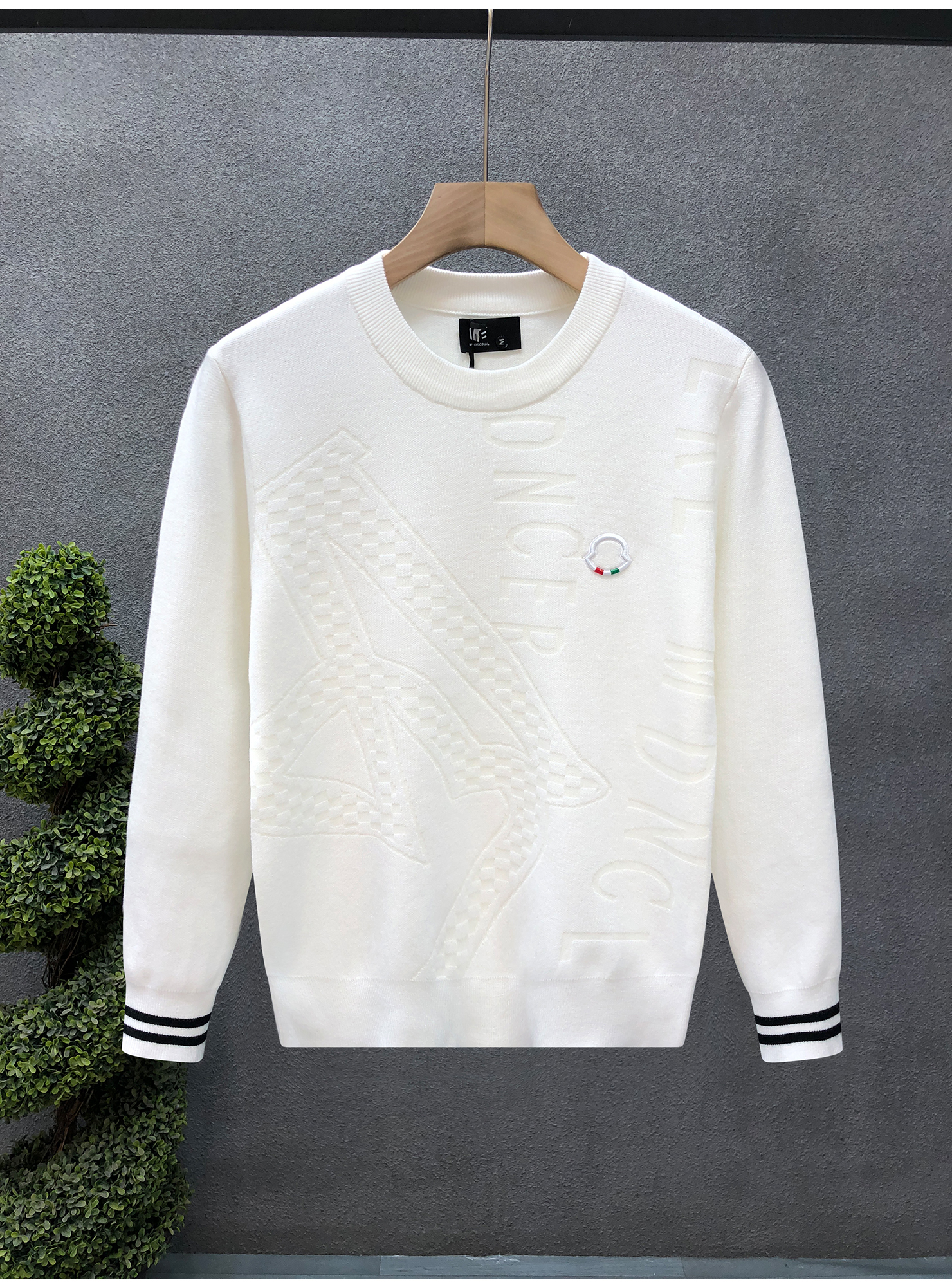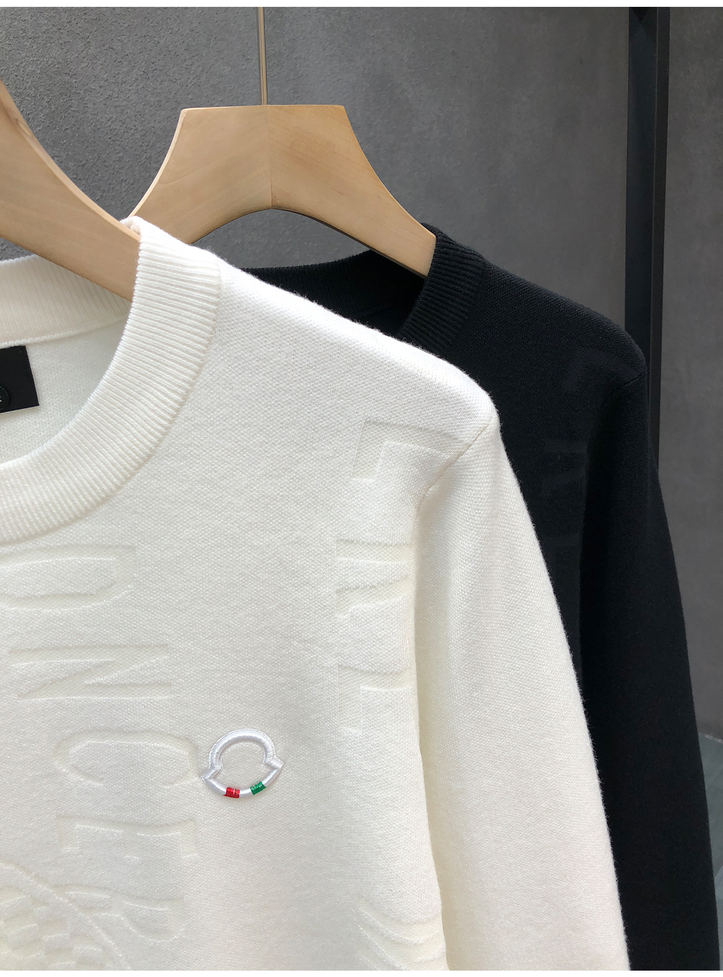 輕奢高定暗花紋白色毛衣男潮流圓領針織衫男士秋冬季內搭高級線衣