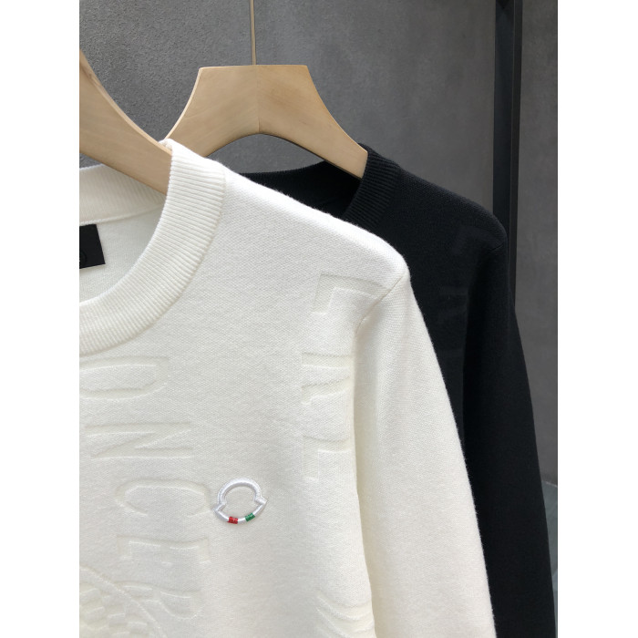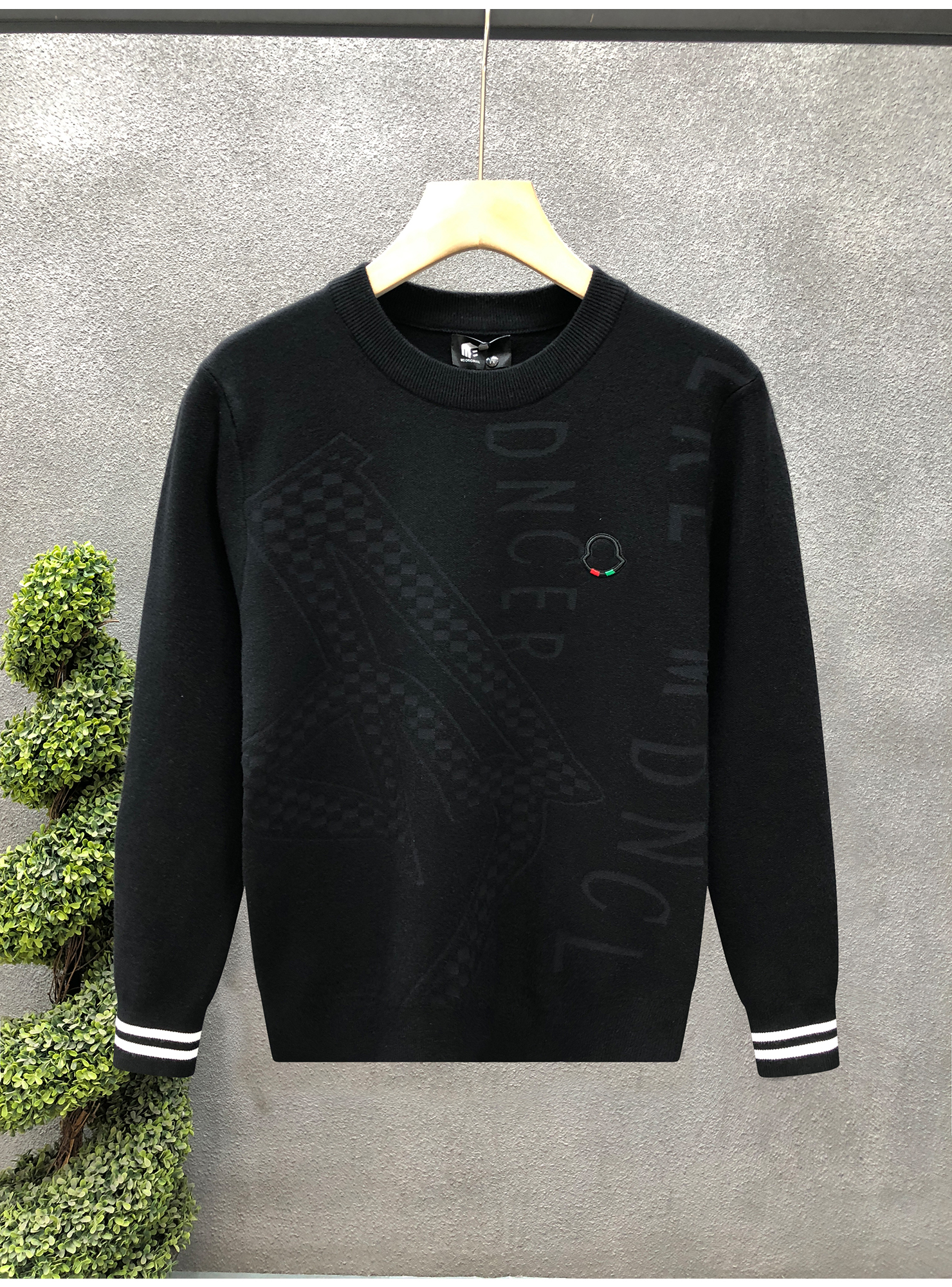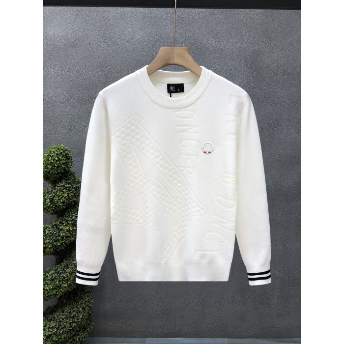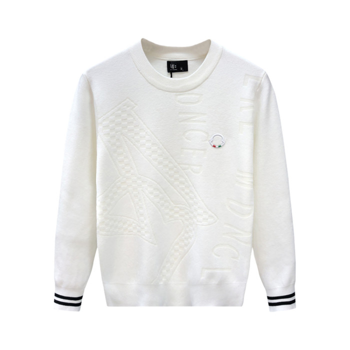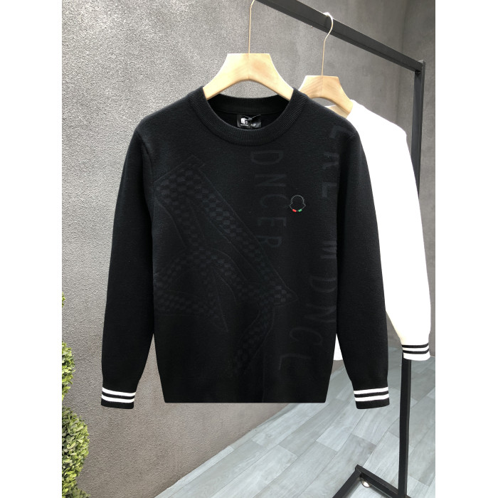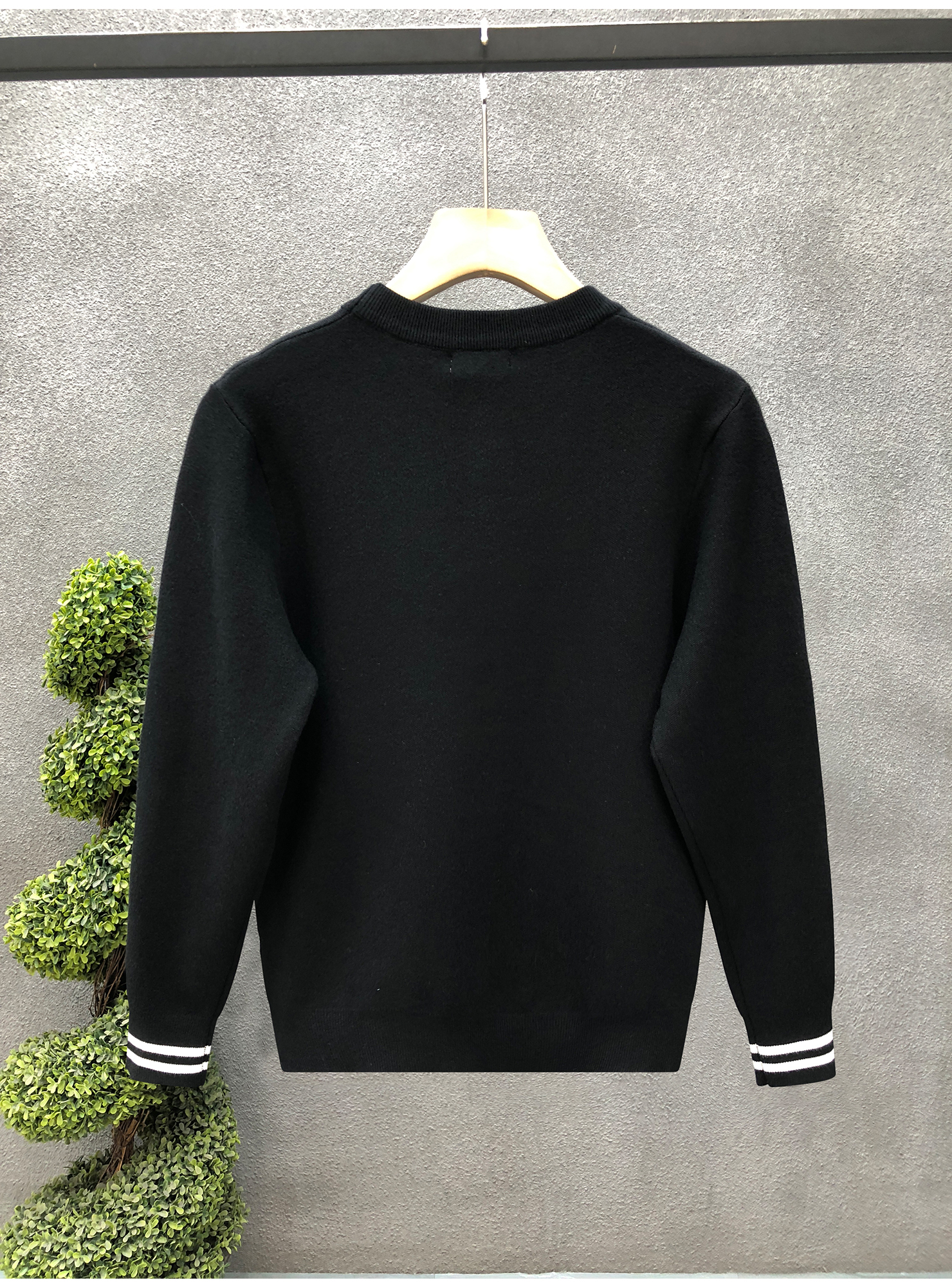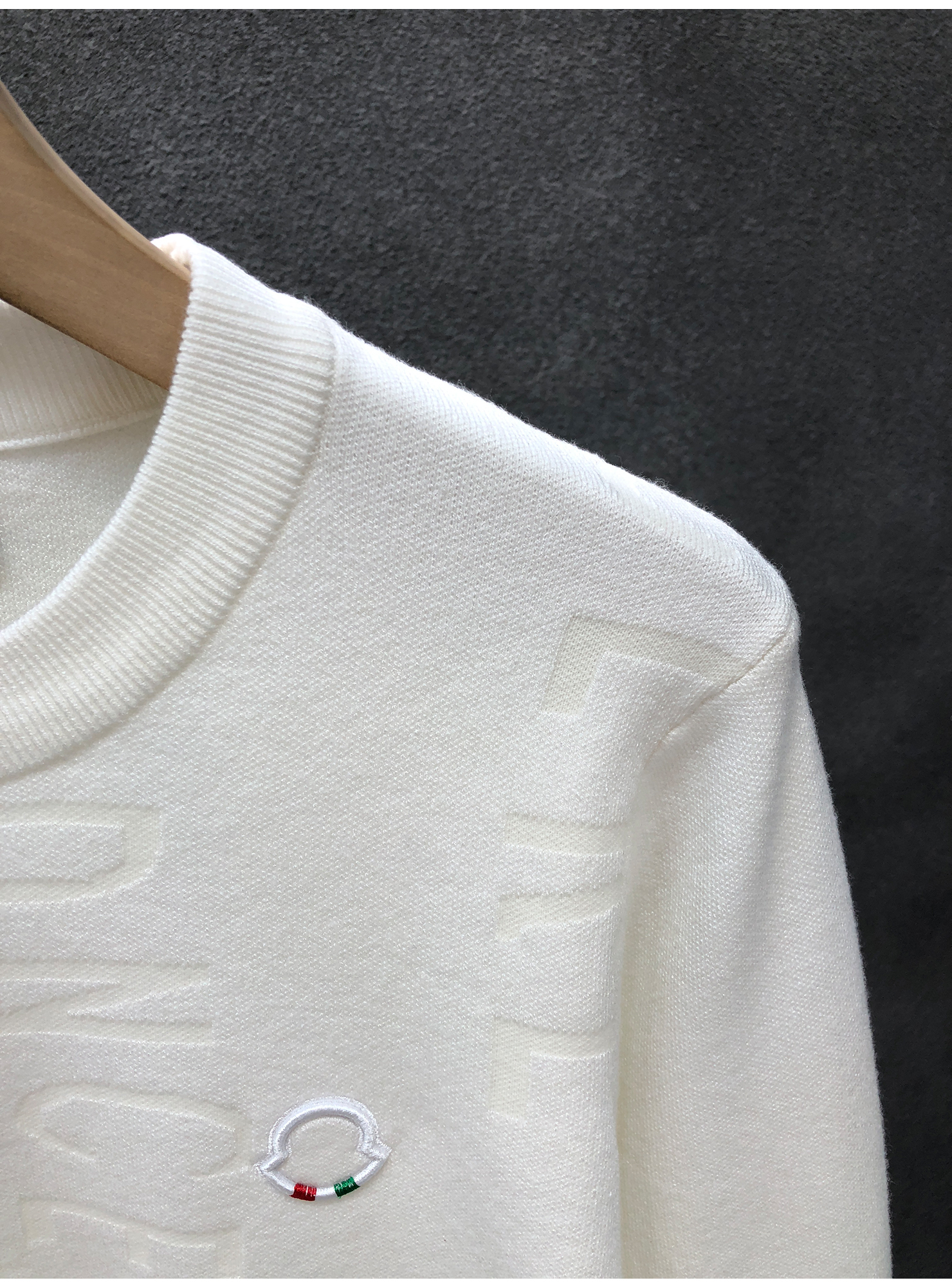 輕奢高定暗花紋白色毛衣男潮流圓領針織衫男士秋冬季內搭高級線衣