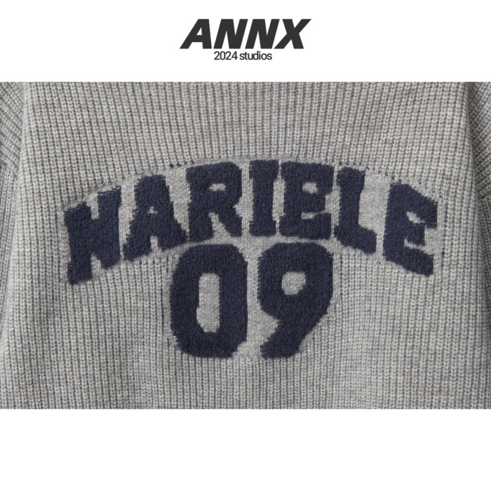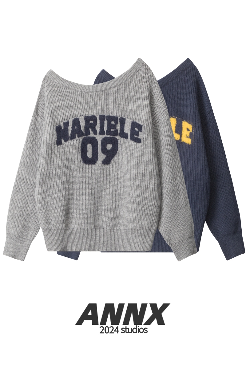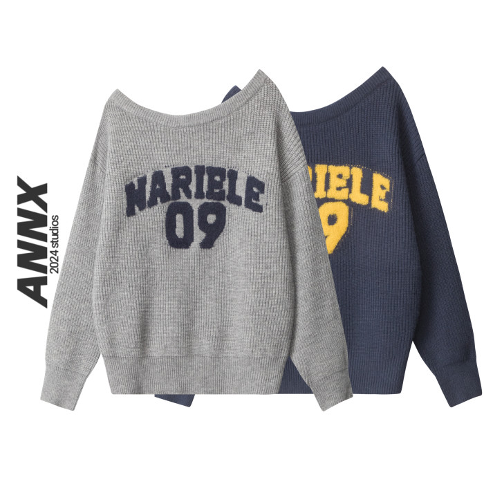 ANNX2025美式甜酷風字母斜肩毛衣寬松純欲秋季休閒百搭復古針織衫