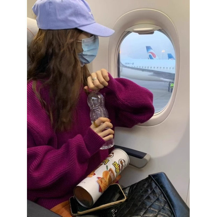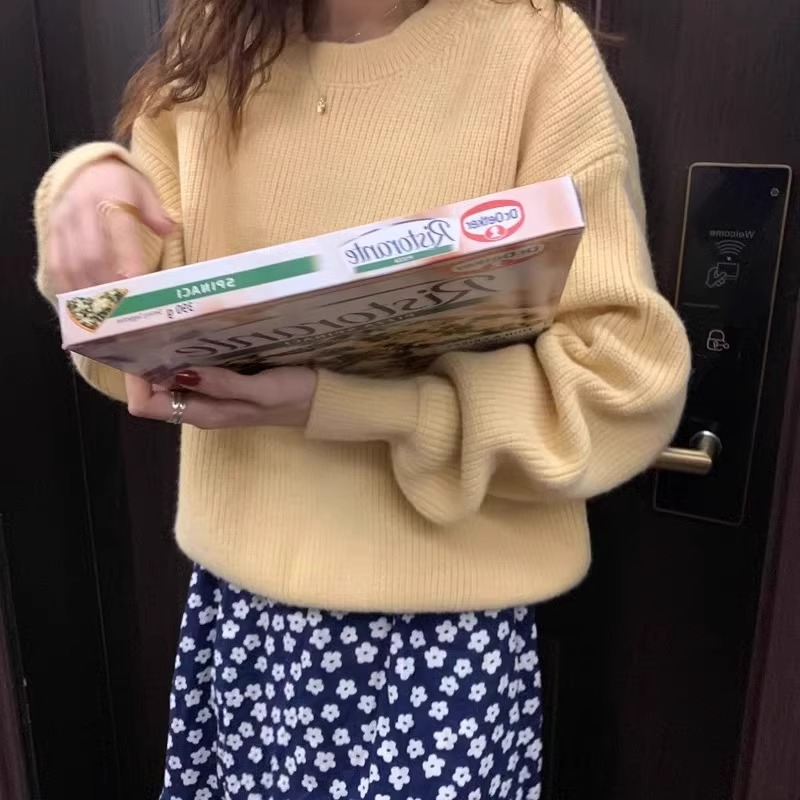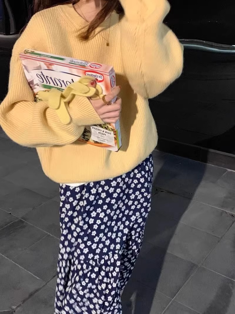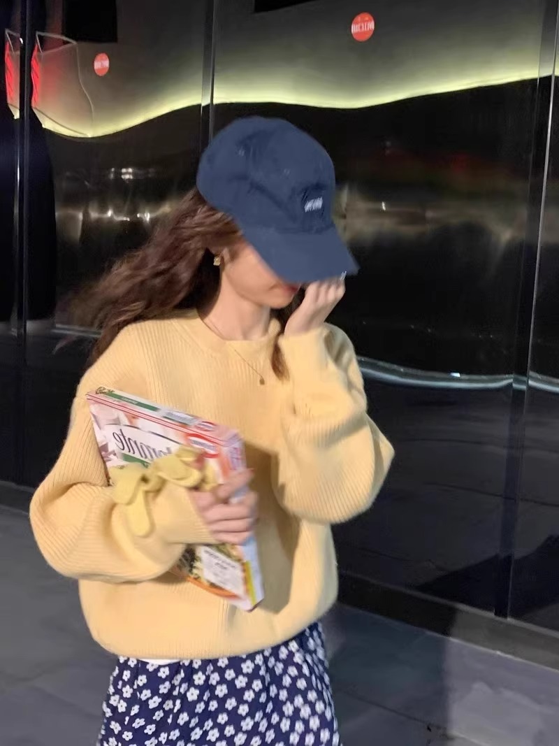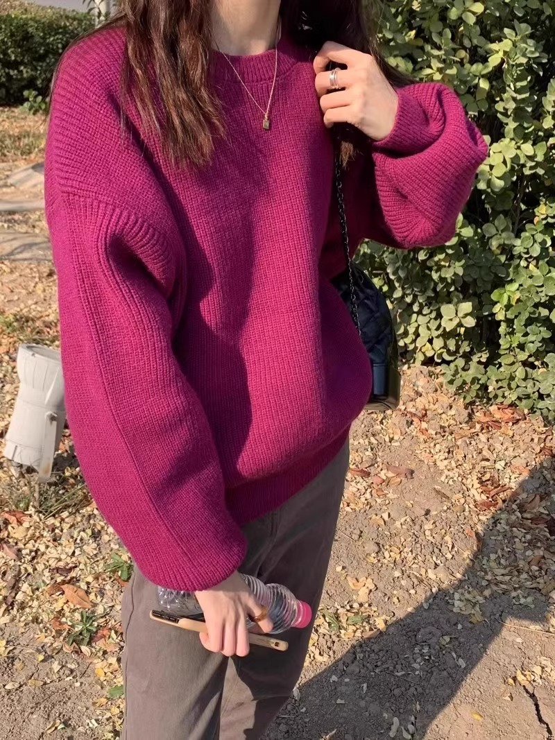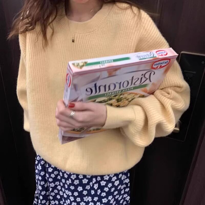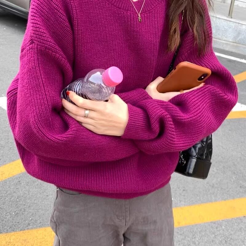 韓系chic寬松顯白南瓜色加厚保暖針織衫女秋冬季外穿套頭毛衣內搭