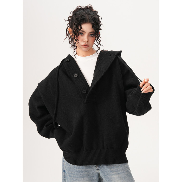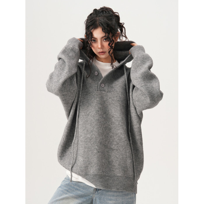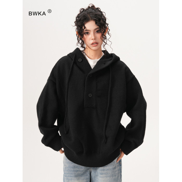 BWKA美式重磅420g連帽毛衣女男秋冬潮牌寬松休閒慵懶風針織衫外套