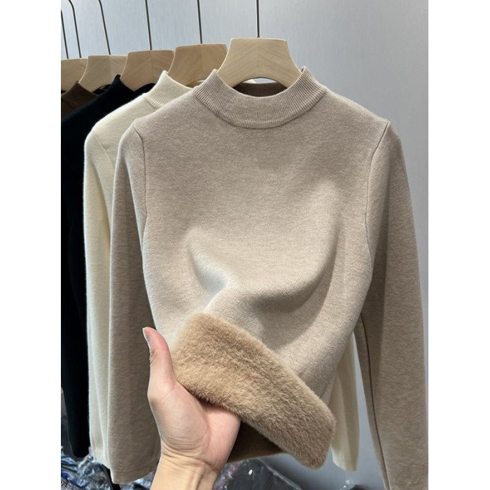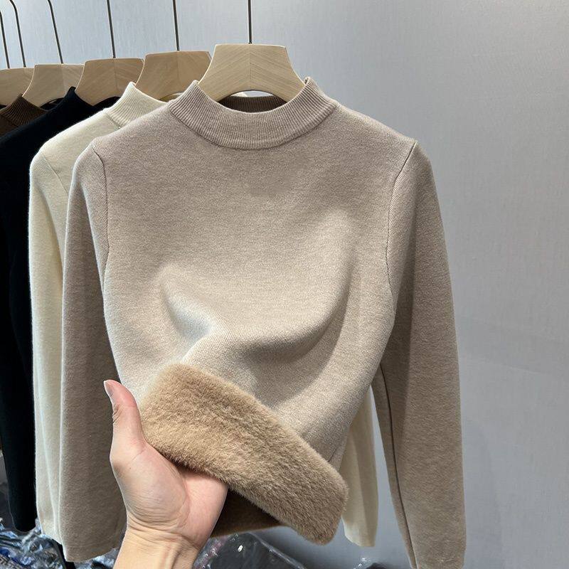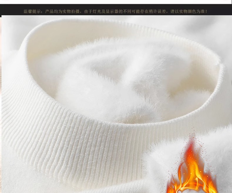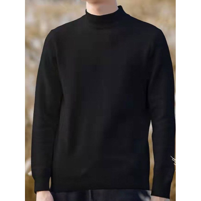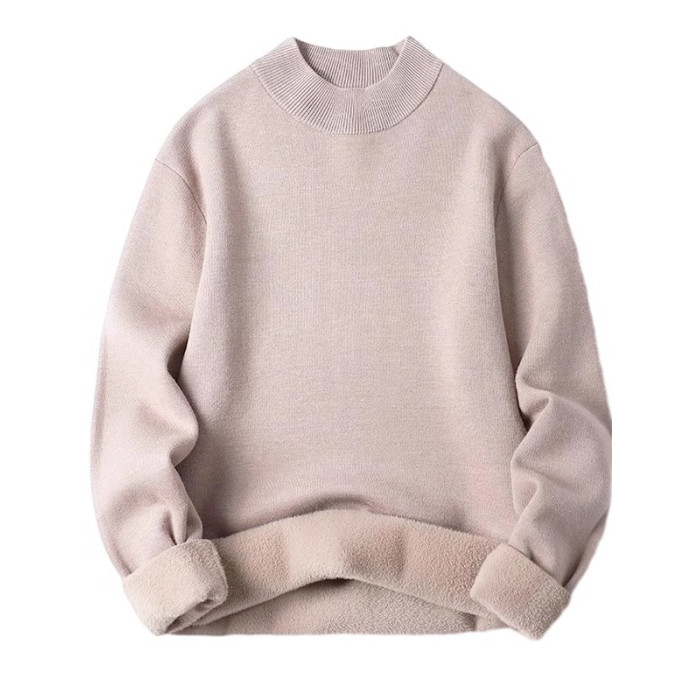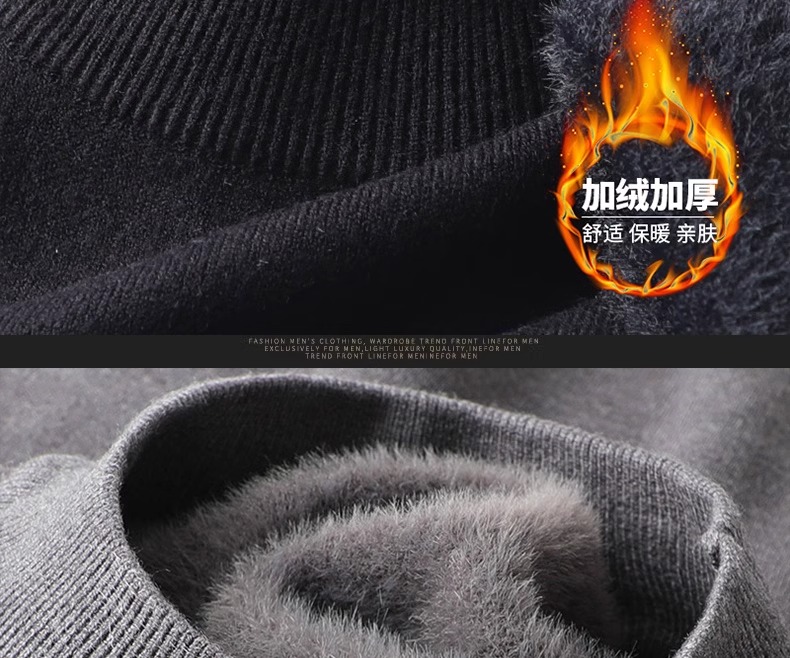 一體絨毛衣男內搭半高領秋冬季加絨加厚男裝百搭針織上衣打底衫潮