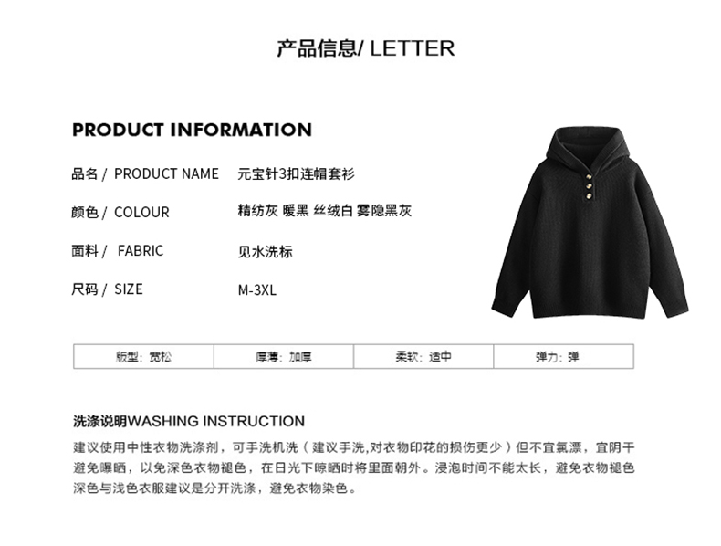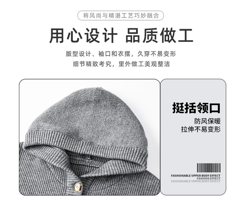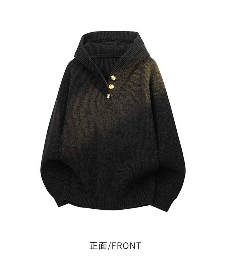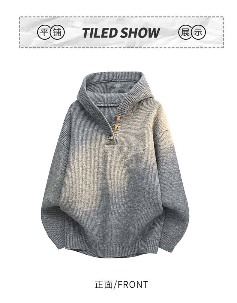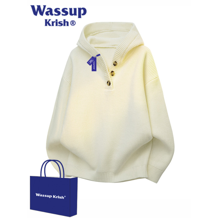 WASSUP KRISH復古亨利領連帽毛衣男秋季寬松慵懶風休閒針織衫外套