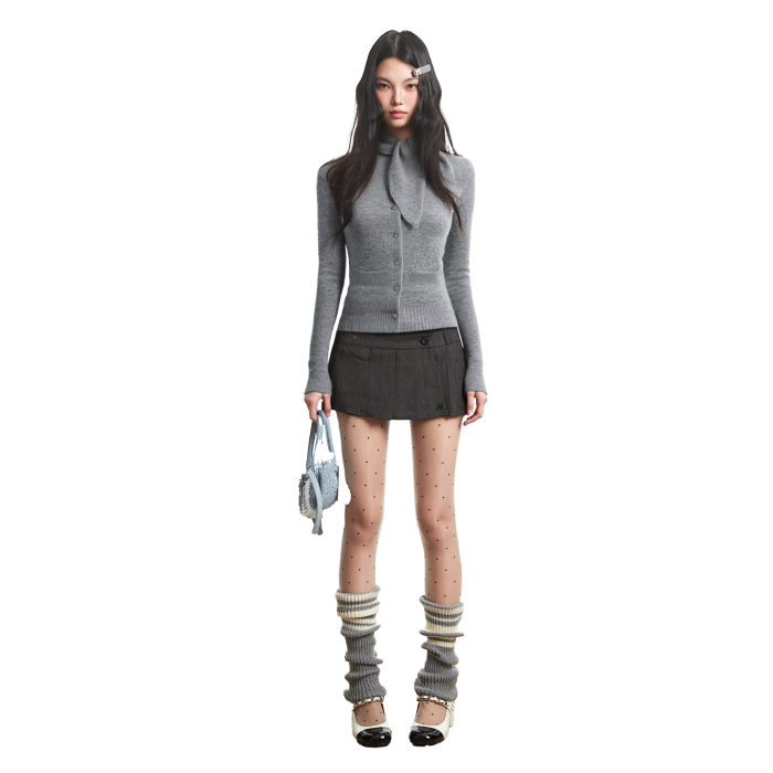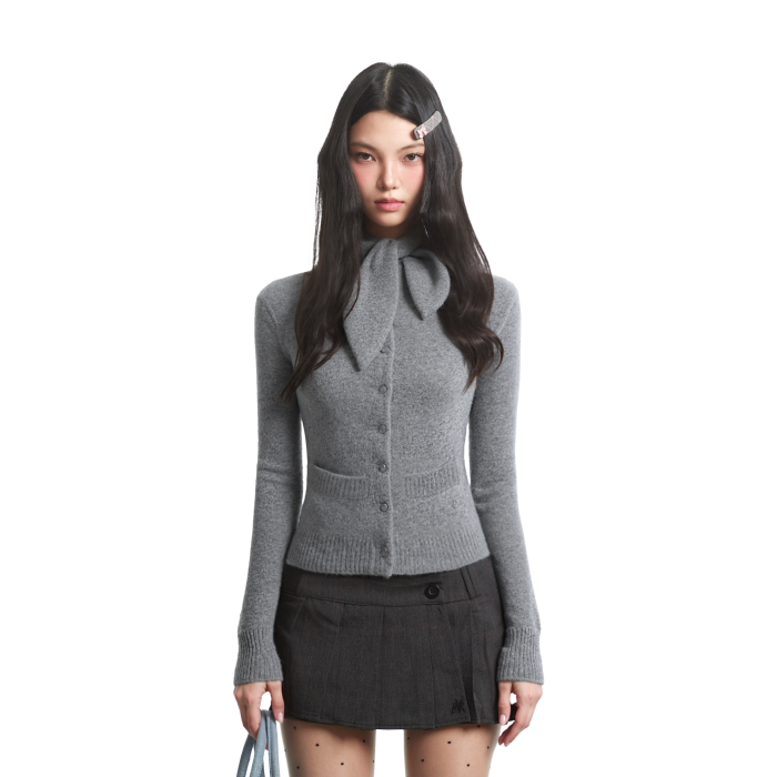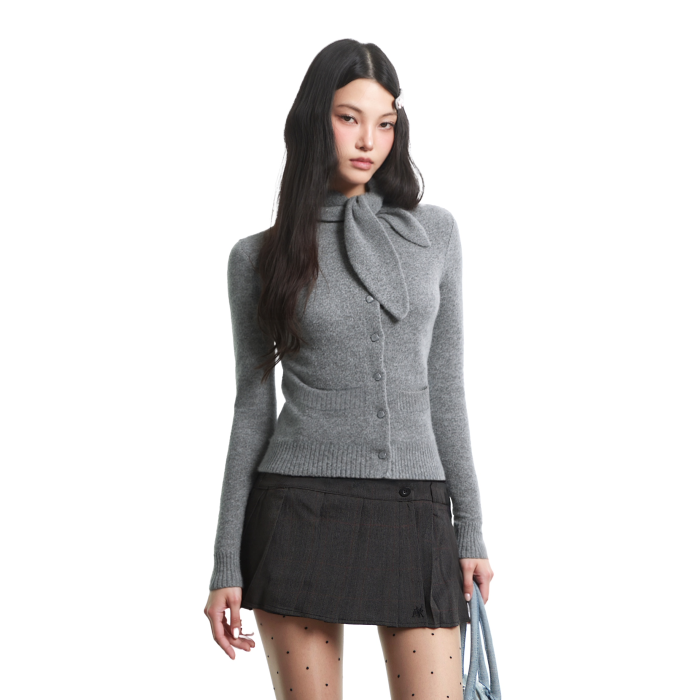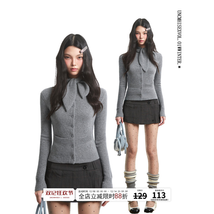 UNCMHISEX 慵懶風可拆卸圍巾領針織開衫女秋冬季時尚顯瘦毛衣長袖