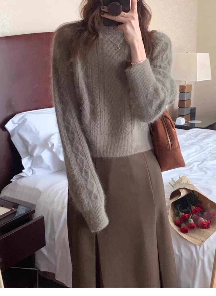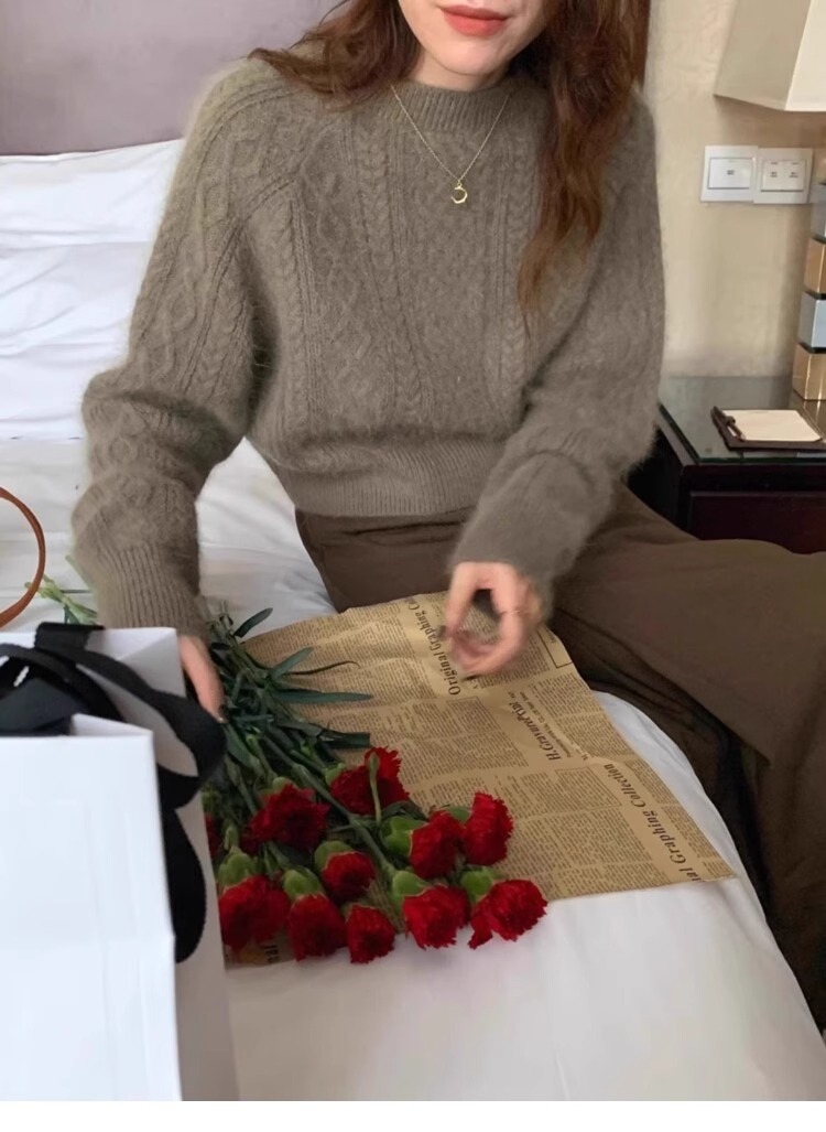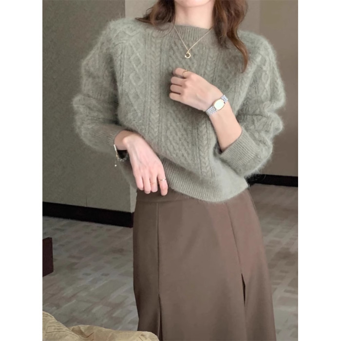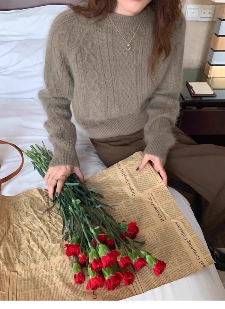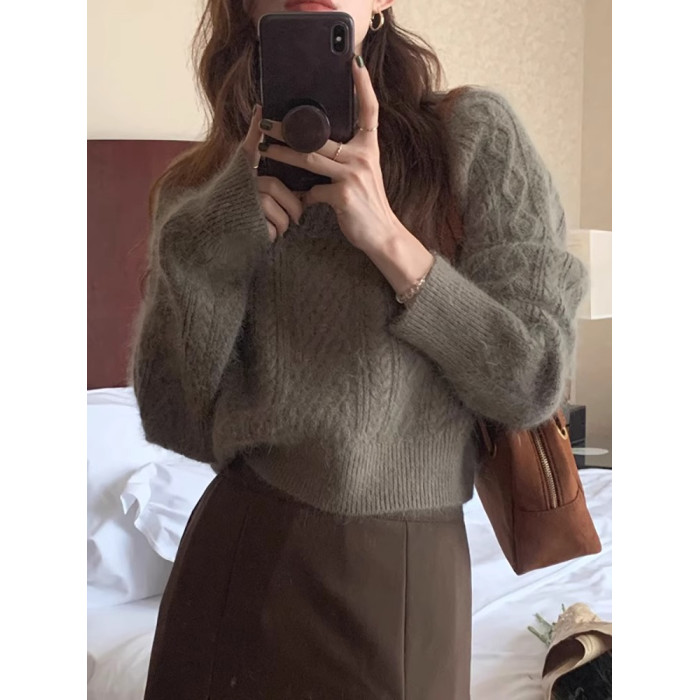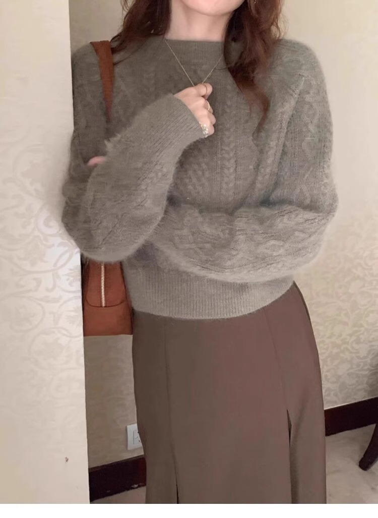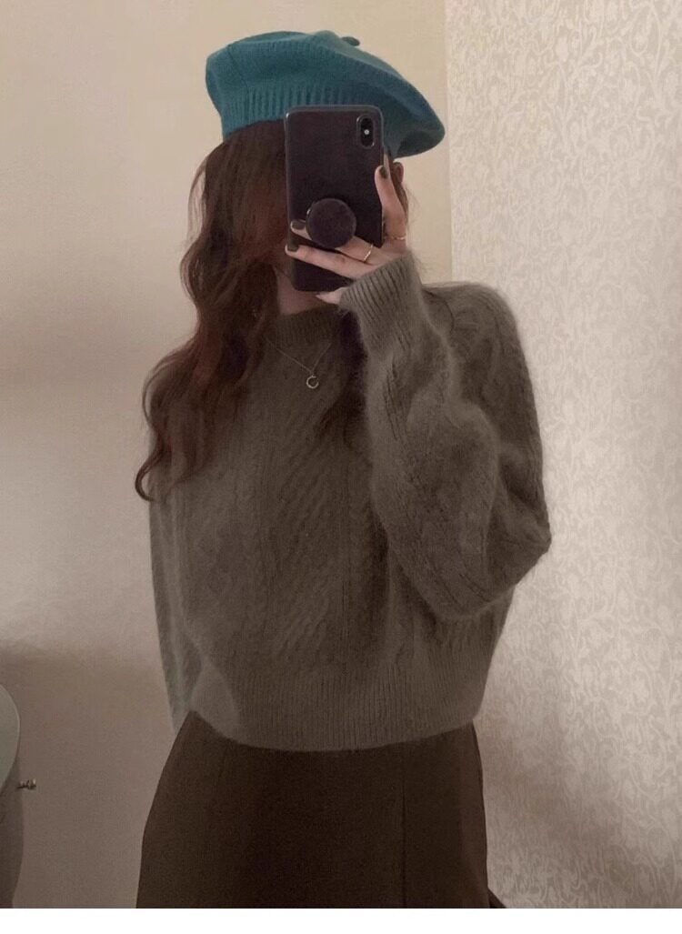 浣熊絨軟糯短款毛衣女秋冬外穿小個子套頭圓領針織衫加厚內搭上衣