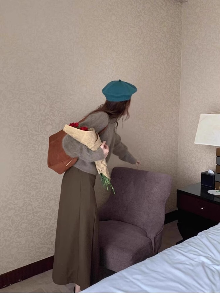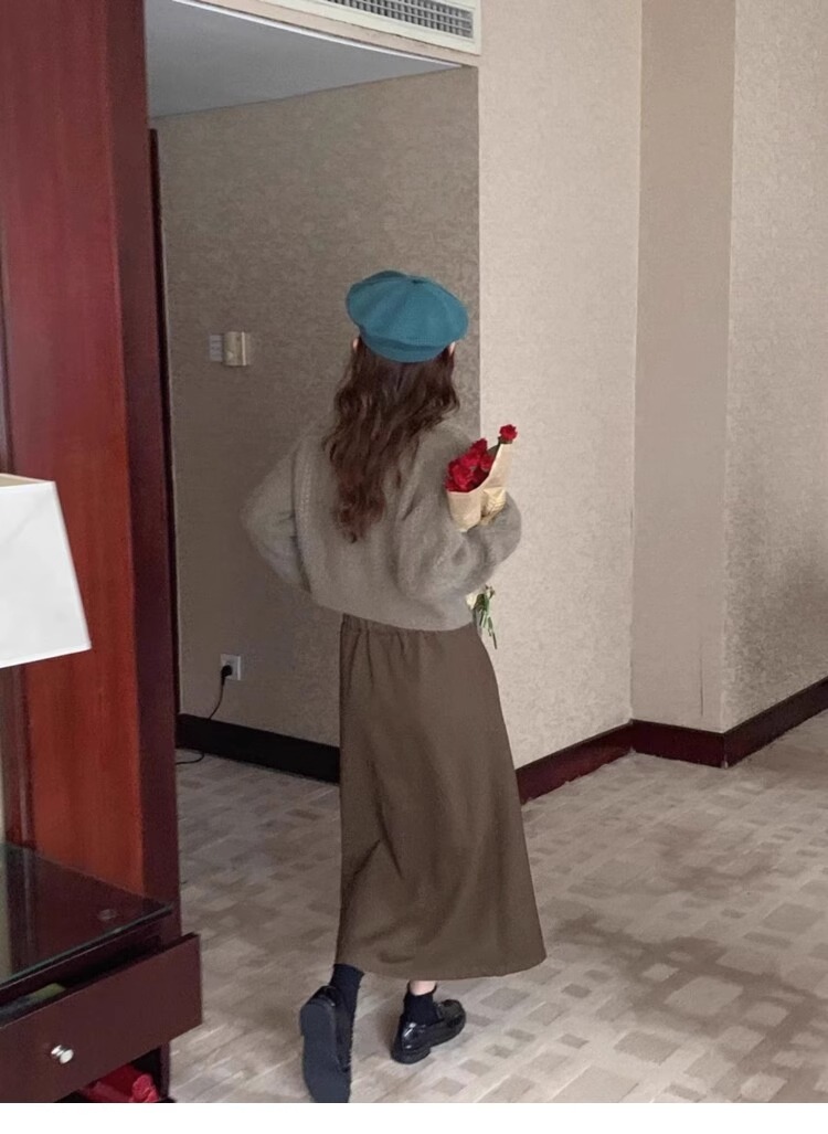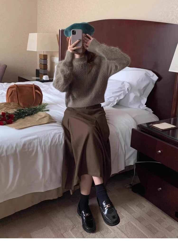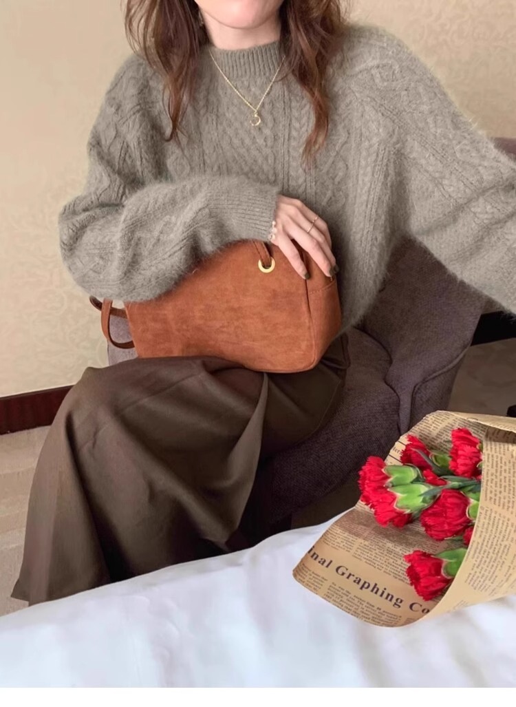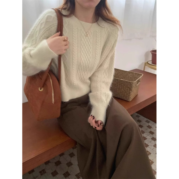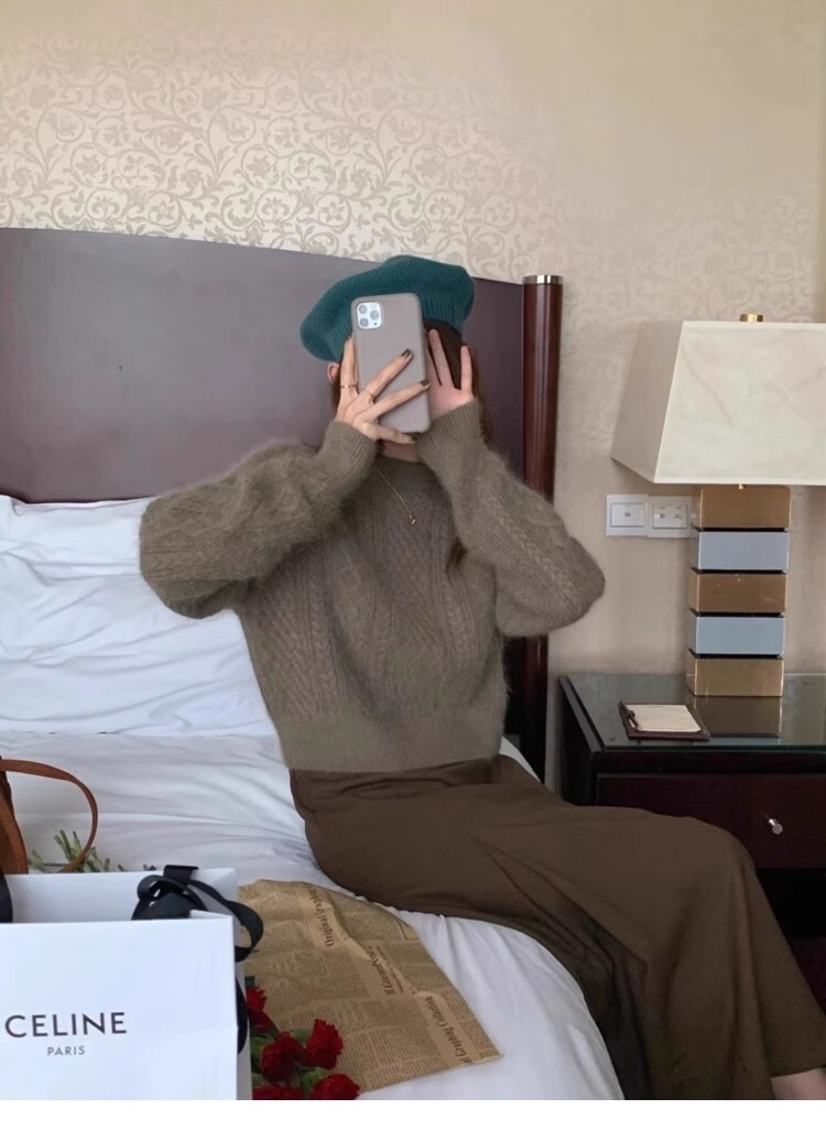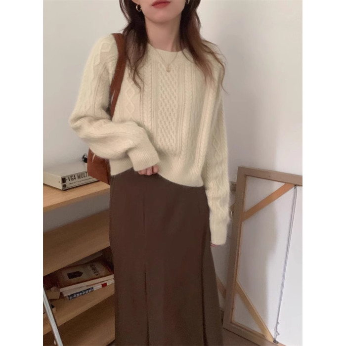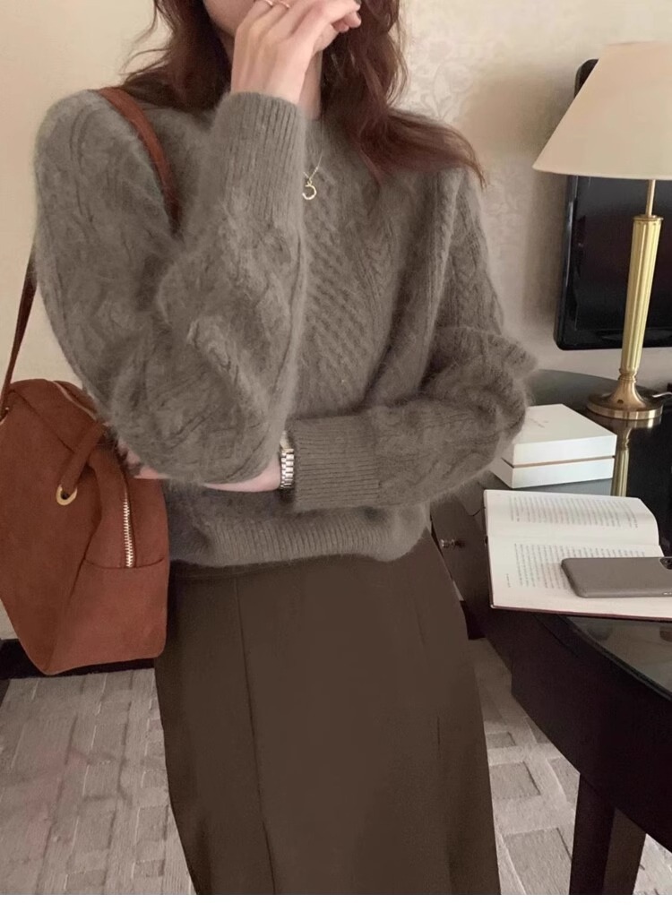 浣熊絨軟糯短款毛衣女秋冬外穿小個子套頭圓領針織衫加厚內搭上衣