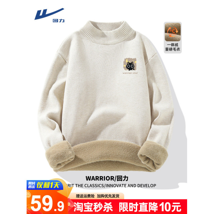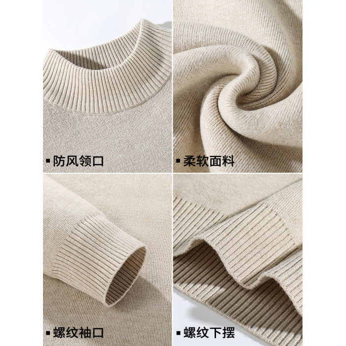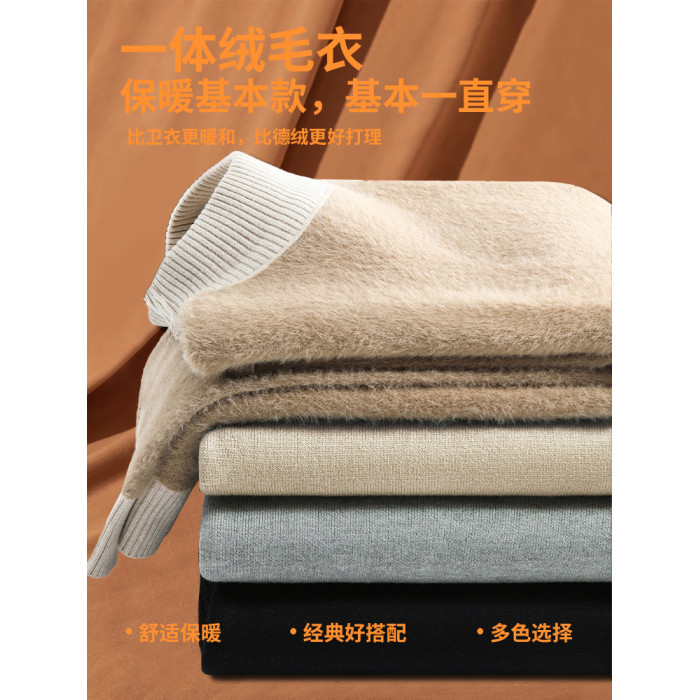 迴力加絨毛衣男款冬季半高領一體絨保暖加厚打底衫男士秋冬針織衫