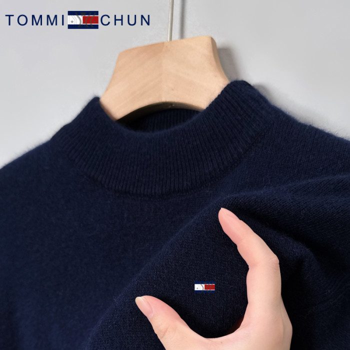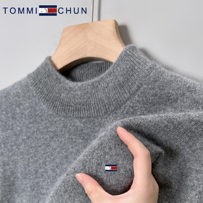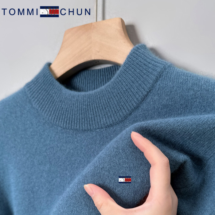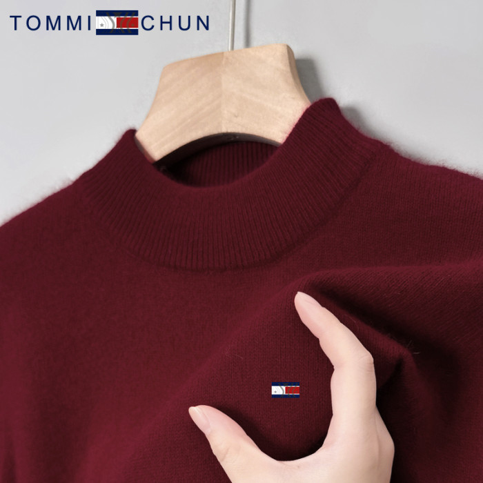 湯米純色羊毛衫男100純羊毛冬季高級品牌半高領加厚羊絨毛衣