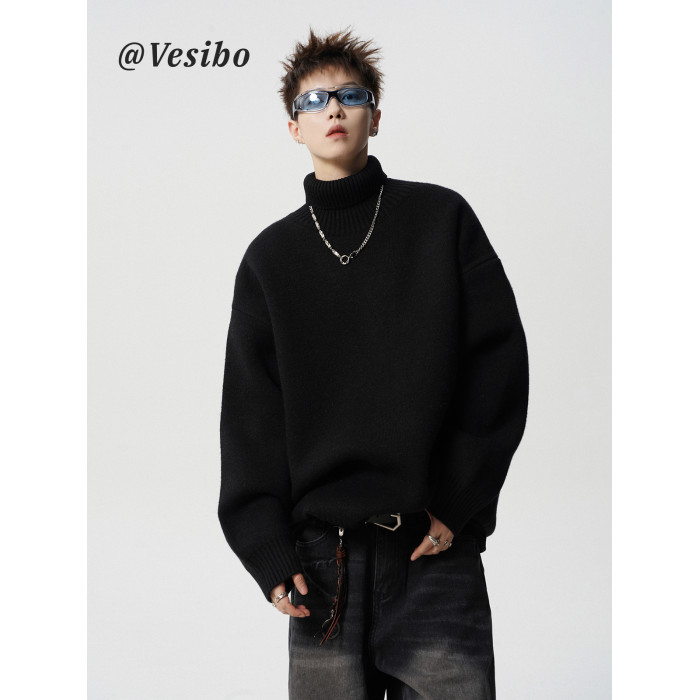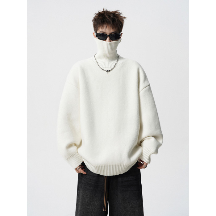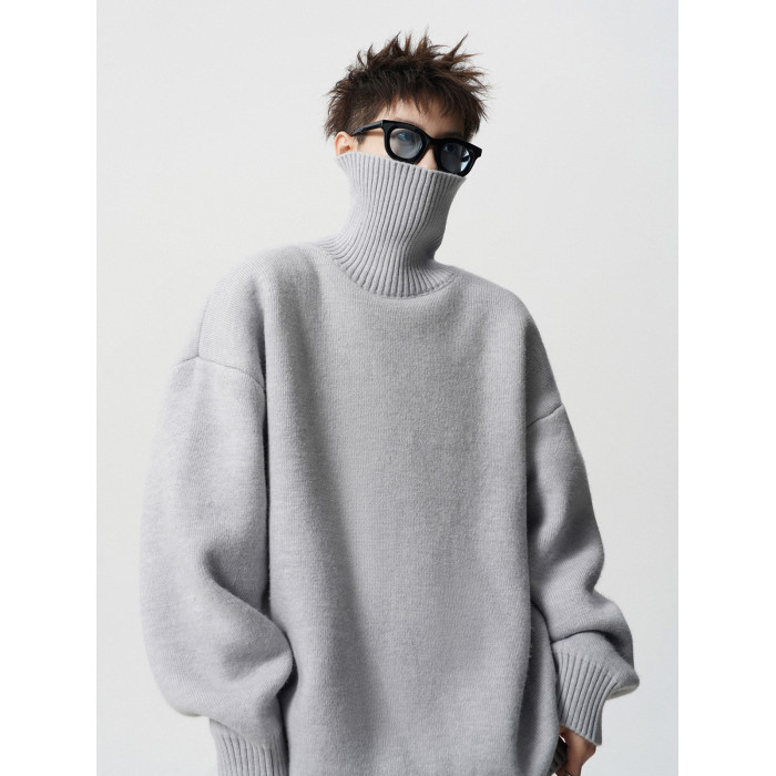 原創百搭休閒高領毛衣男冬美式慵懶風情侶針織衫重磅純色寬松上衣