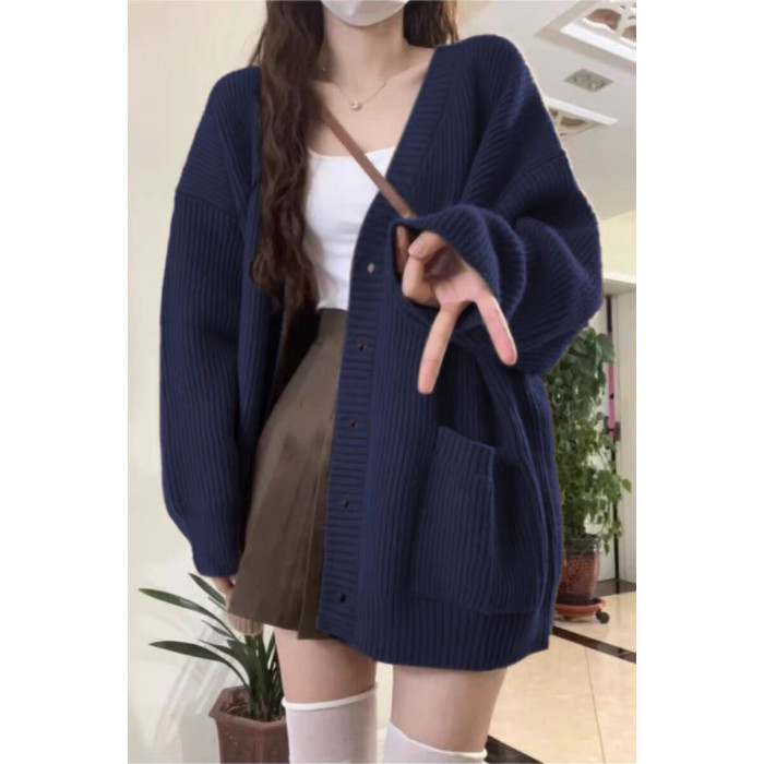 大碼胖MM黑色V領毛衣開衫外套女秋冬軟糯慵懶寬松高級感超好針織