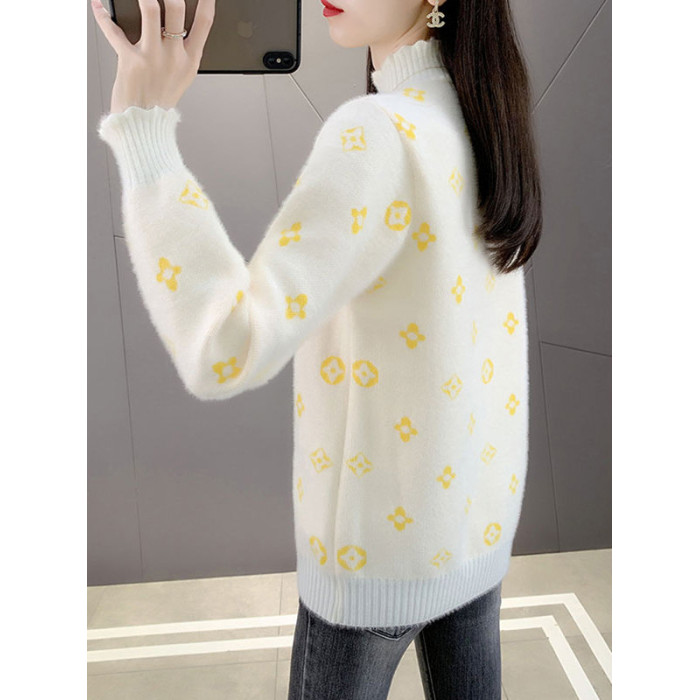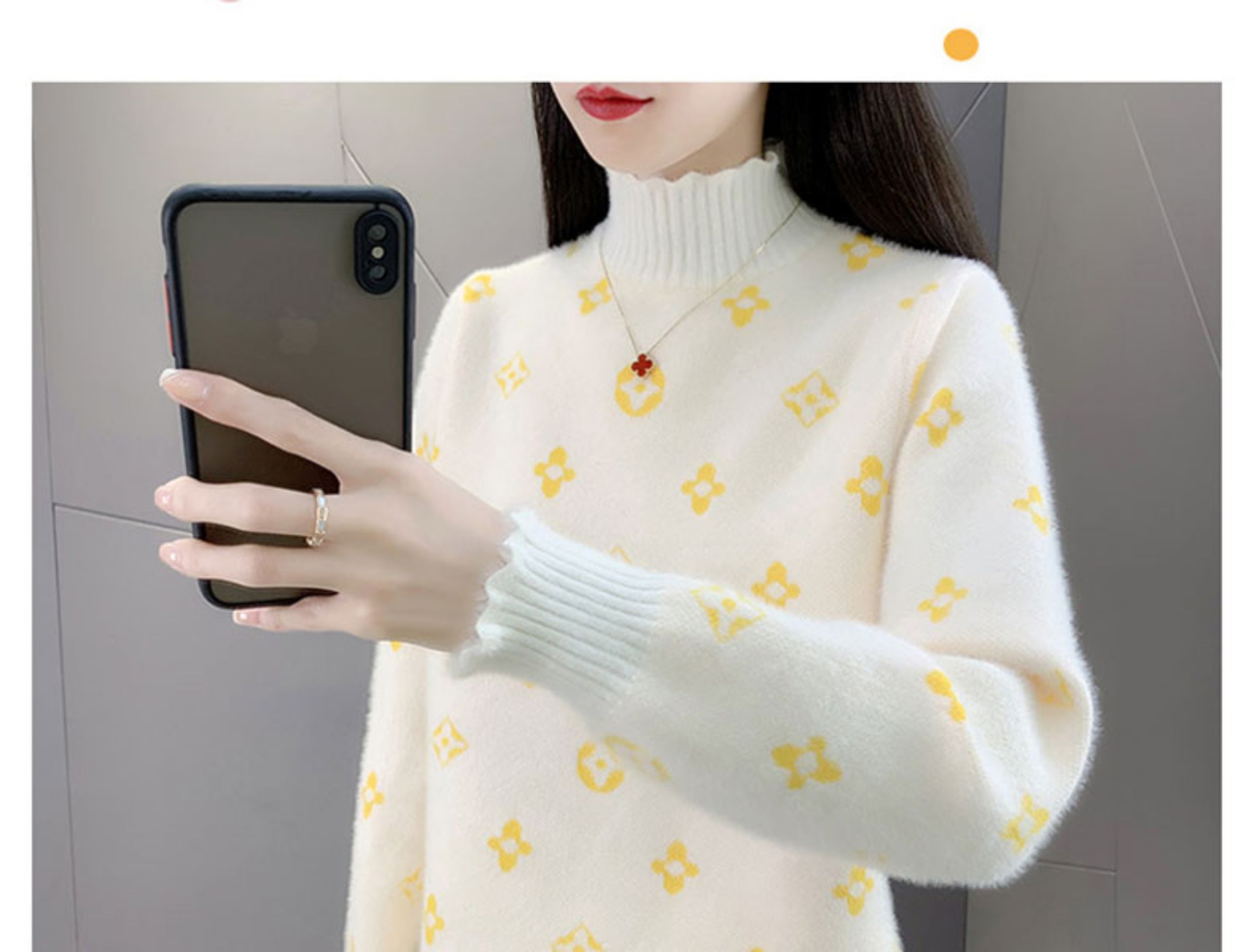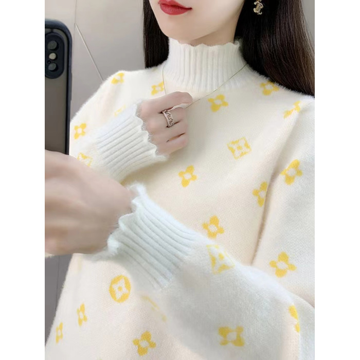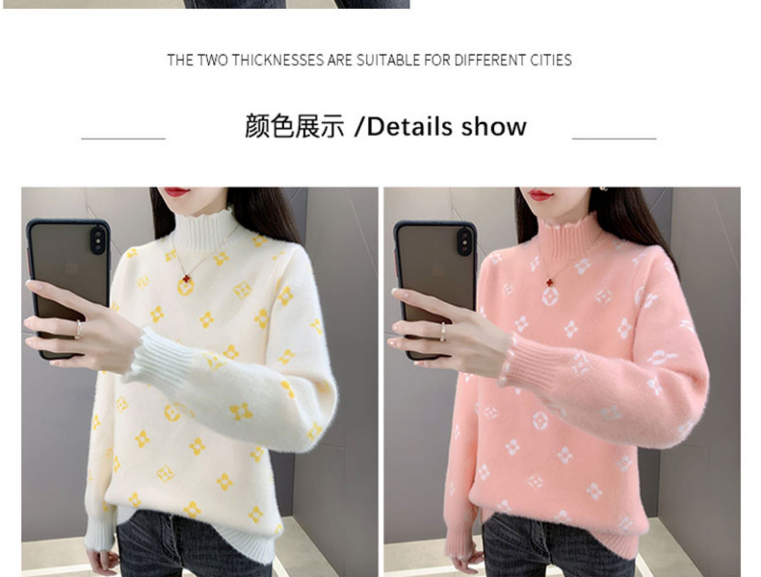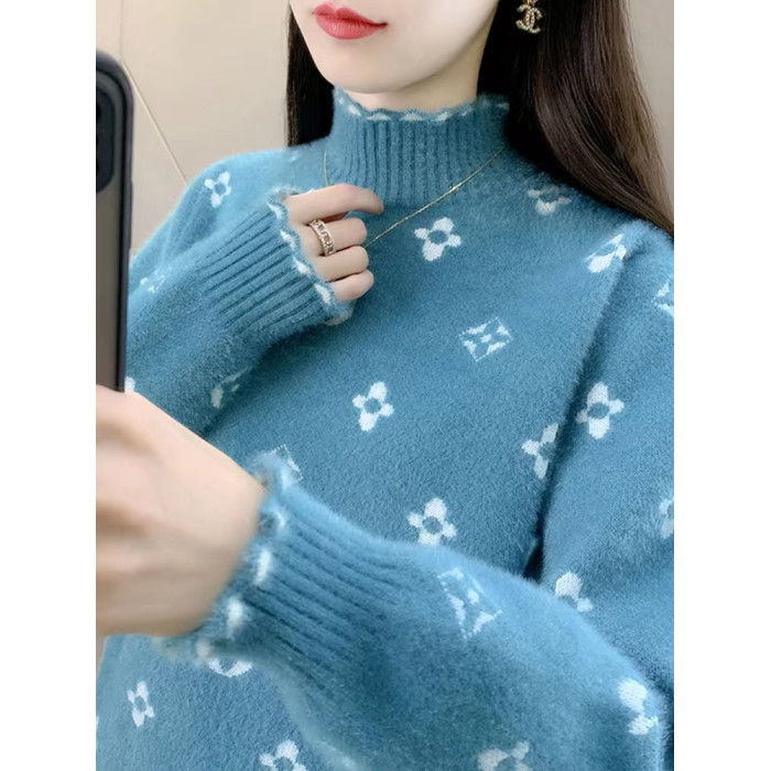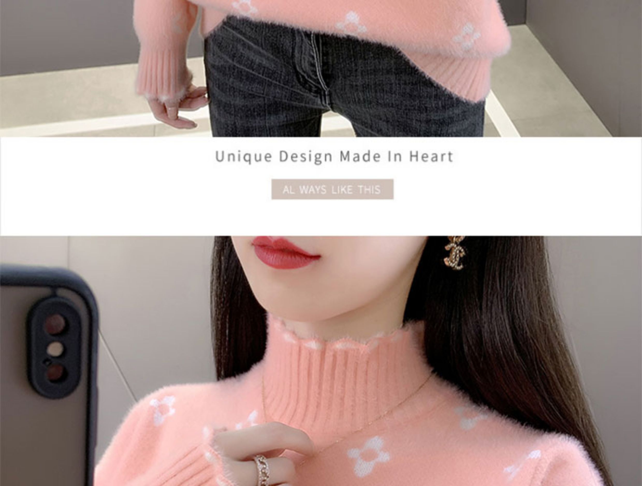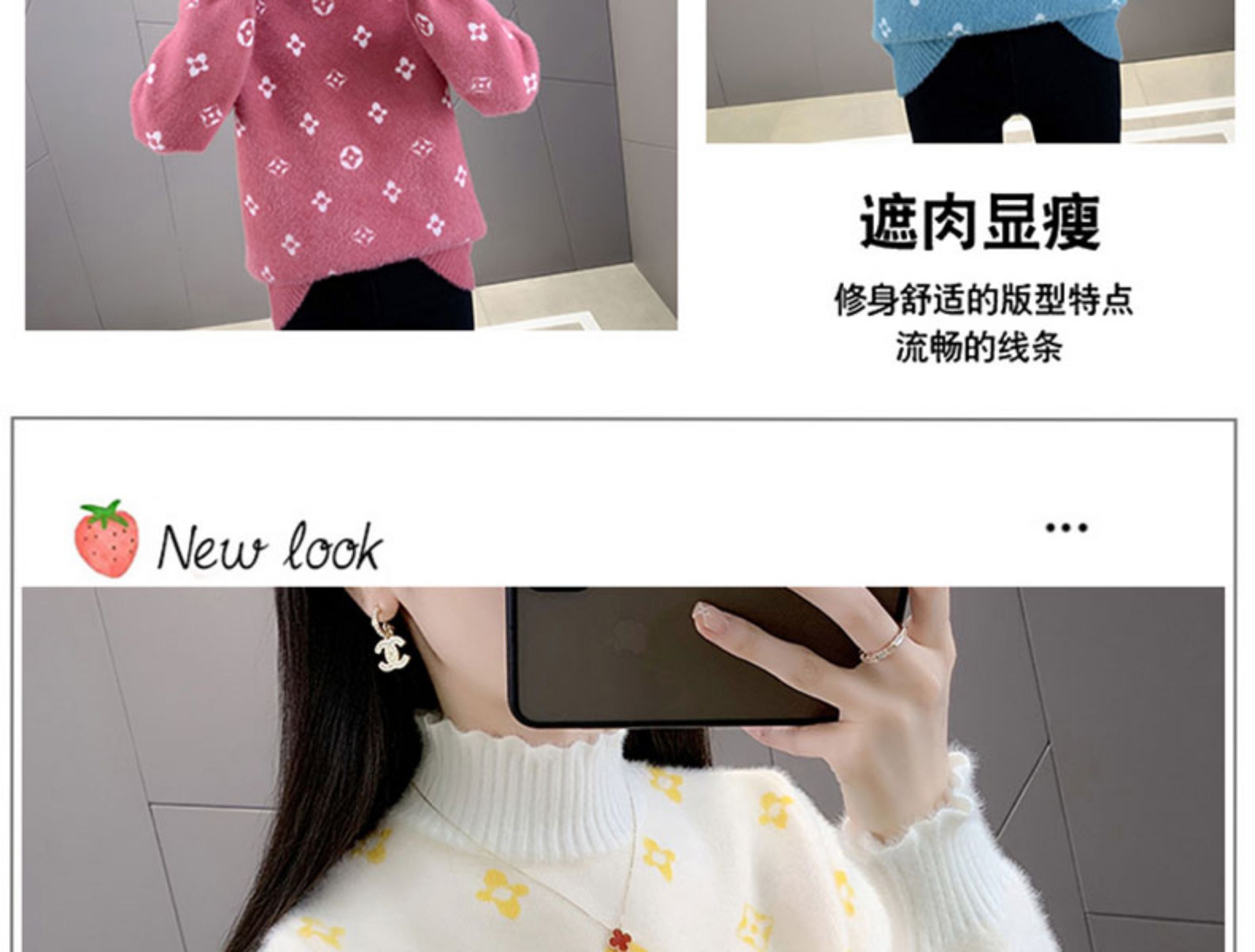 加絨加厚半高領毛衣女洋氣2025秋冬新款寬松百搭水貂絨針織打底衫