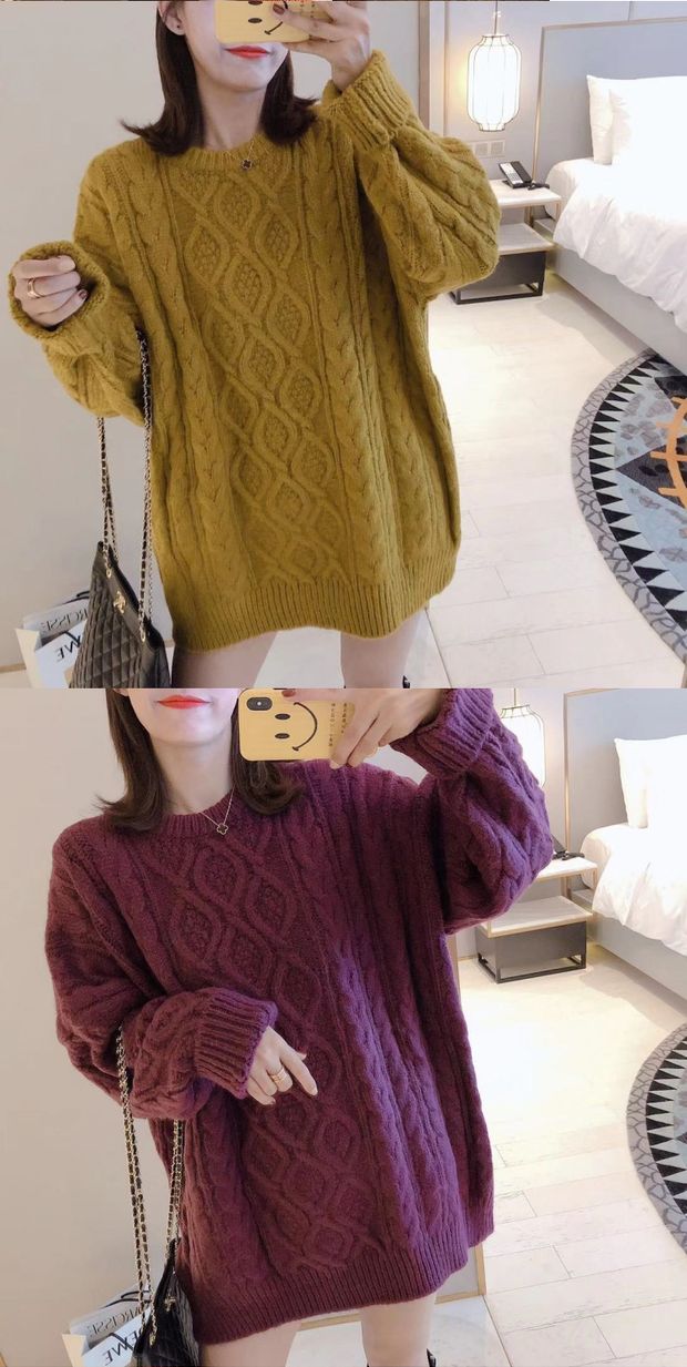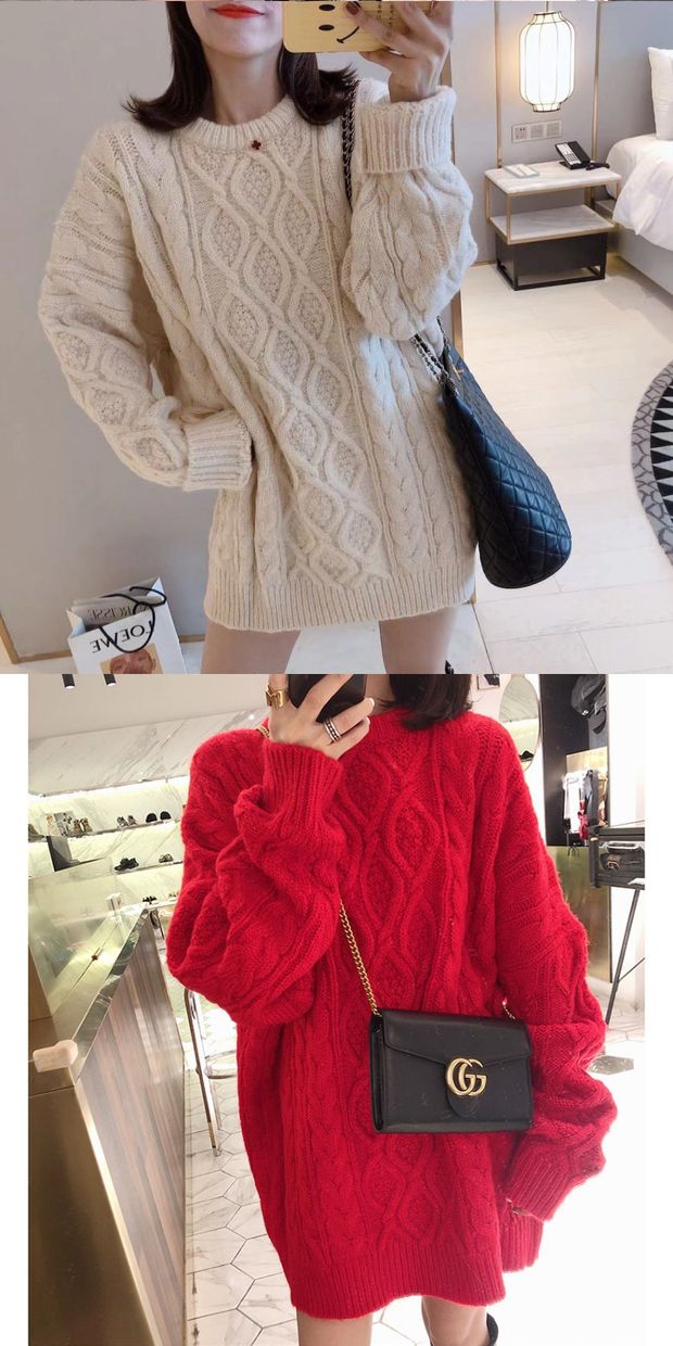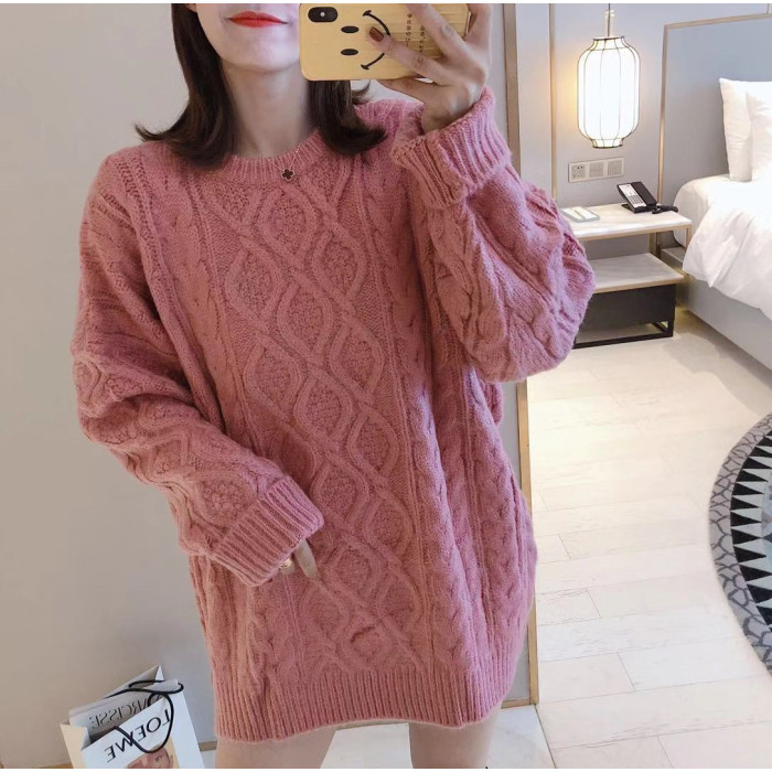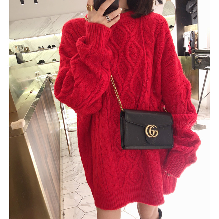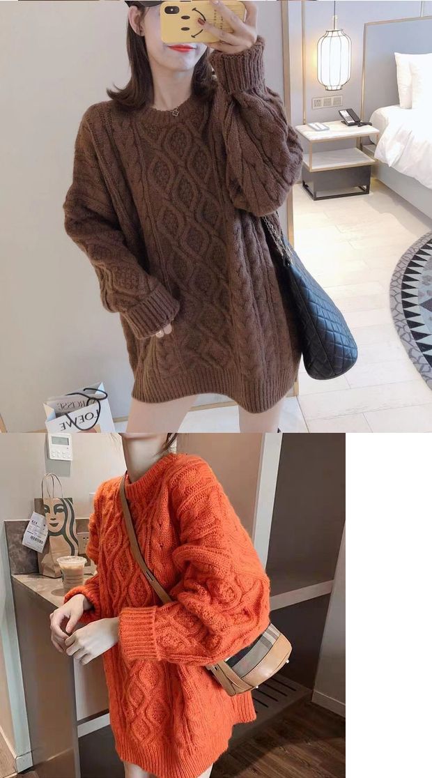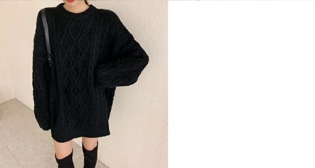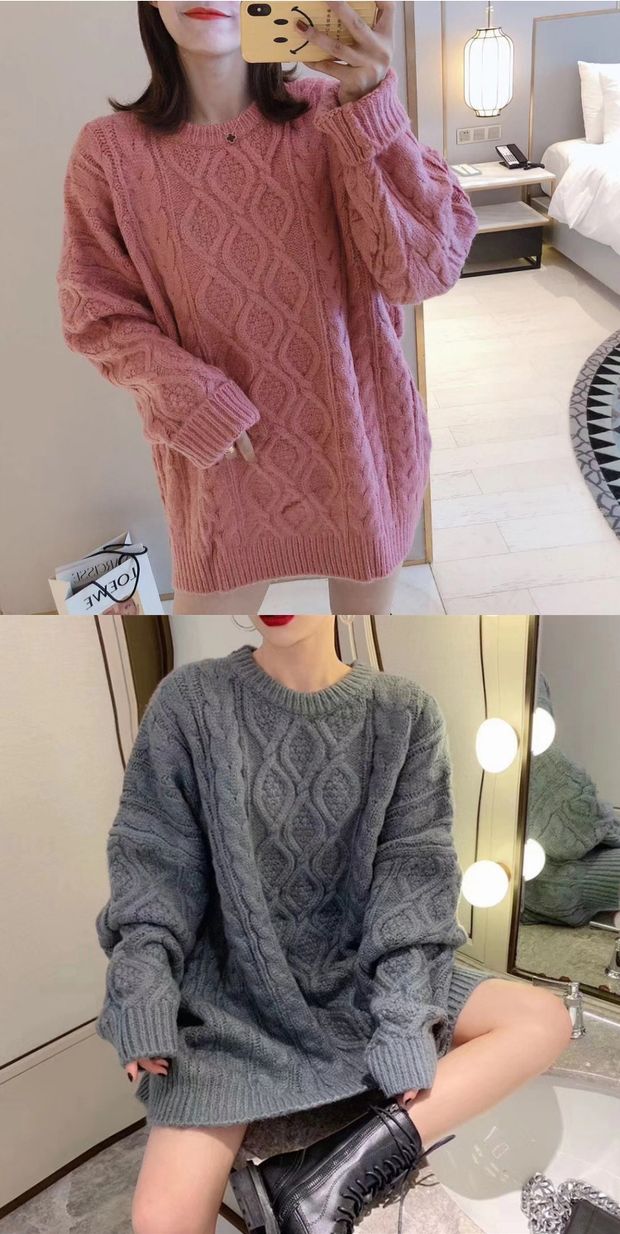 2025新款秋冬大碼毛衣女中長款時尚寬松慵懶風菱紋厚實毛衣裙外套