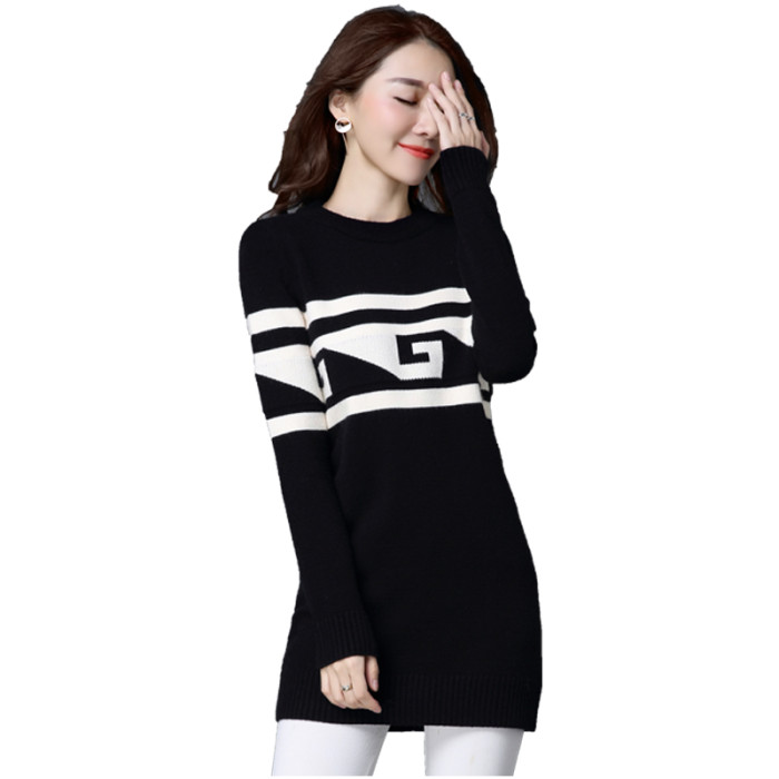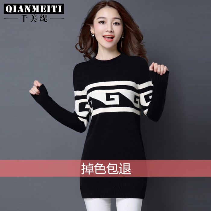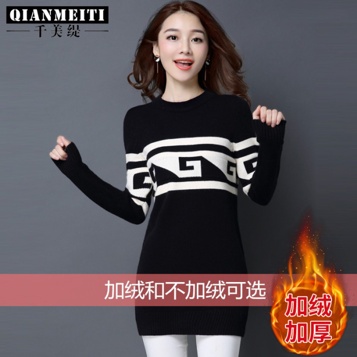 低領加絨加厚毛衣女寬松外穿中長款針織衫毛衣裙打底衫遮屁股秋冬
