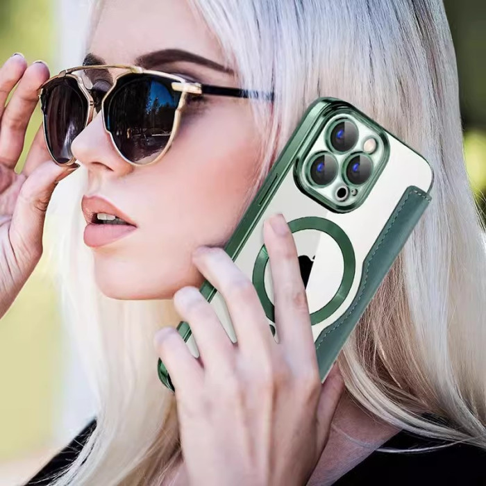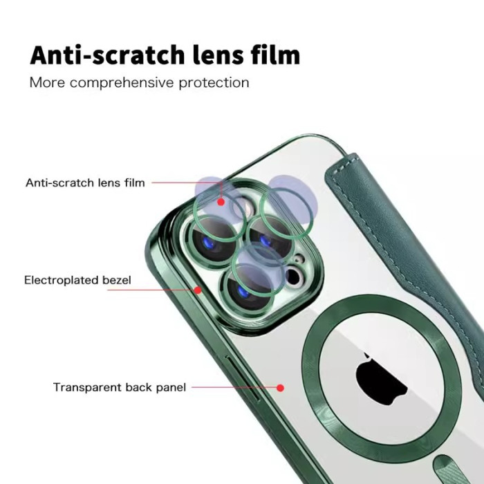 適用iPhone17磁吸手機殼菱格繙蓋插卡皮套蘋果16透明15防摔保護套