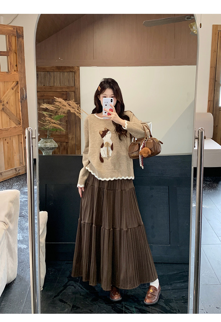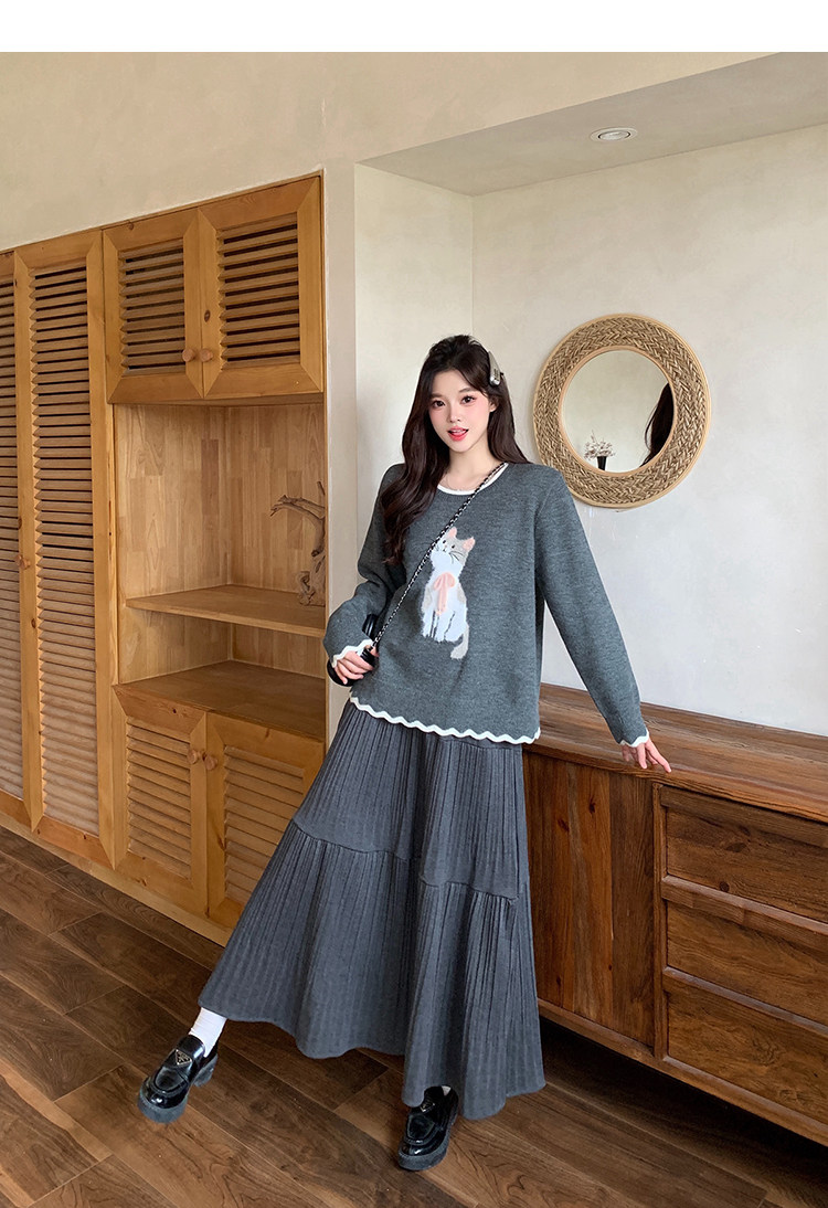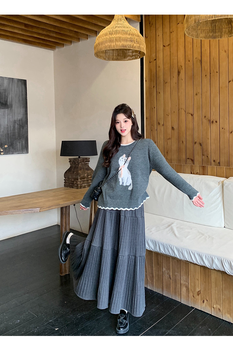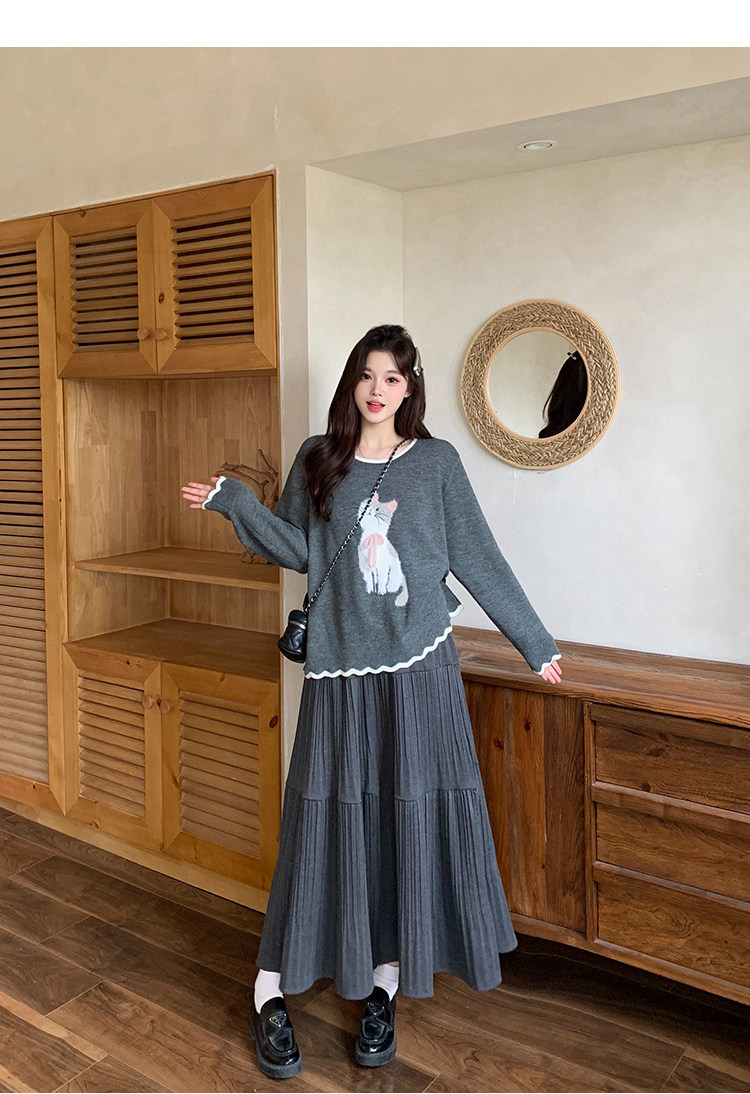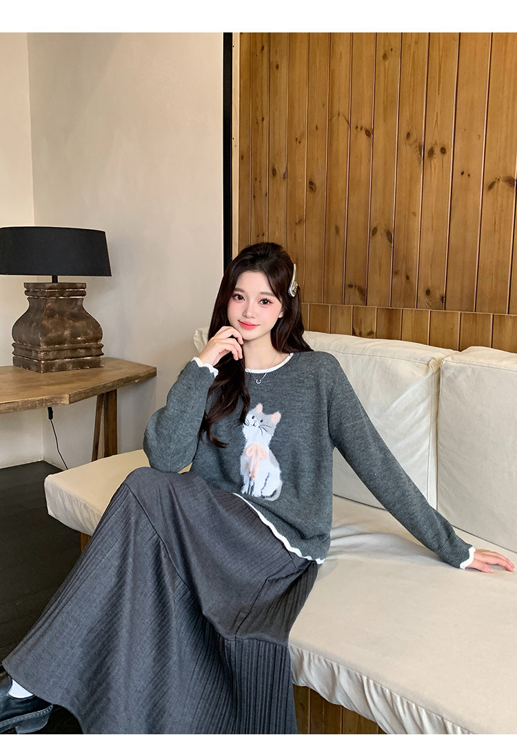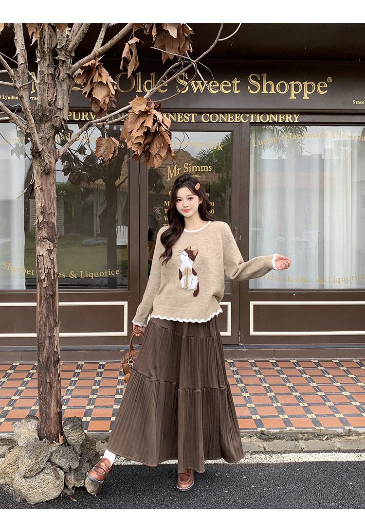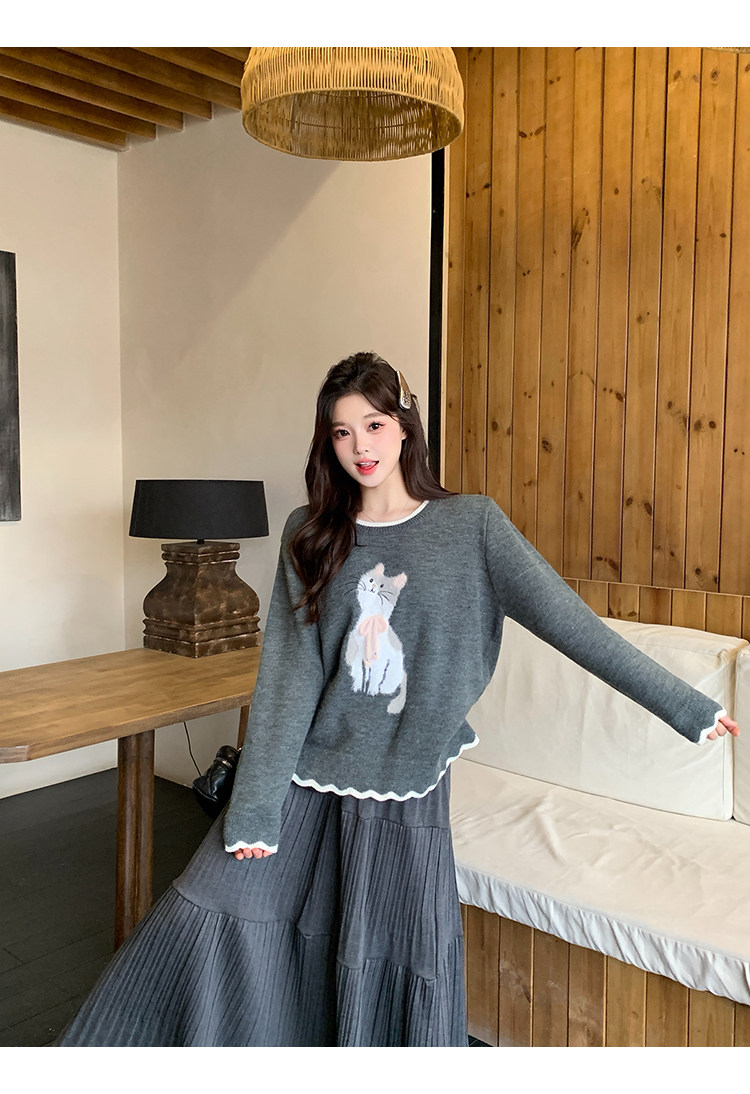 小吉家大碼女裝秋冬新款胖mm甜美慵懶風綉花小貓軟糯毛衣長袖上衣