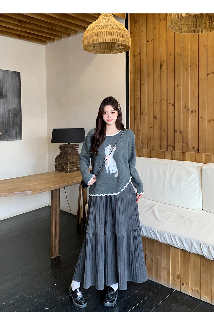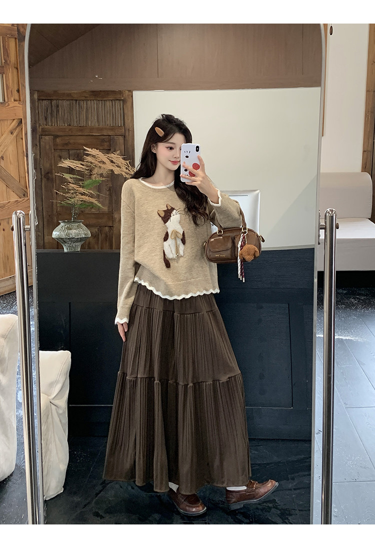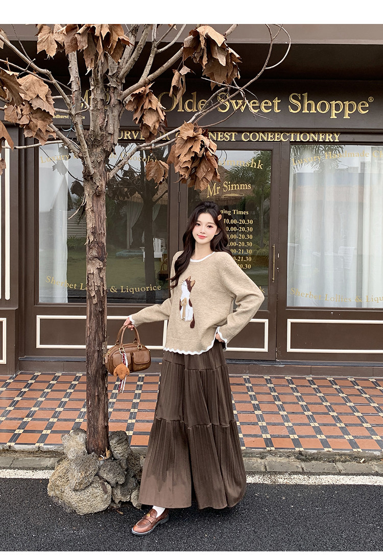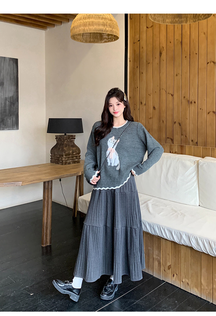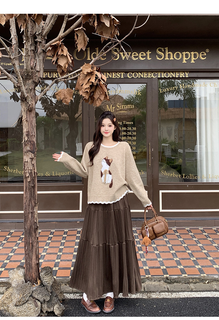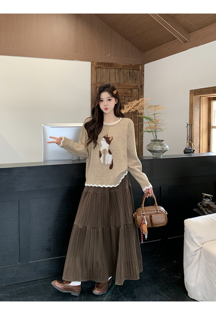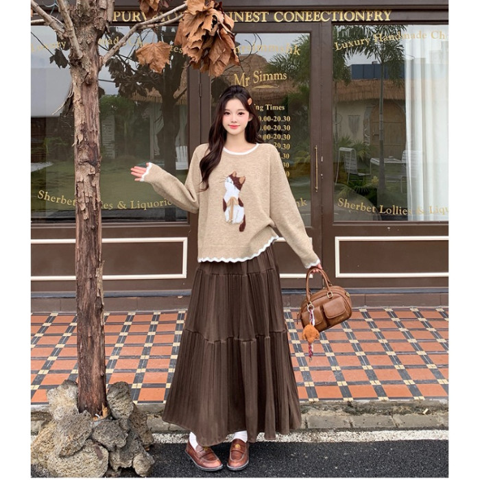 小吉家大碼女裝秋冬新款胖mm甜美慵懶風綉花小貓軟糯毛衣長袖上衣