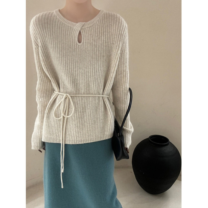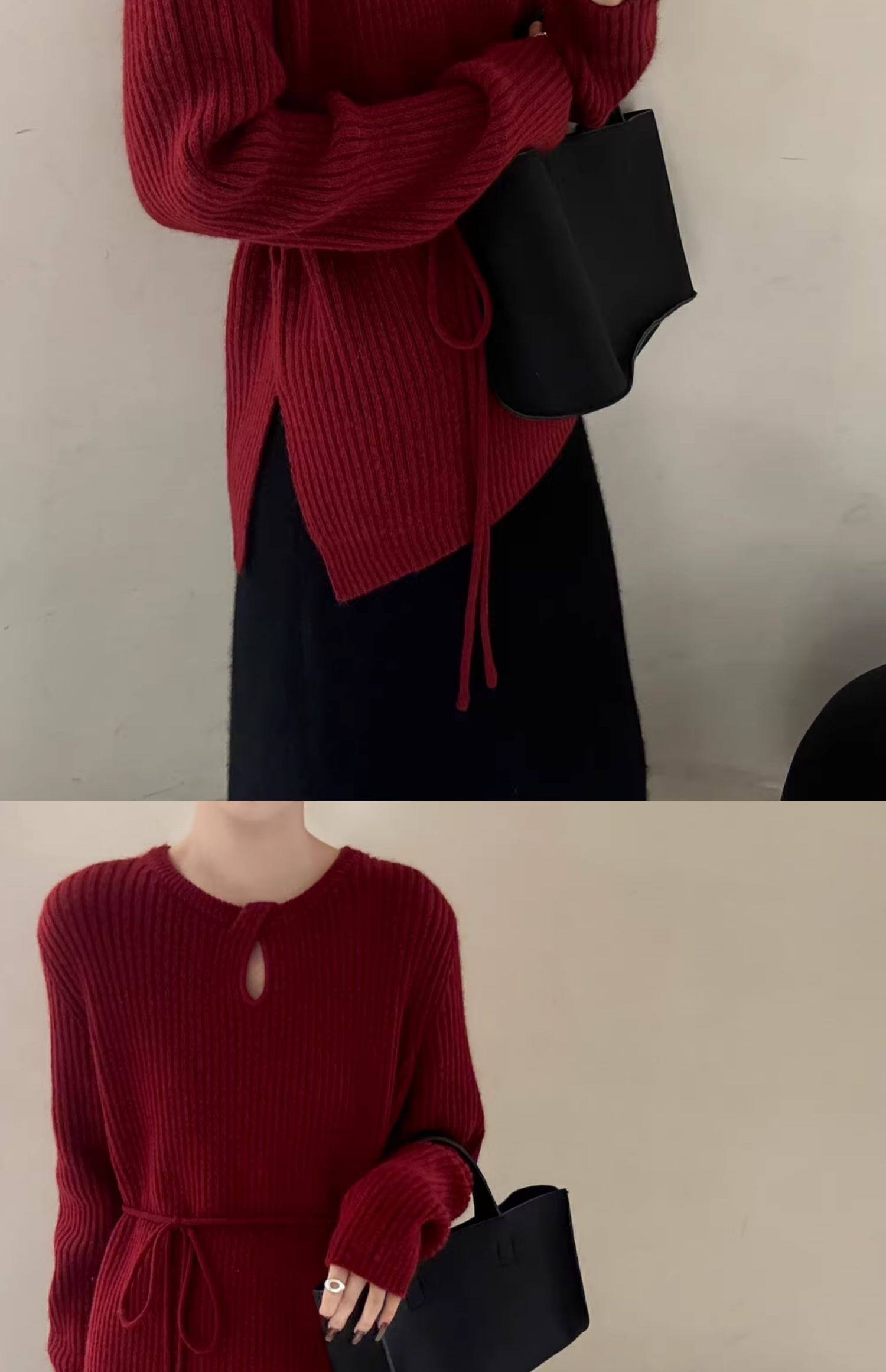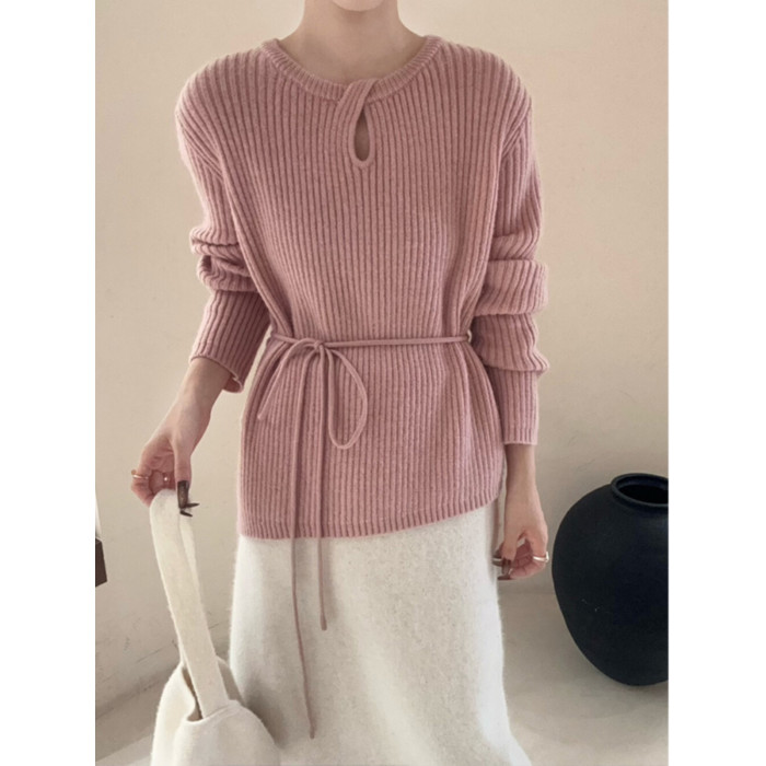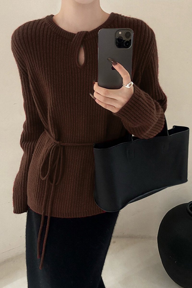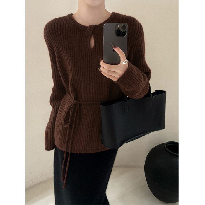 高級感咖色鏤空浣熊絨毛衣女秋冬可外穿中長款寬松內搭針織衫上衣