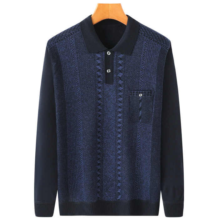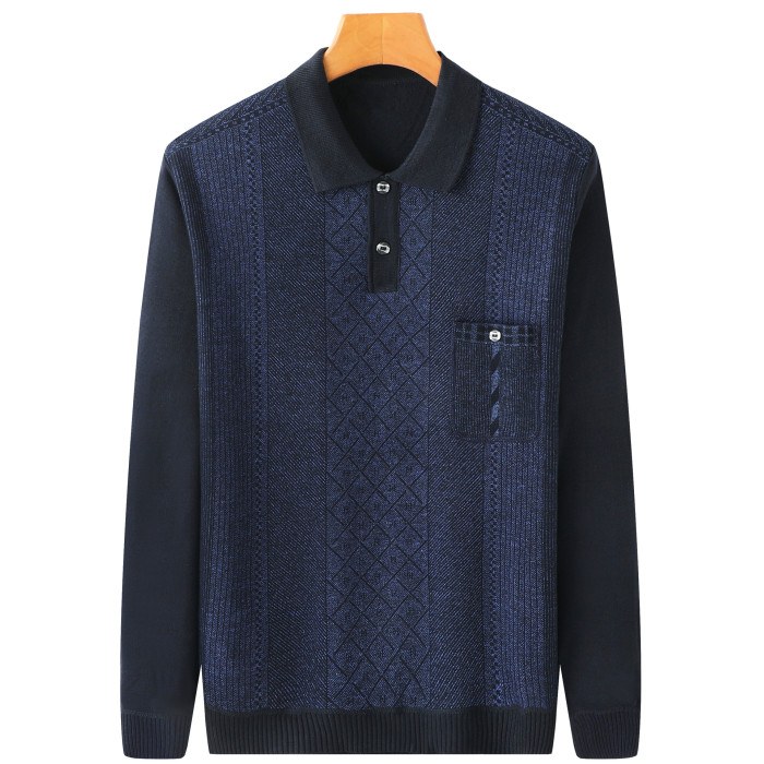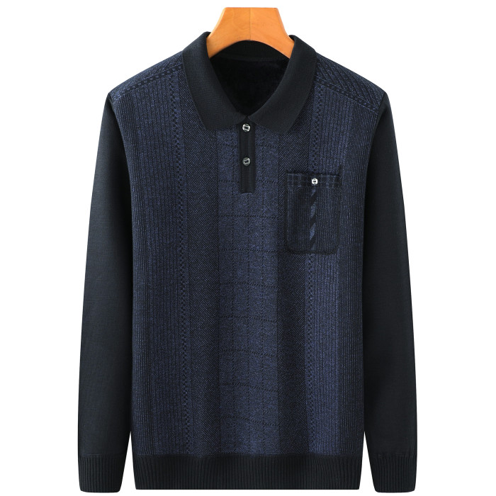 中年爸爸冬季加絨加厚款毛衣中老年男士上衣老人打底衫男裝秋冬裝
