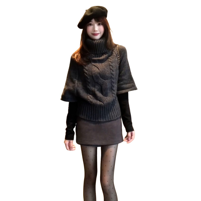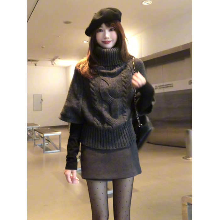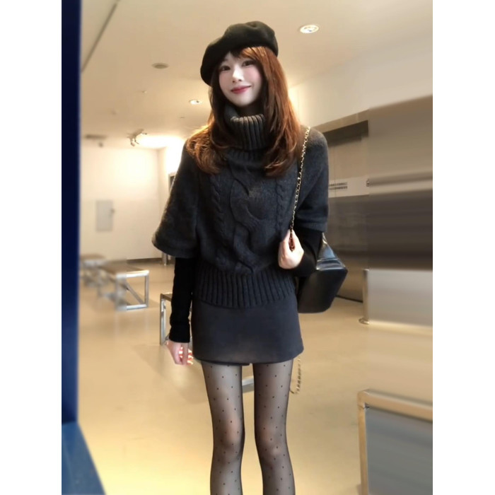 韓系灰色麻花高領毛衣女秋冬季2025新款蝙蝠袖慵懶高級感針織上衣