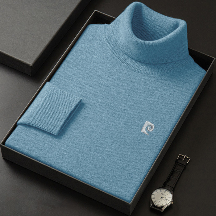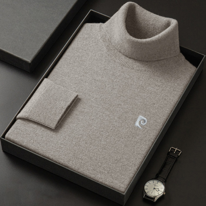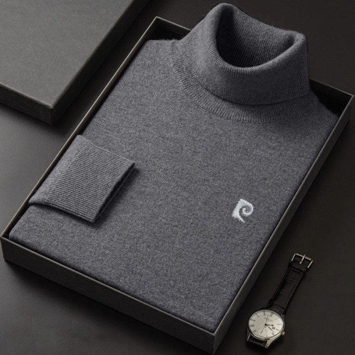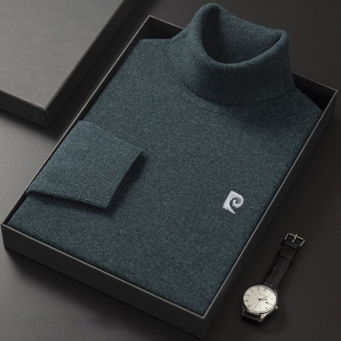 皮爾卡丹羊絨衫毛衣男秋冬季男士加厚保暖高領羊毛衫針織打底衫男